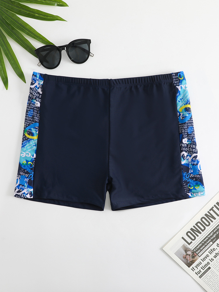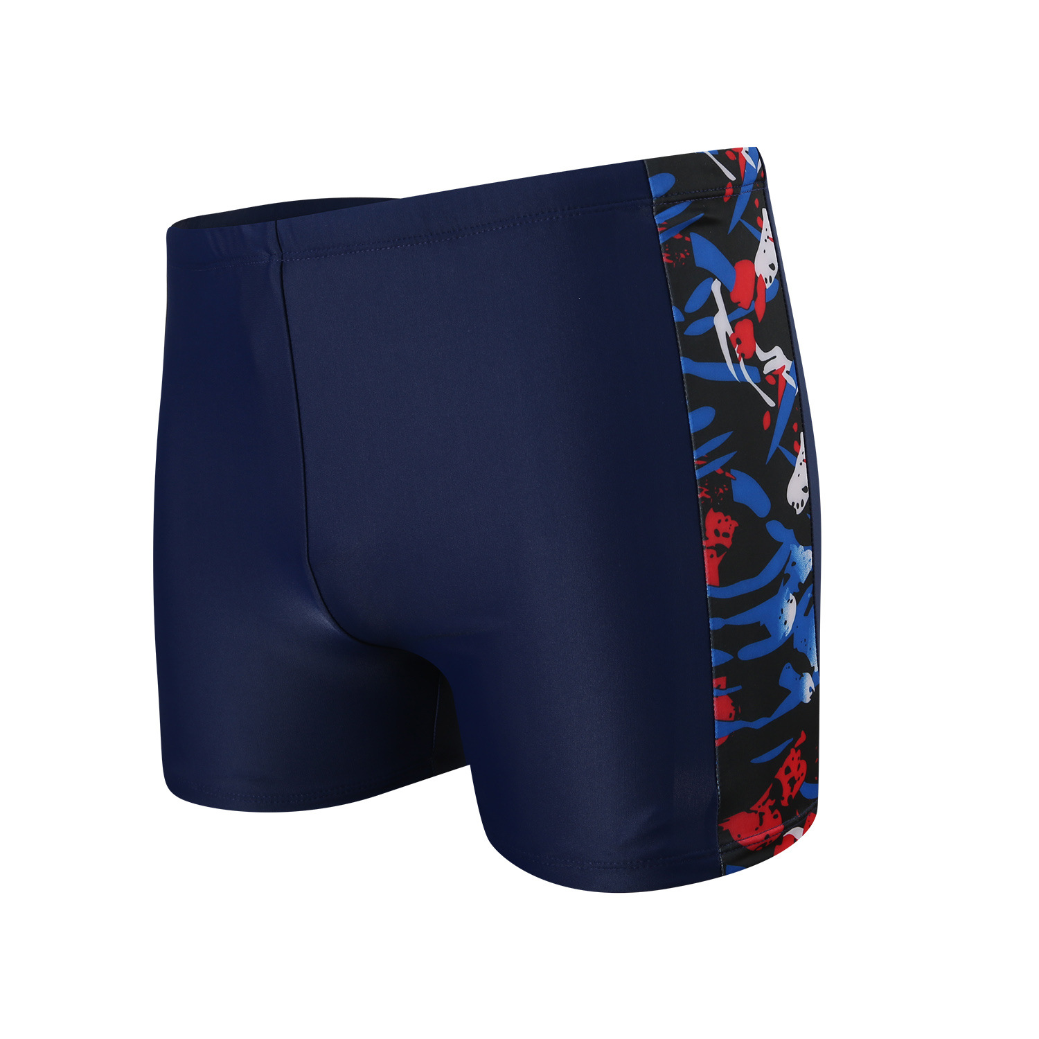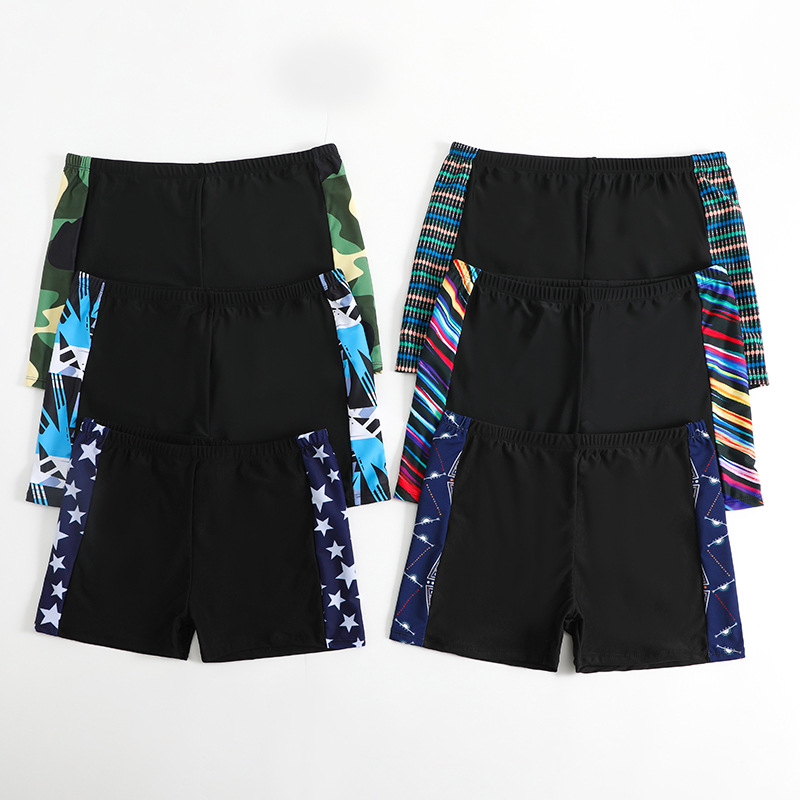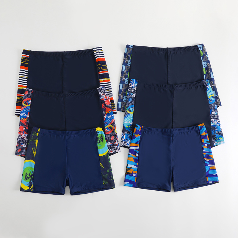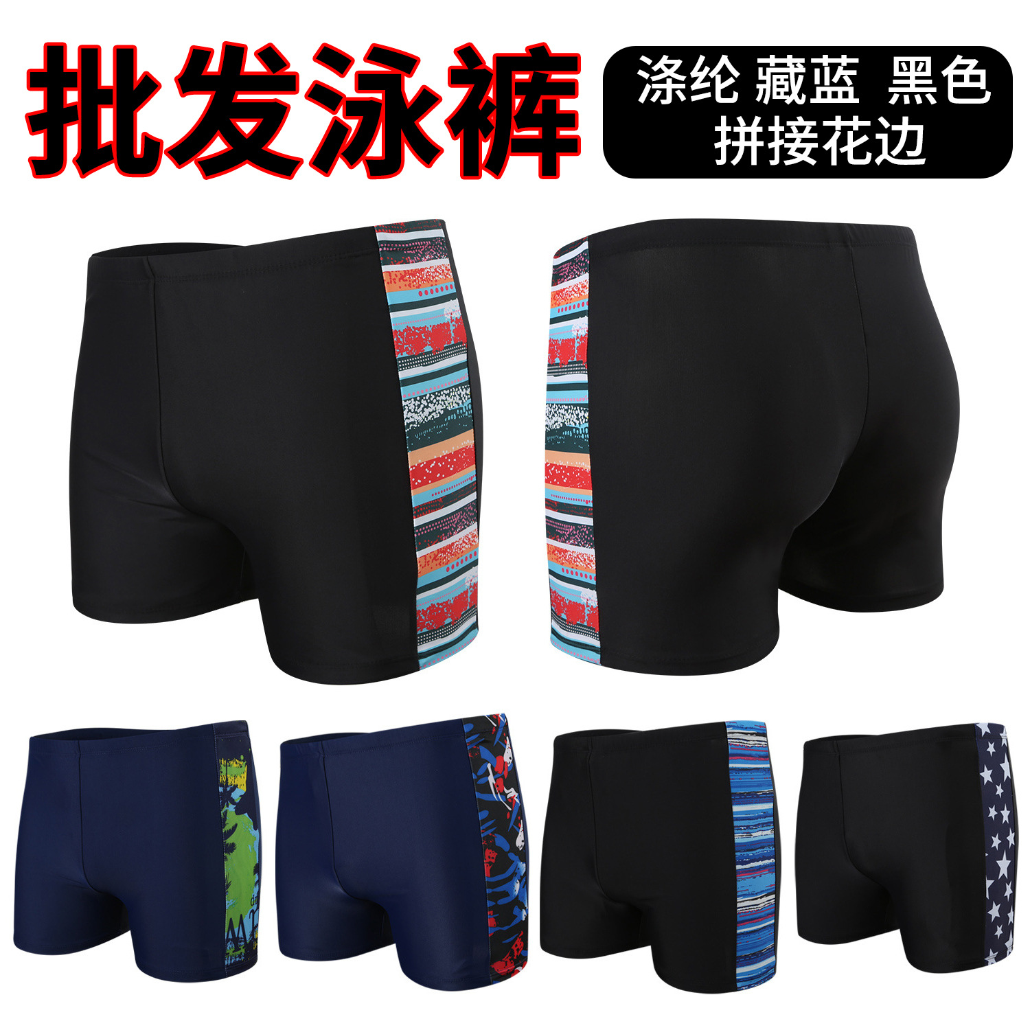 남성 수영 트렁크 공장 도매 패션 온천 플랫 앵글 다리 플러스 지방 증가 블랙 다크 블루 폴리 에스테르 수영 트렁크스토어 가기