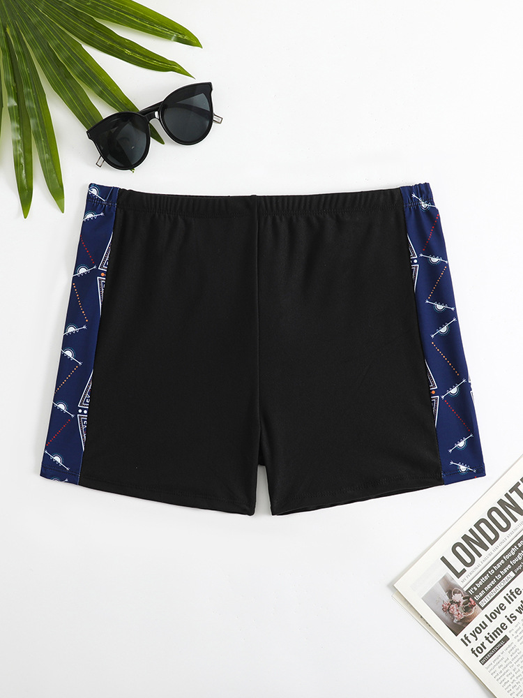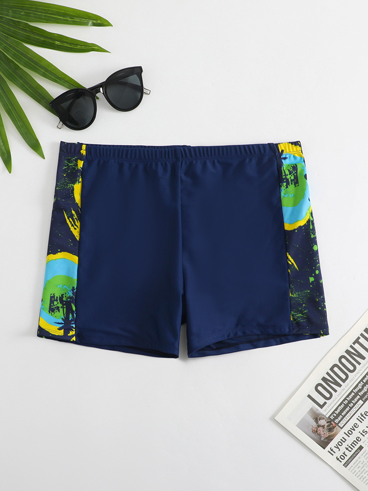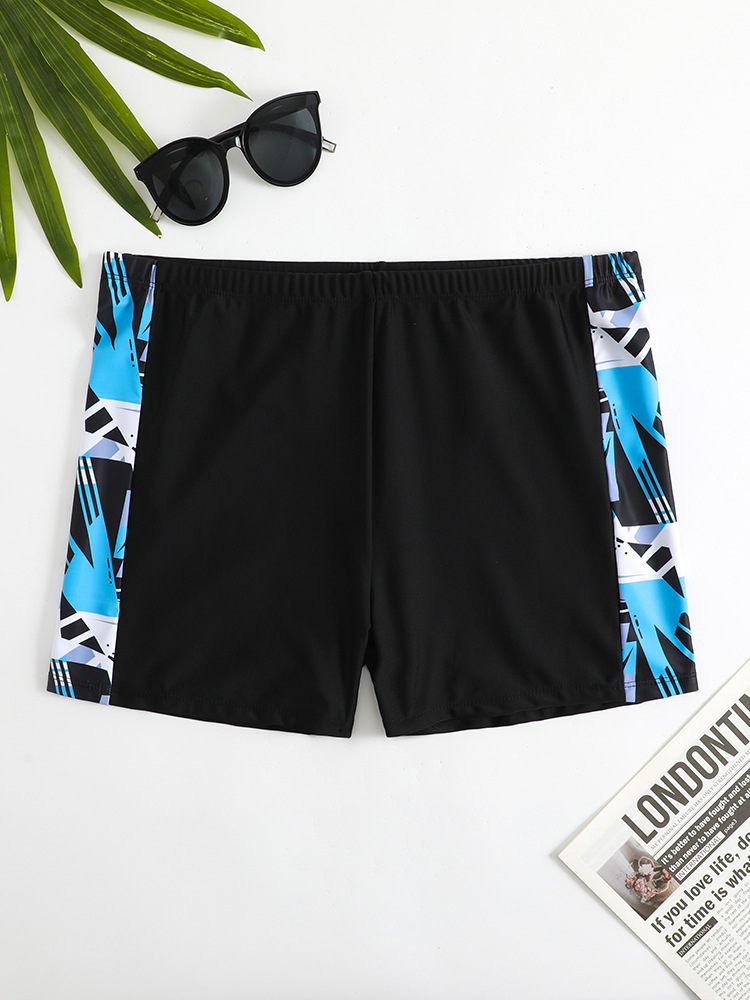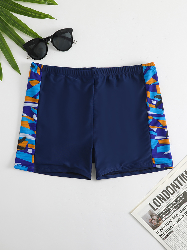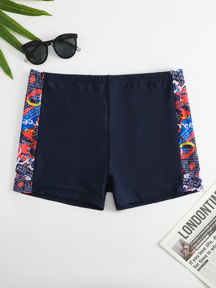 남성 수영 트렁크 공장 도매 패션 온천 플랫 앵글 다리 플러스 지방 증가 블랙 다크 블루 폴리 에스테르 수영 트렁크스토어 가기