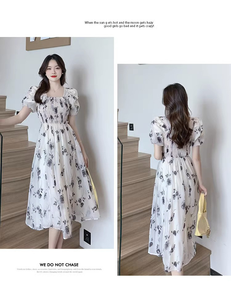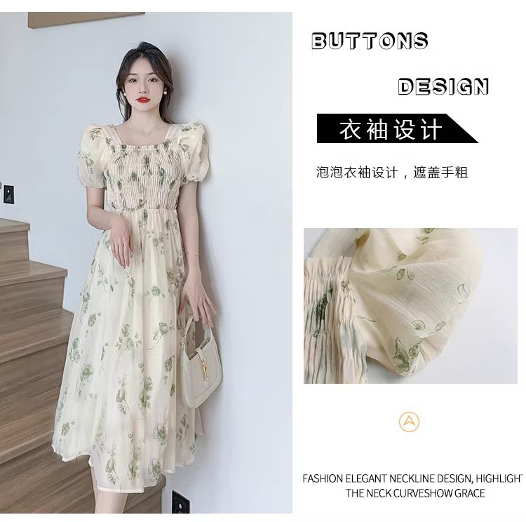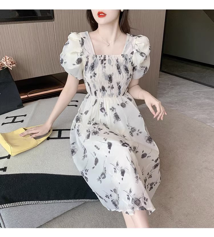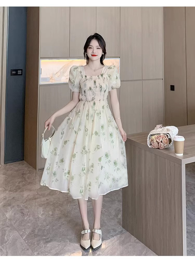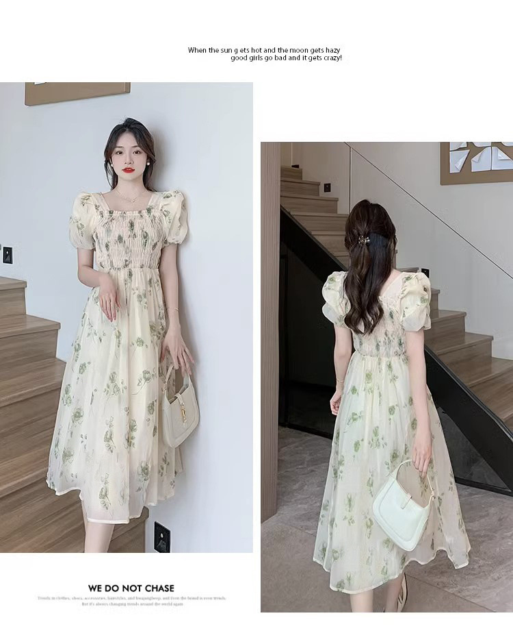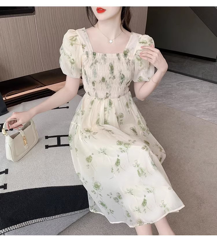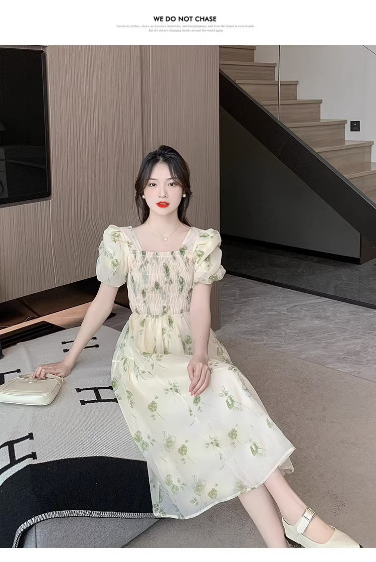 2024 여름 새로운 도착 프랑스 스타일 꽃 원피스 여성의 신선한 부드러운 달콤한 퍼프 소매 슬리밍 스커트스토어 가기