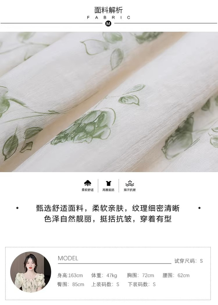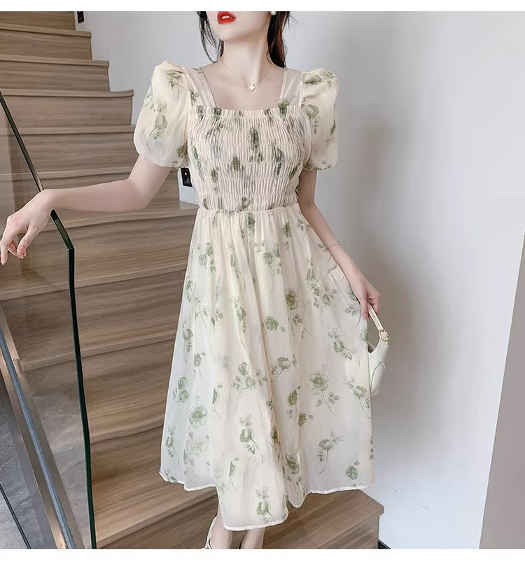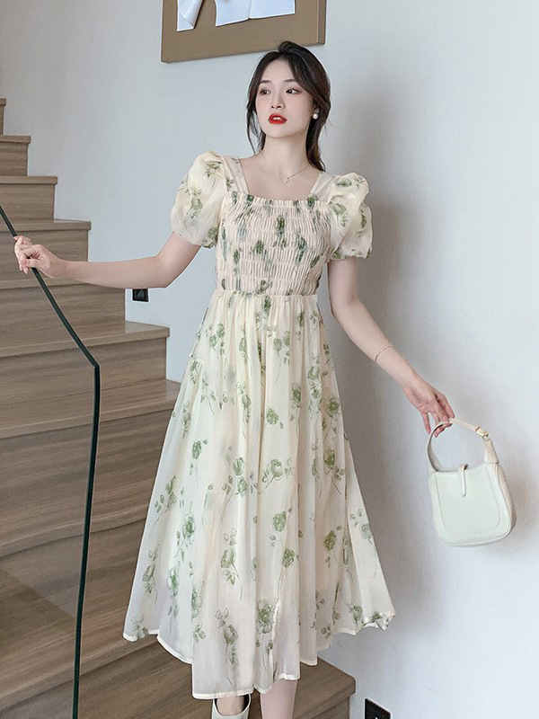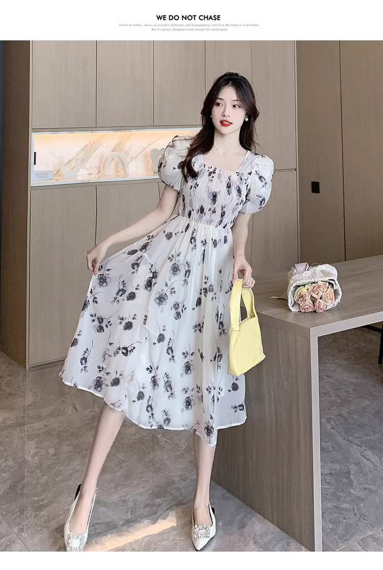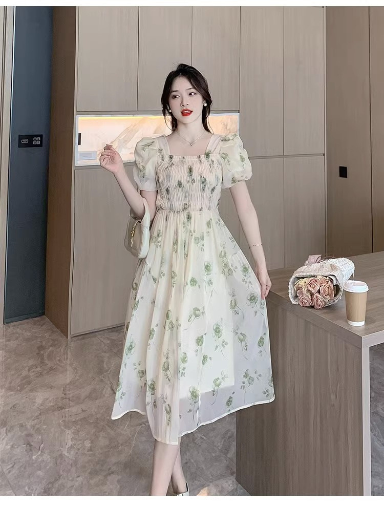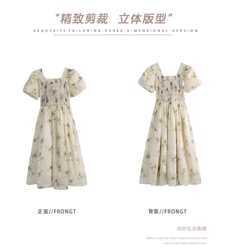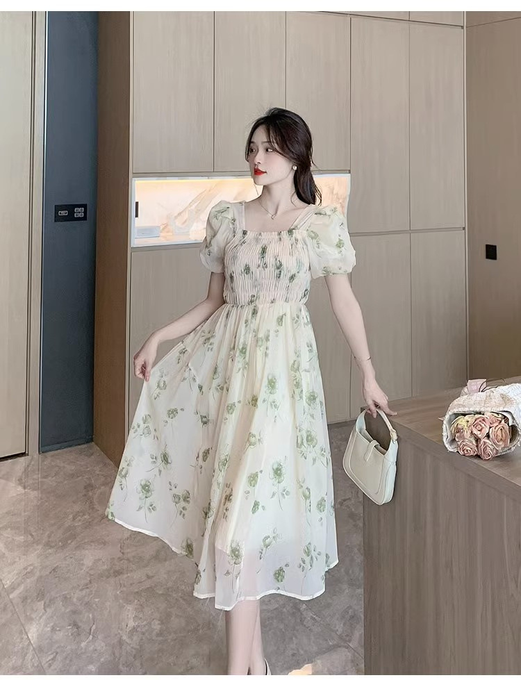 2024 여름 새로운 도착 프랑스 스타일 꽃 원피스 여성의 신선한 부드러운 달콤한 퍼프 소매 슬리밍 스커트스토어 가기
