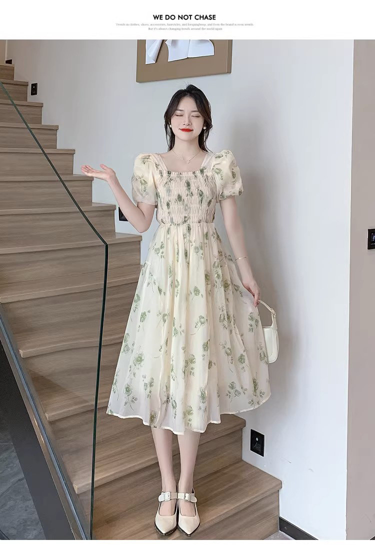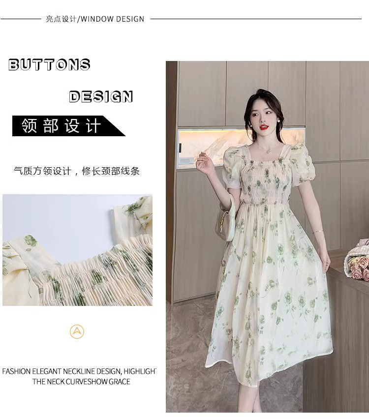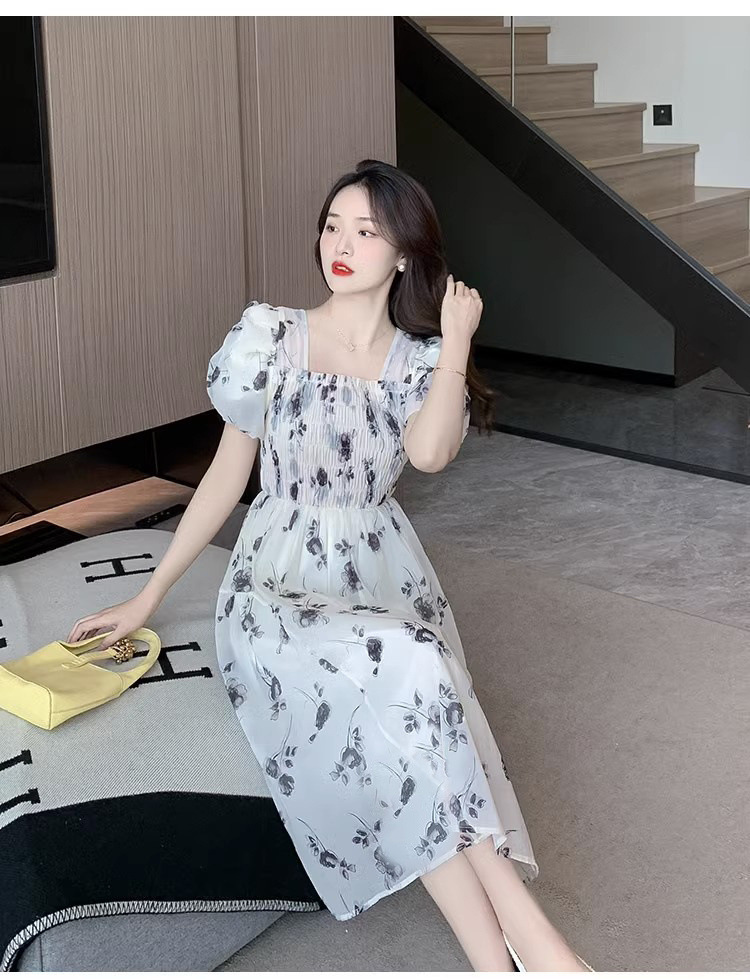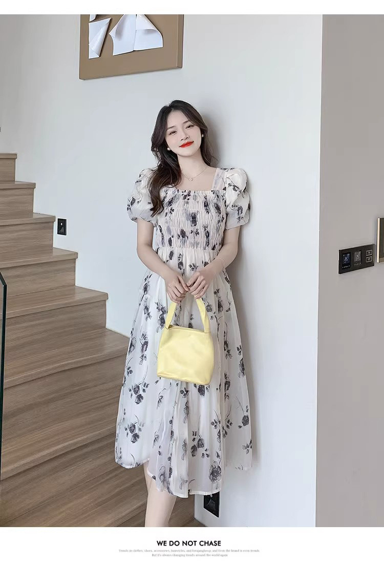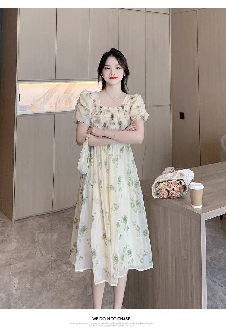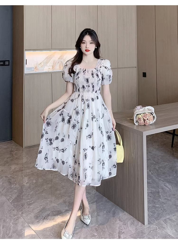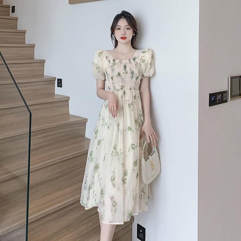 2024 여름 새로운 도착 프랑스 스타일 꽃 원피스 여성의 신선한 부드러운 달콤한 퍼프 소매 슬리밍 스커트스토어 가기