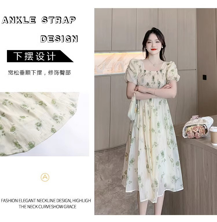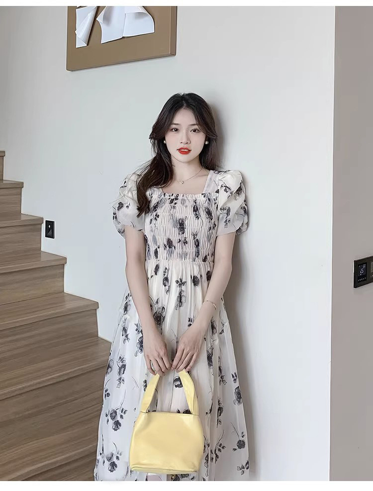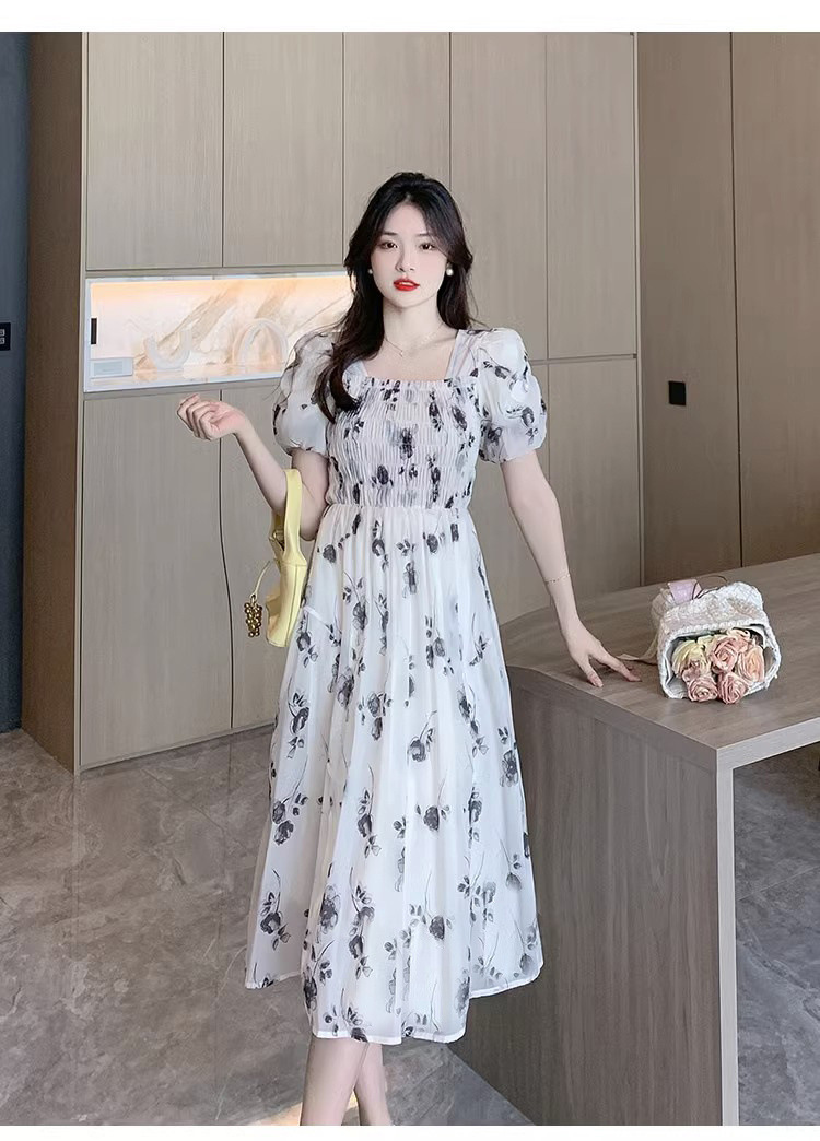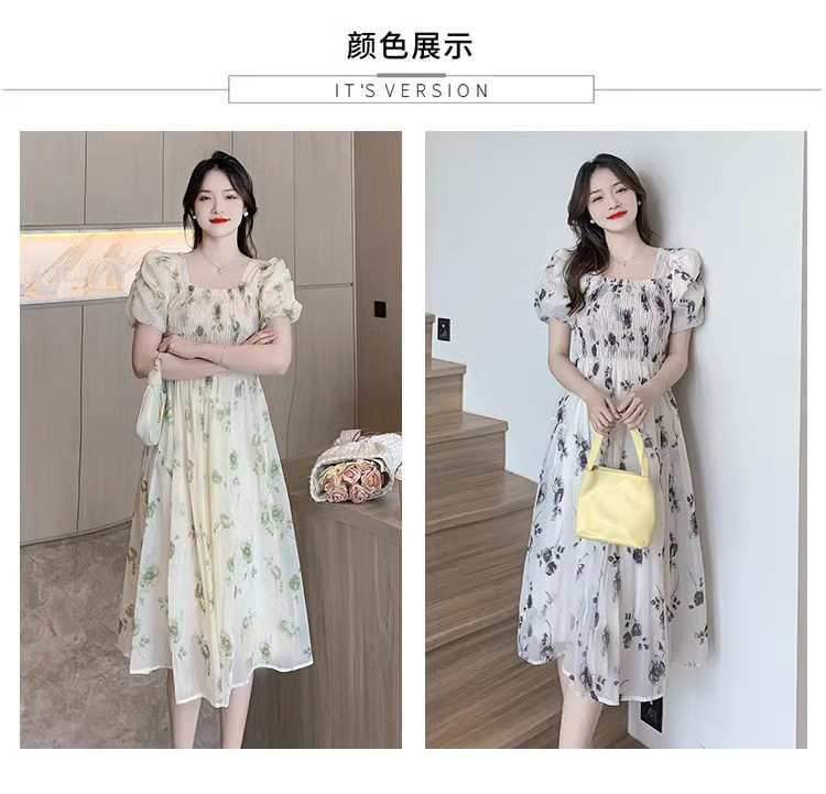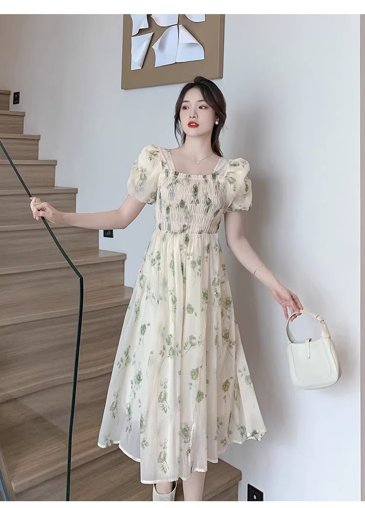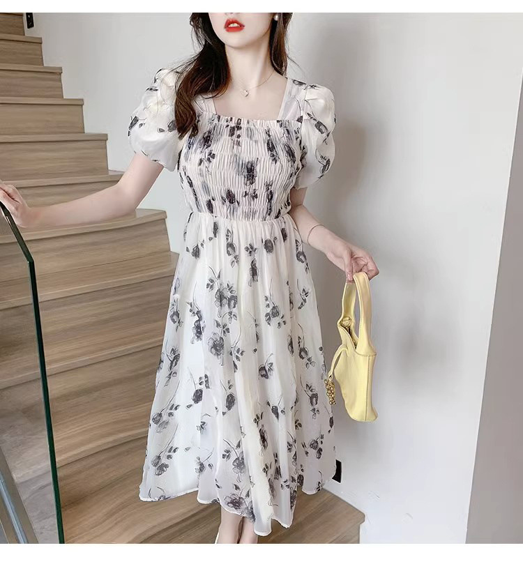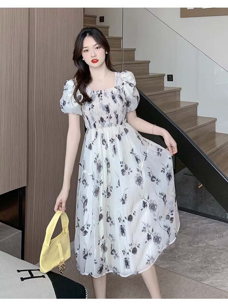2024 여름 새로운 도착 프랑스 스타일 꽃 원피스 여성의 신선한 부드러운 달콤한 퍼프 소매 슬리밍 스커트스토어 가기