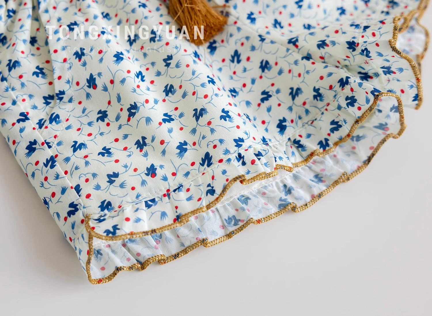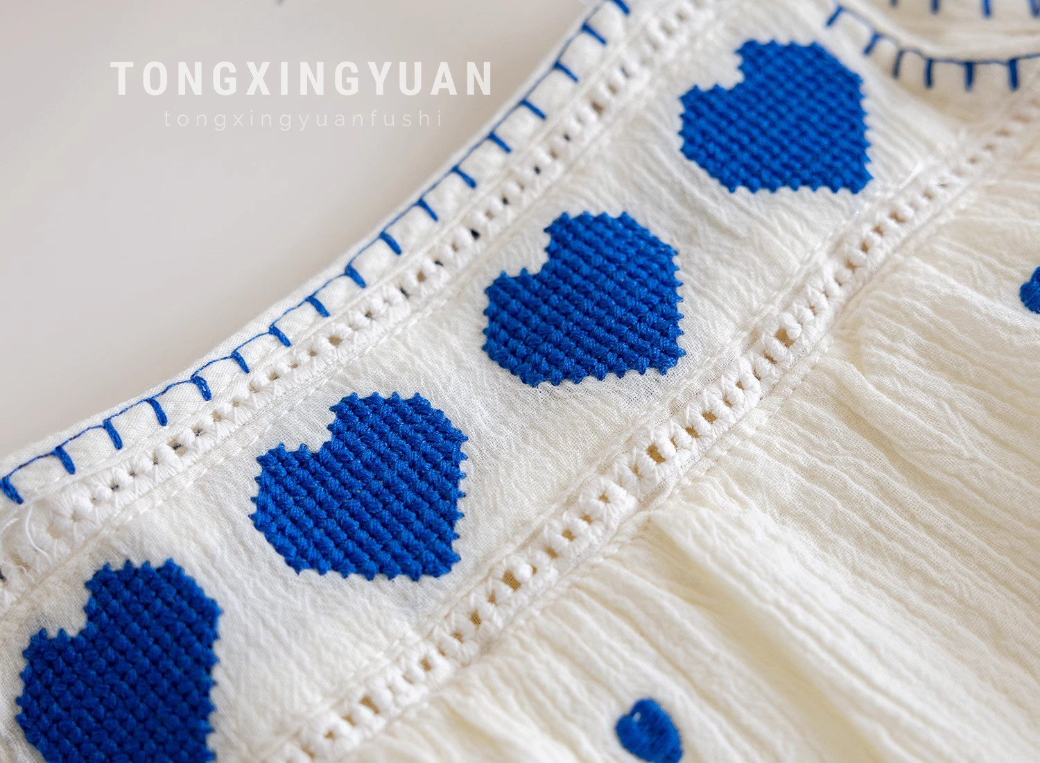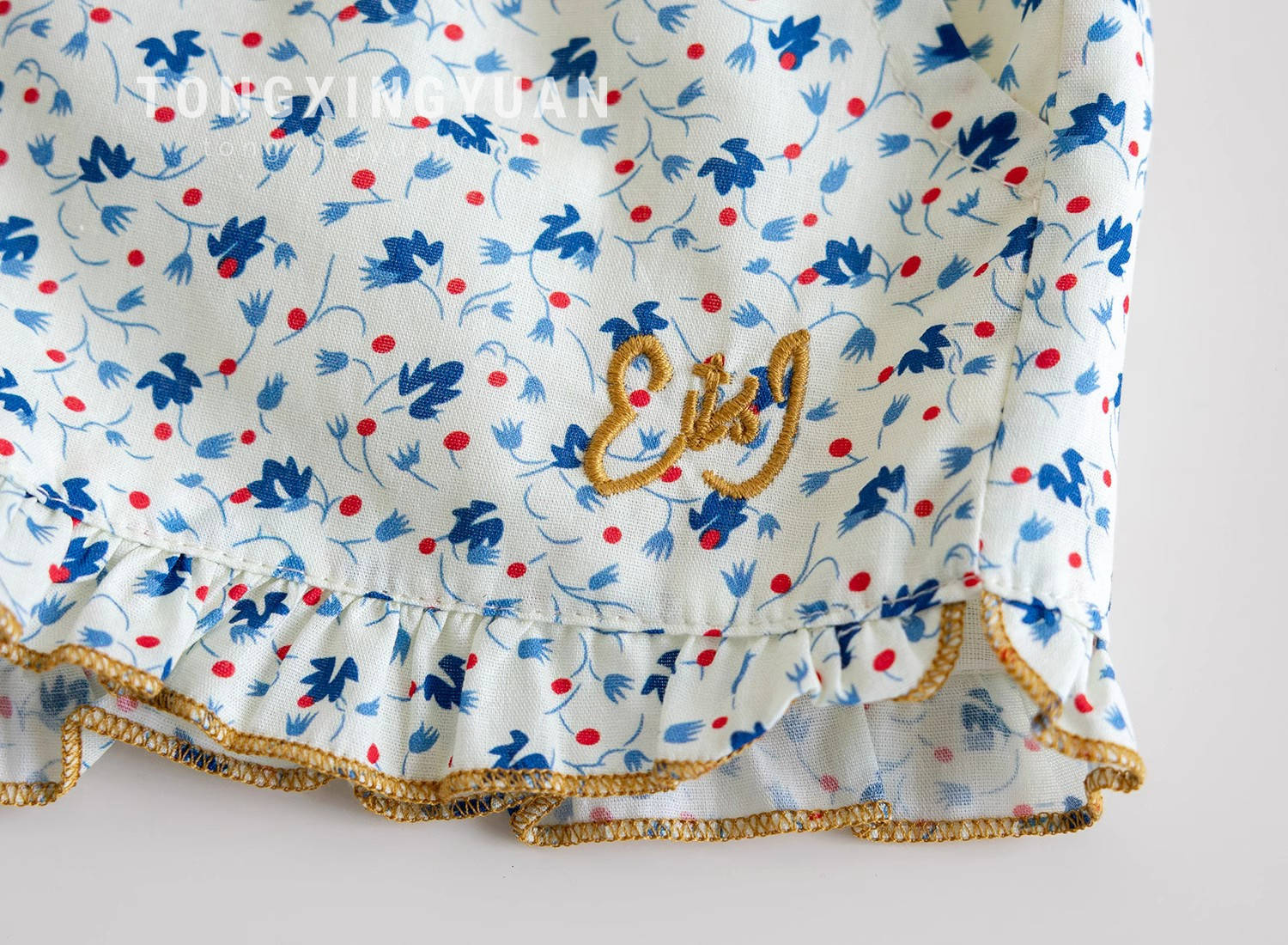 Tongxingyuan 아기 한국식 어린이 자수 고삐 셔츠 여름 새로운 단색 조끼 서양식 꽃 무늬 치마 세트스토어 가기