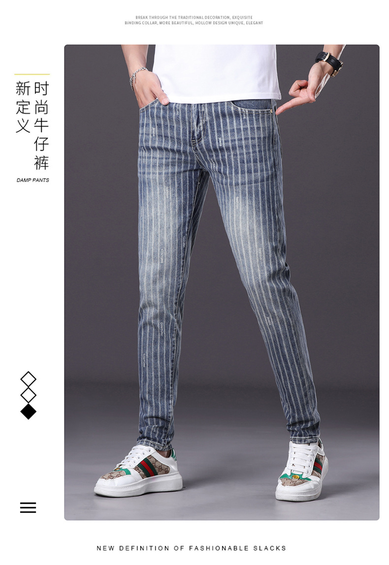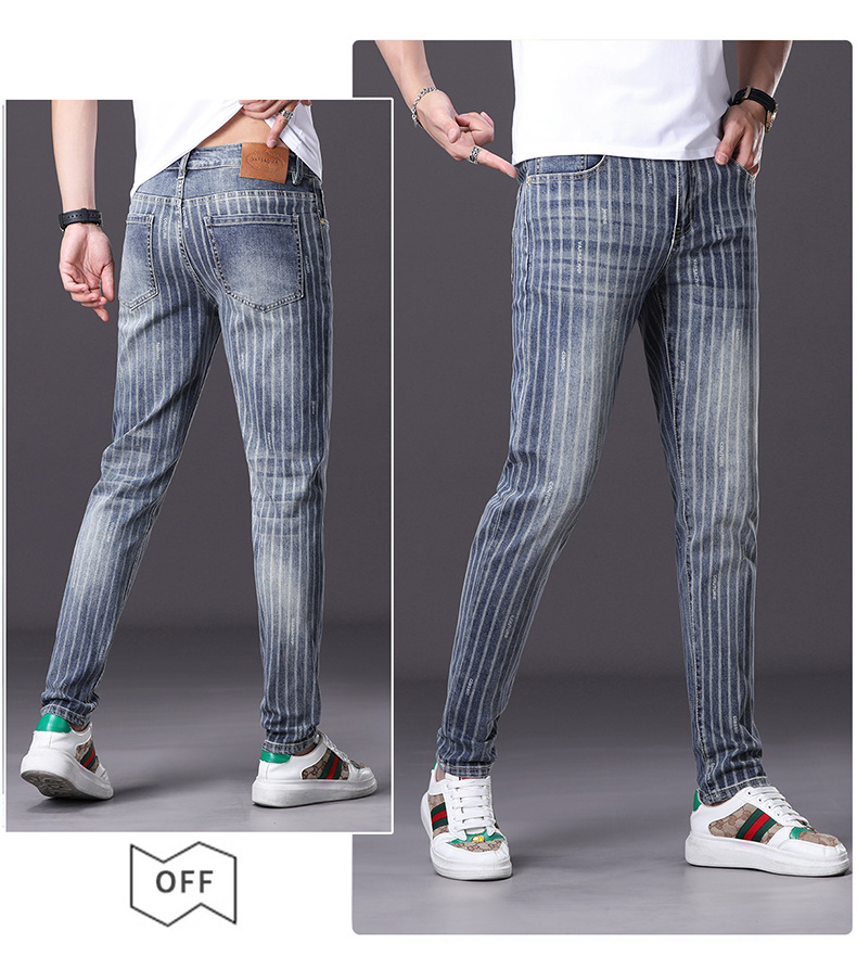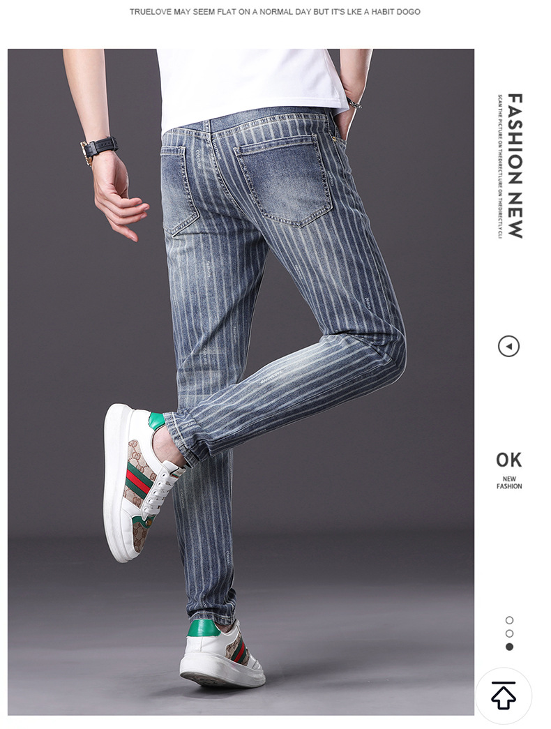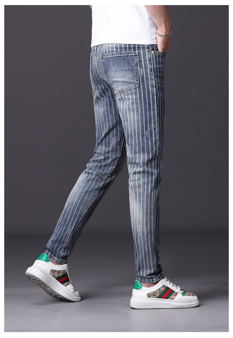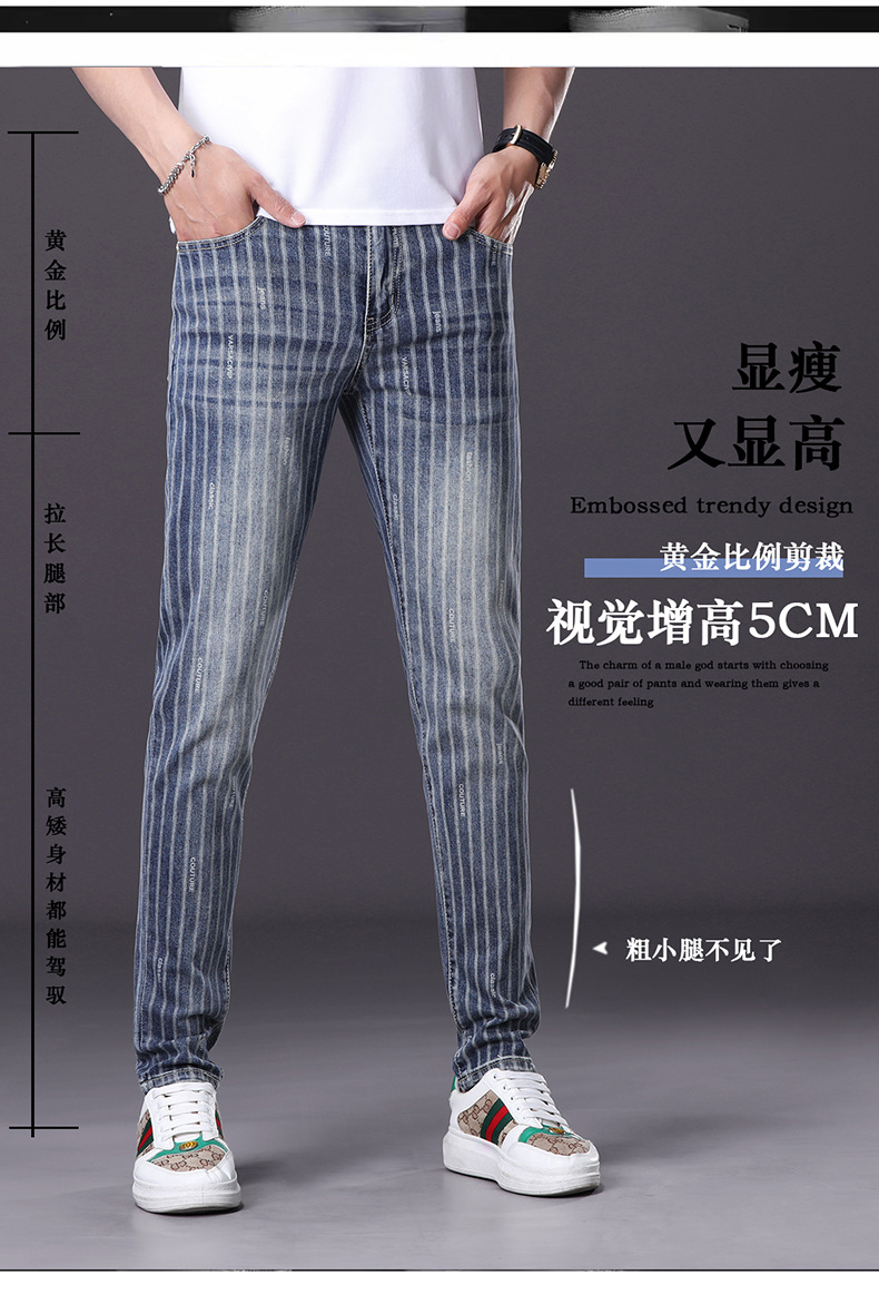 2025 년 봄 새로운 블랙 수직 줄무늬 청바지 남성용 캐주얼 바지가 한국식 세련된 슬림 핏 스키니 팬츠를 스트레칭스토어 가기