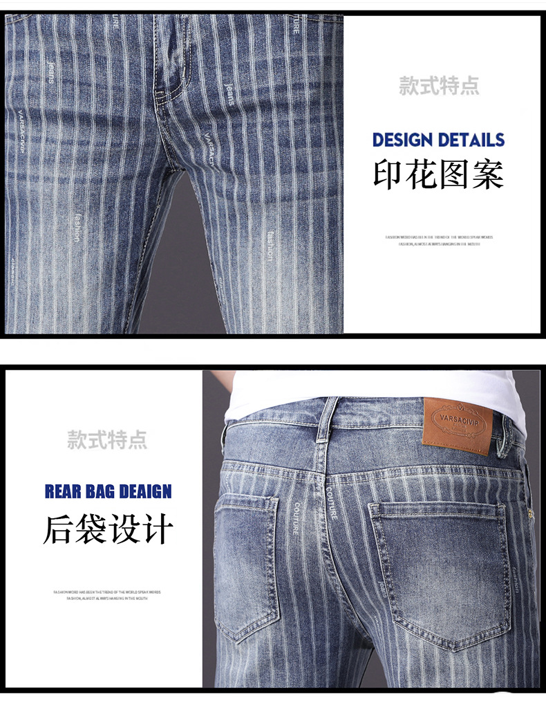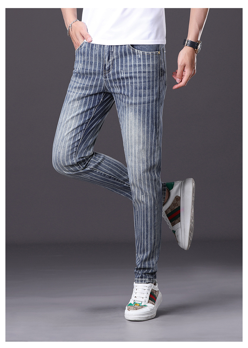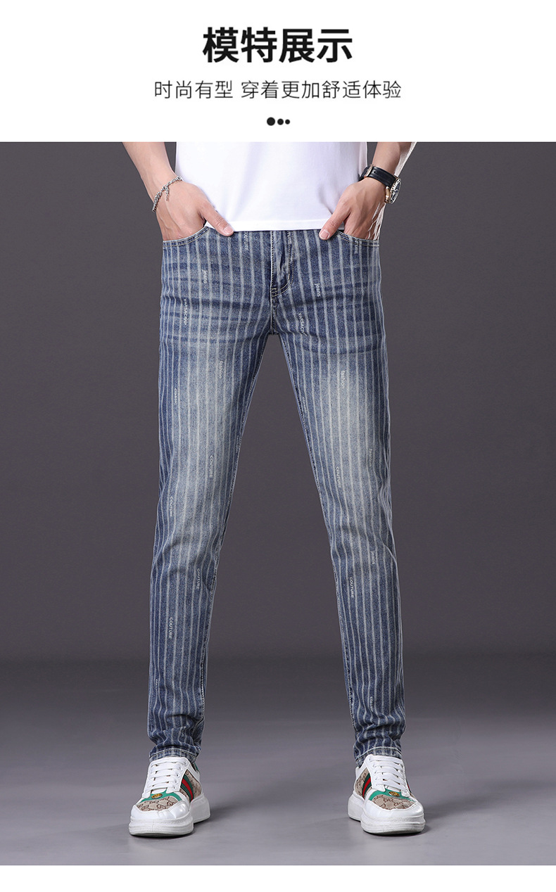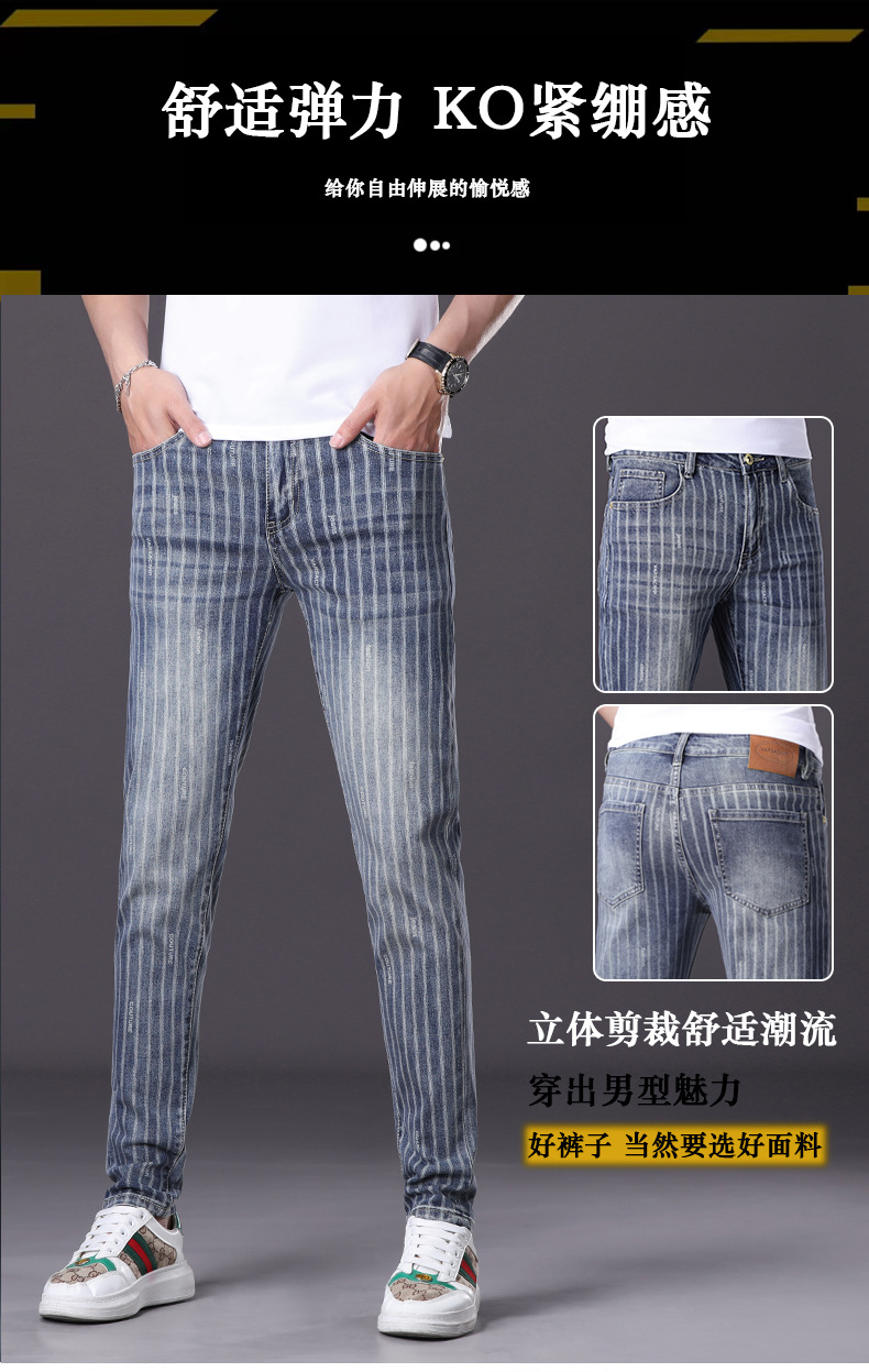 2025 년 봄 새로운 블랙 수직 줄무늬 청바지 남성용 캐주얼 바지가 한국식 세련된 슬림 핏 스키니 팬츠를 스트레칭스토어 가기