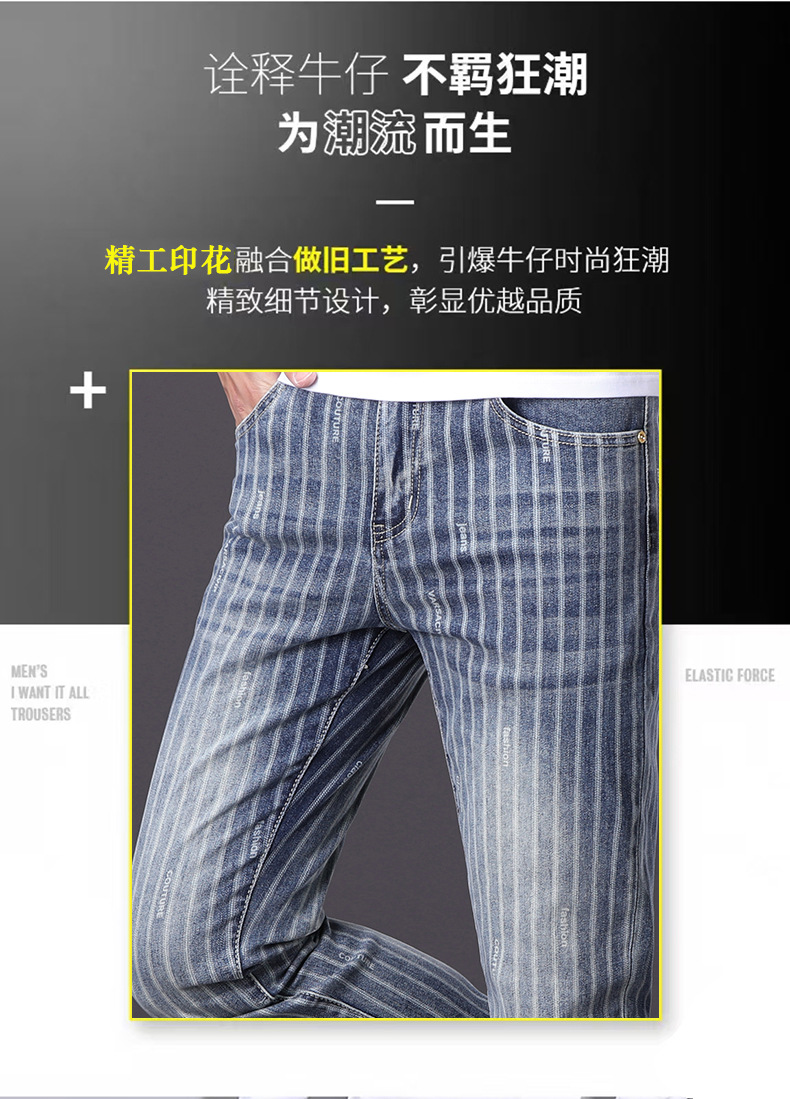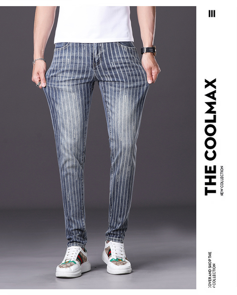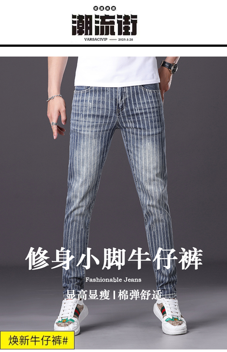 2025 년 봄 새로운 블랙 수직 줄무늬 청바지 남성용 캐주얼 바지가 한국식 세련된 슬림 핏 스키니 팬츠를 스트레칭
