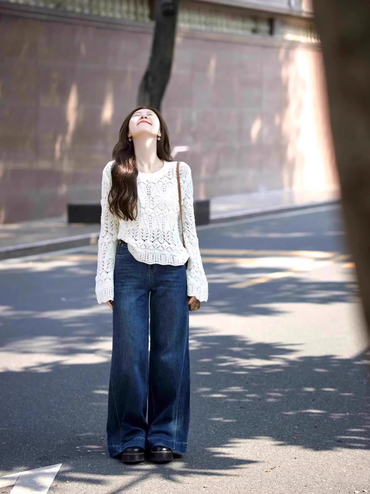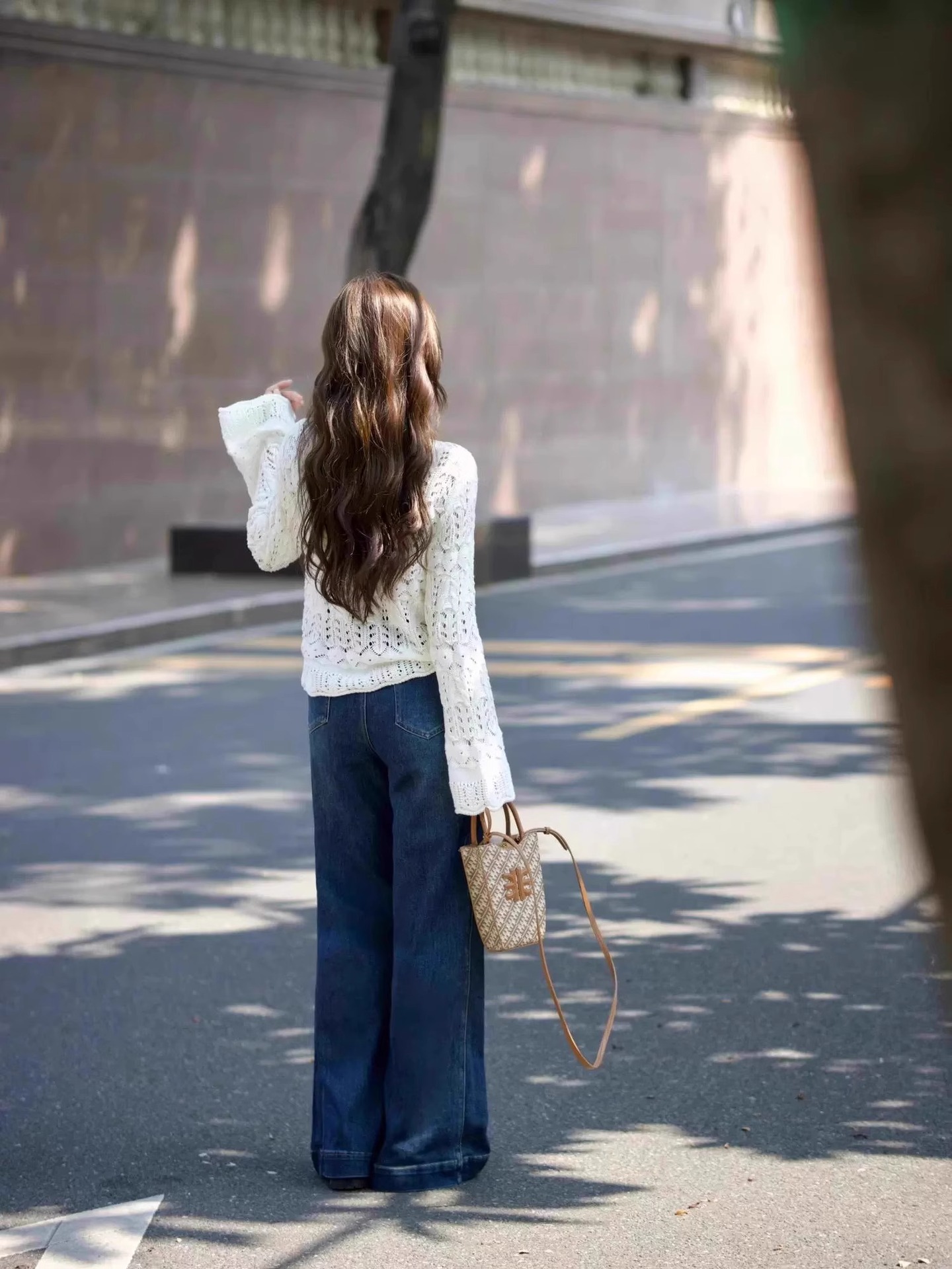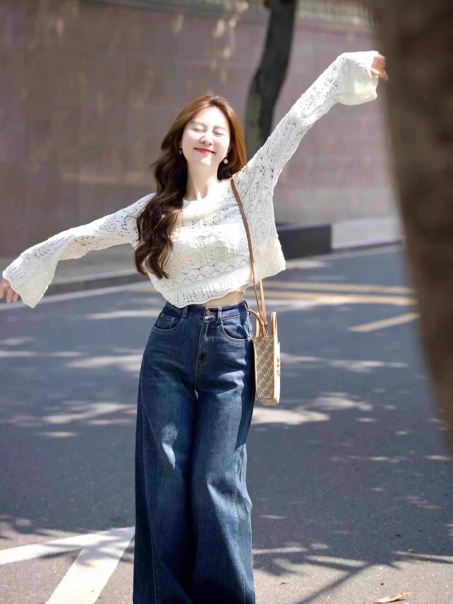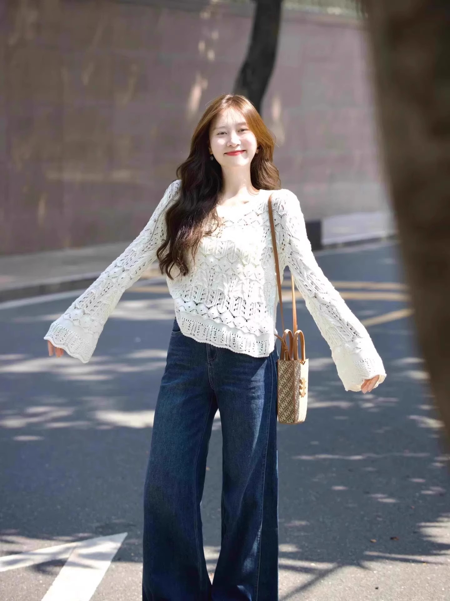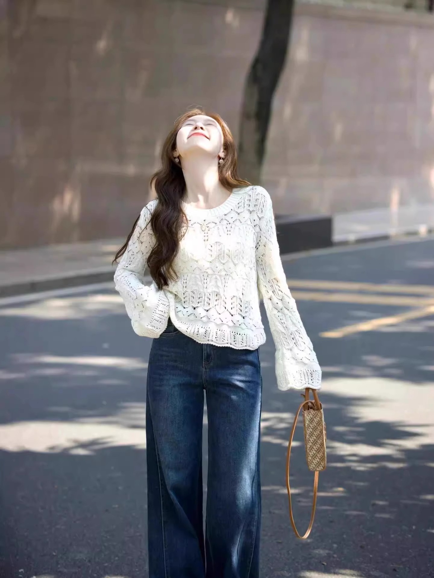 한국 스타일 봄 착용 중공 크로 셰 스웨터 탑 여성의 여름 느슨한 짧은 긴 소매 얇은 선 스크린 블라우스