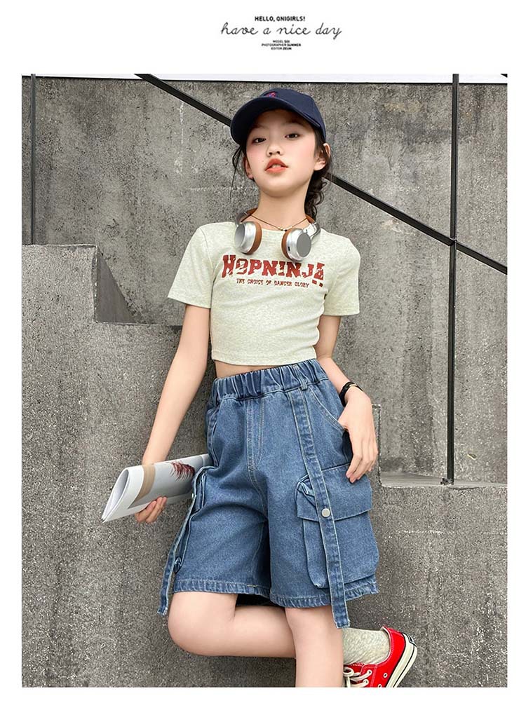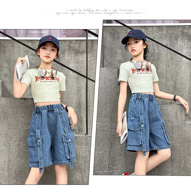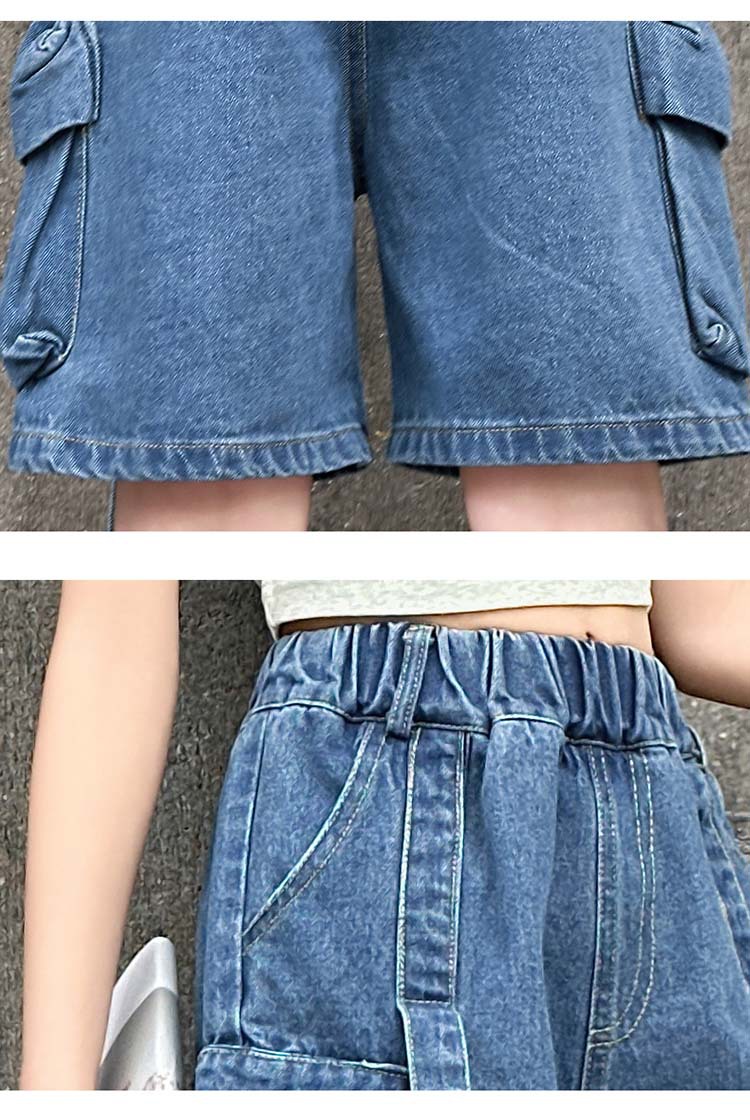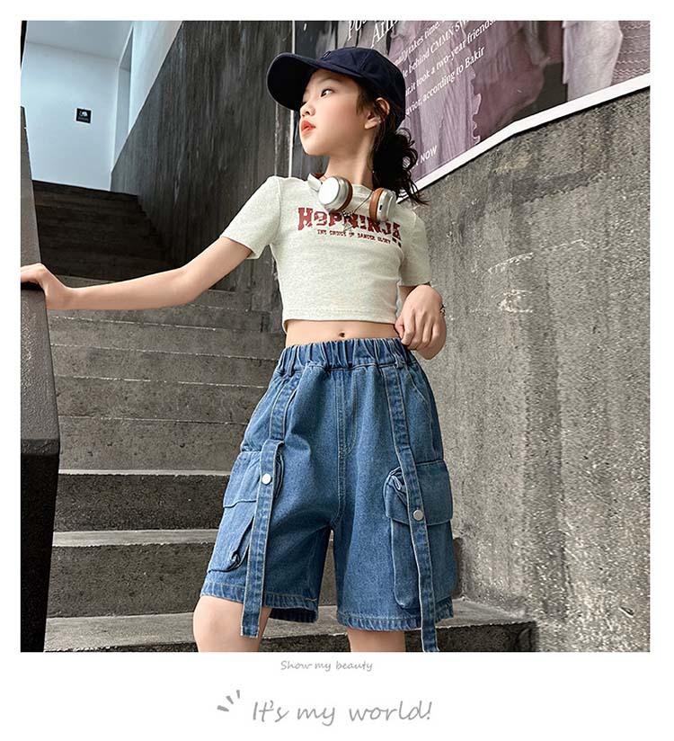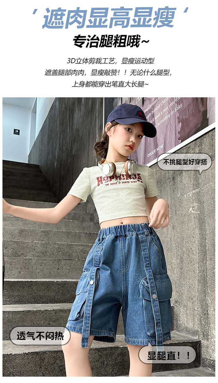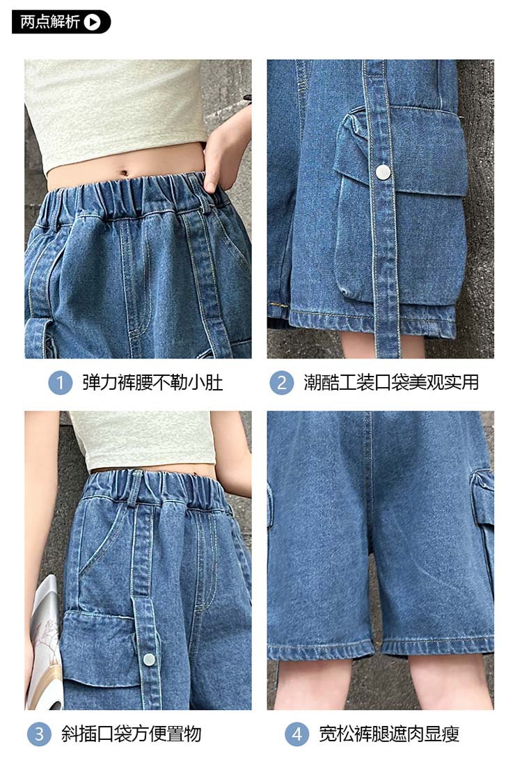 소녀 데님 작업복 5 점 바지 2025 여름 새로운 스타일 중간 크기의 어린이 유행 바지 어린이 인터넷 인기있는 느슨한 바지스토어 가기