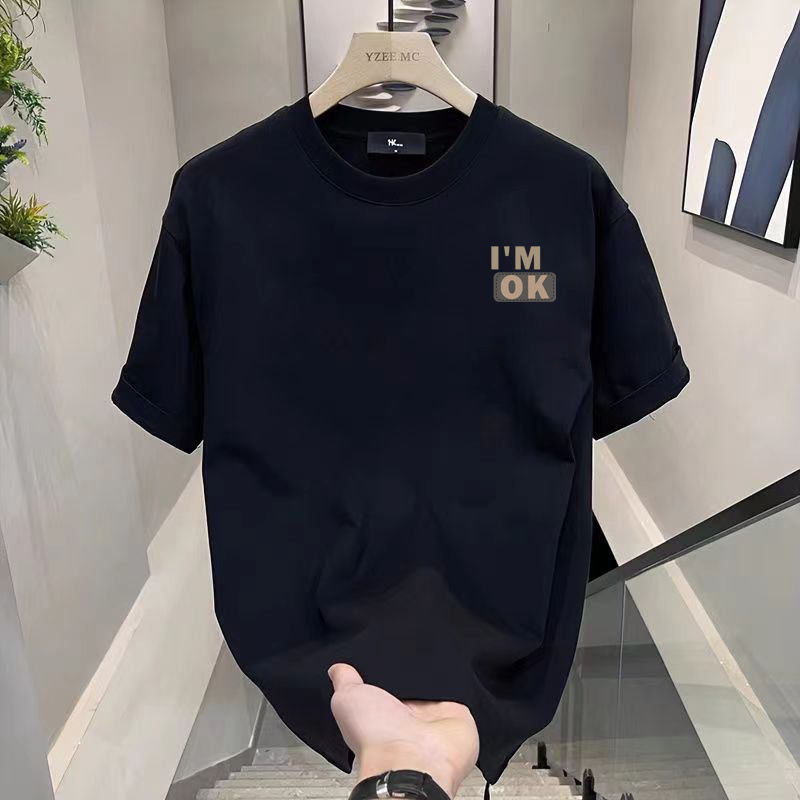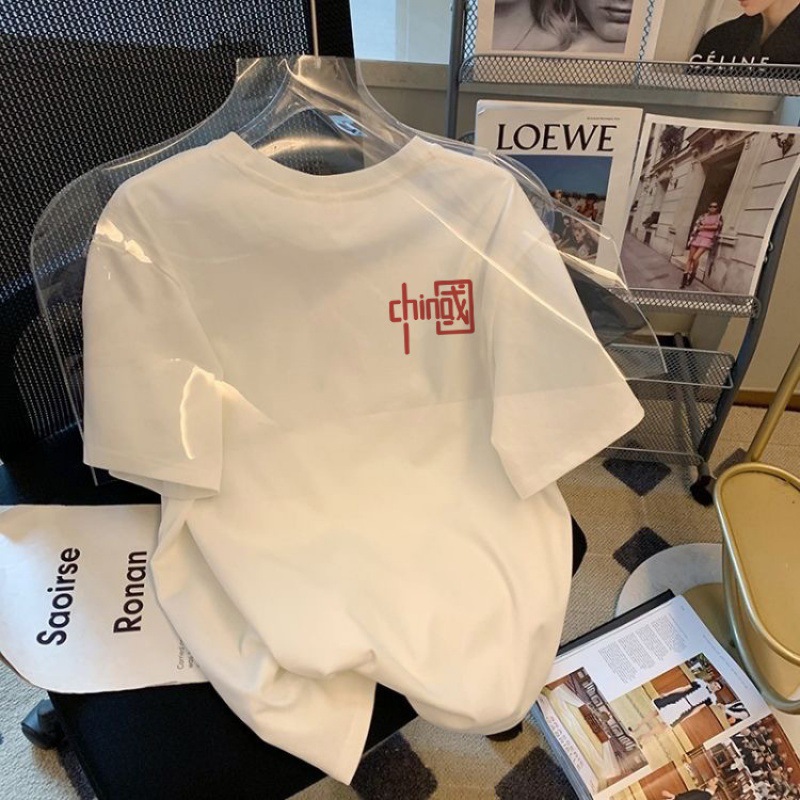 커플의 홍콩 스타일 작은 라벨 인쇄 반팔 티셔츠 2025 여름 흑백 T 남자 탑 라운드 넥 라이브 잔디 심기