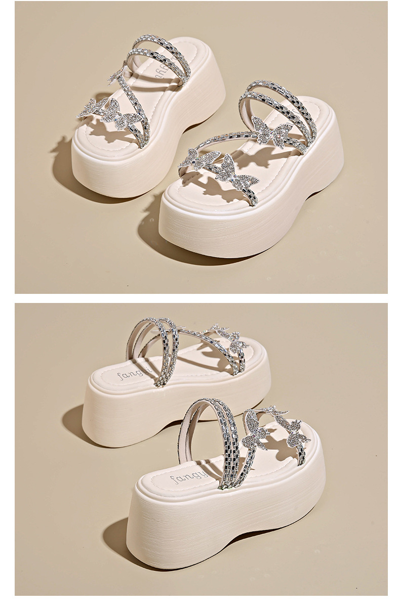 여자를위한 인터넷 축하 두꺼운 하단 플랫폼 라인스톤 슬리퍼 2025 여름 새로운 한국 스타일 패션 활 투웨어 여성용 하이힐 샌들스토어 가기