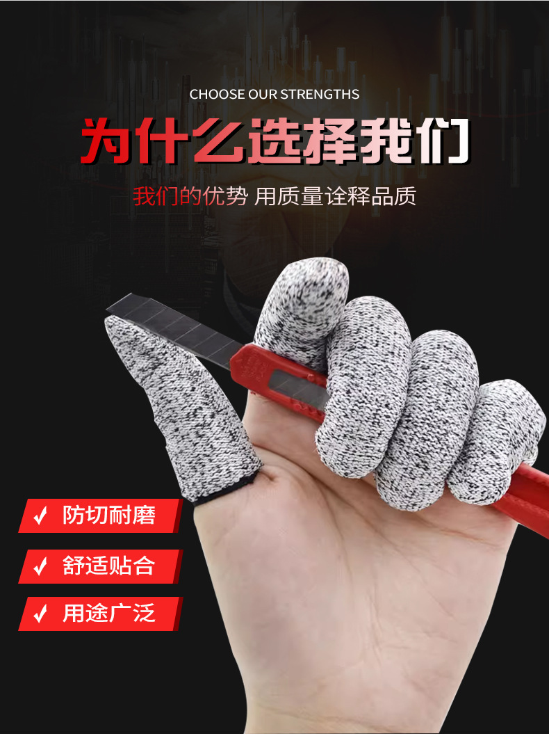 5 단계 절단 방지 손가락 세트 엄지 칼 피커 손가락 세트 HPPE 조각 안티 절단 탄성 내마모성 노동 장갑스토어 가기