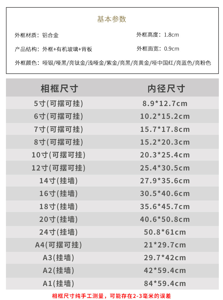알루미늄 합금 빨간색 사진 프레임 데스크탑 장식품 금속 포스터 수제 A4 액자 사업 라이센스 컬러 선물 프레임스토어 가기