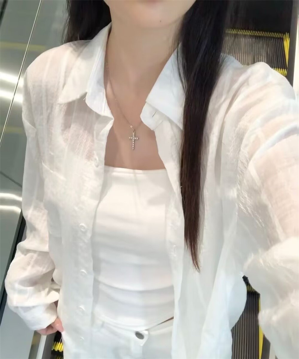 라 샤펠 폭발성 화이트 셔츠 여성의 여름 2025 새로운 통기성 질감 프렌치 루즈 탑 재킷