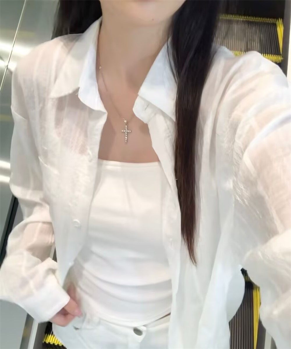 라 샤펠 폭발성 화이트 셔츠 여성의 여름 2025 새로운 통기성 질감 프렌치 루즈 탑 재킷스토어 가기