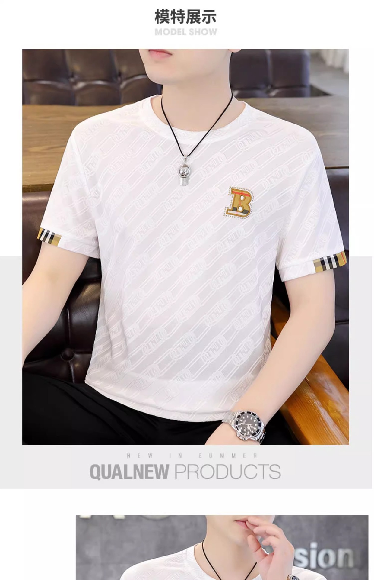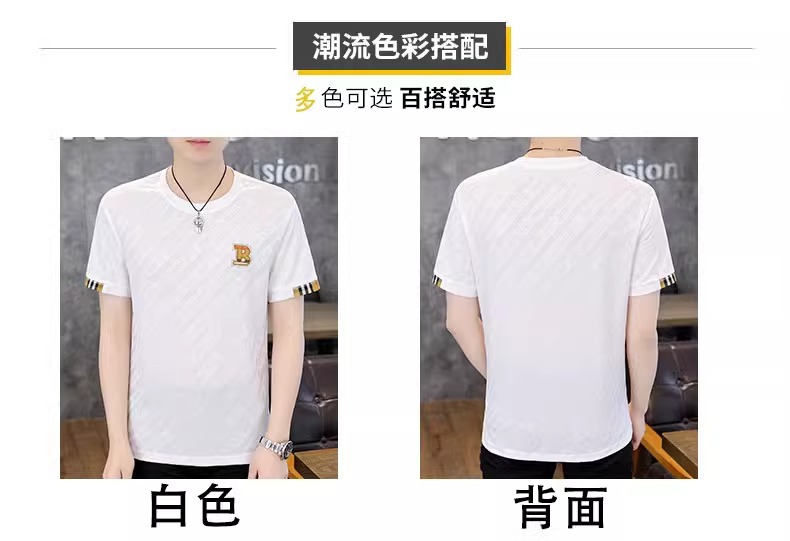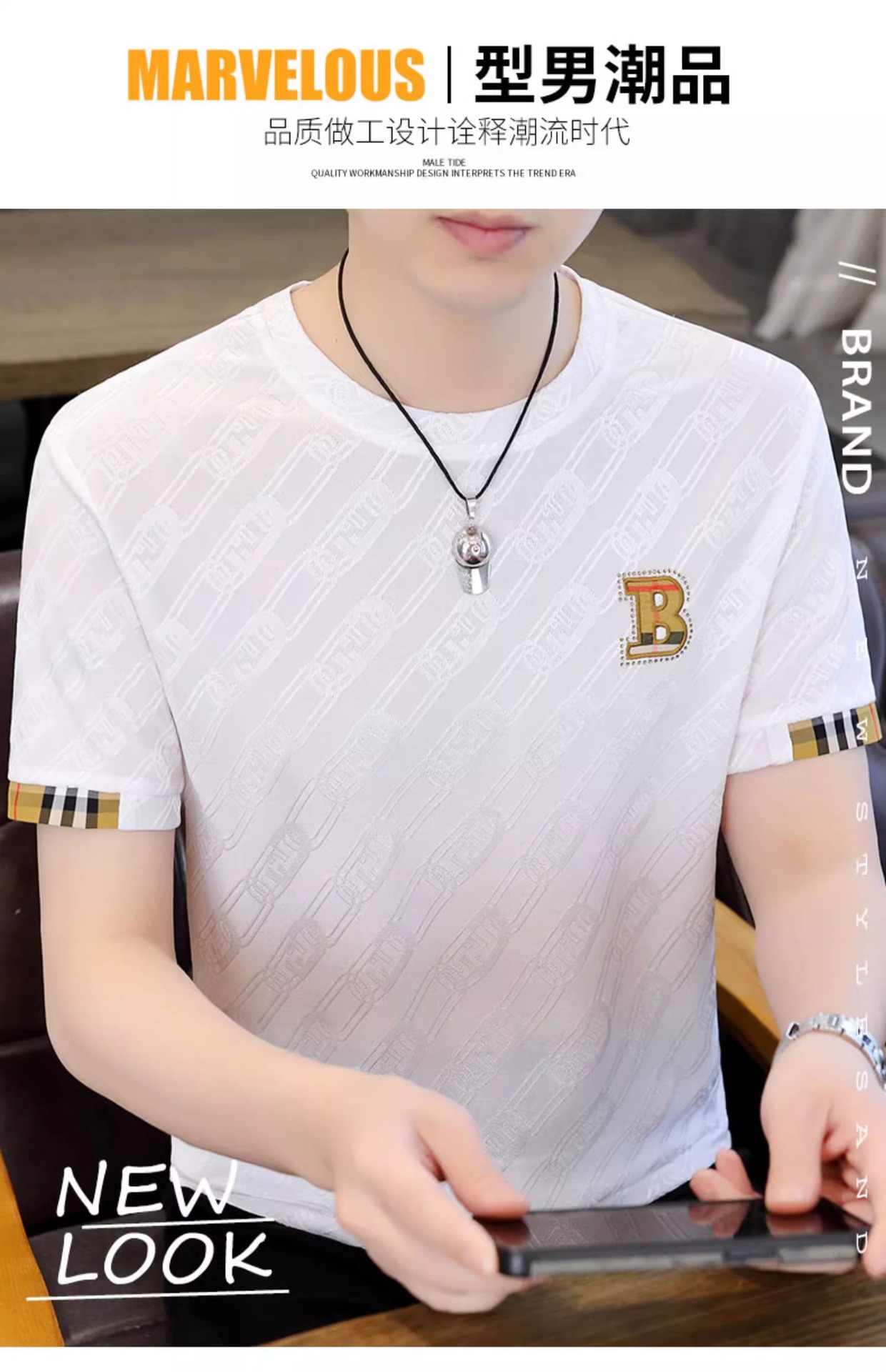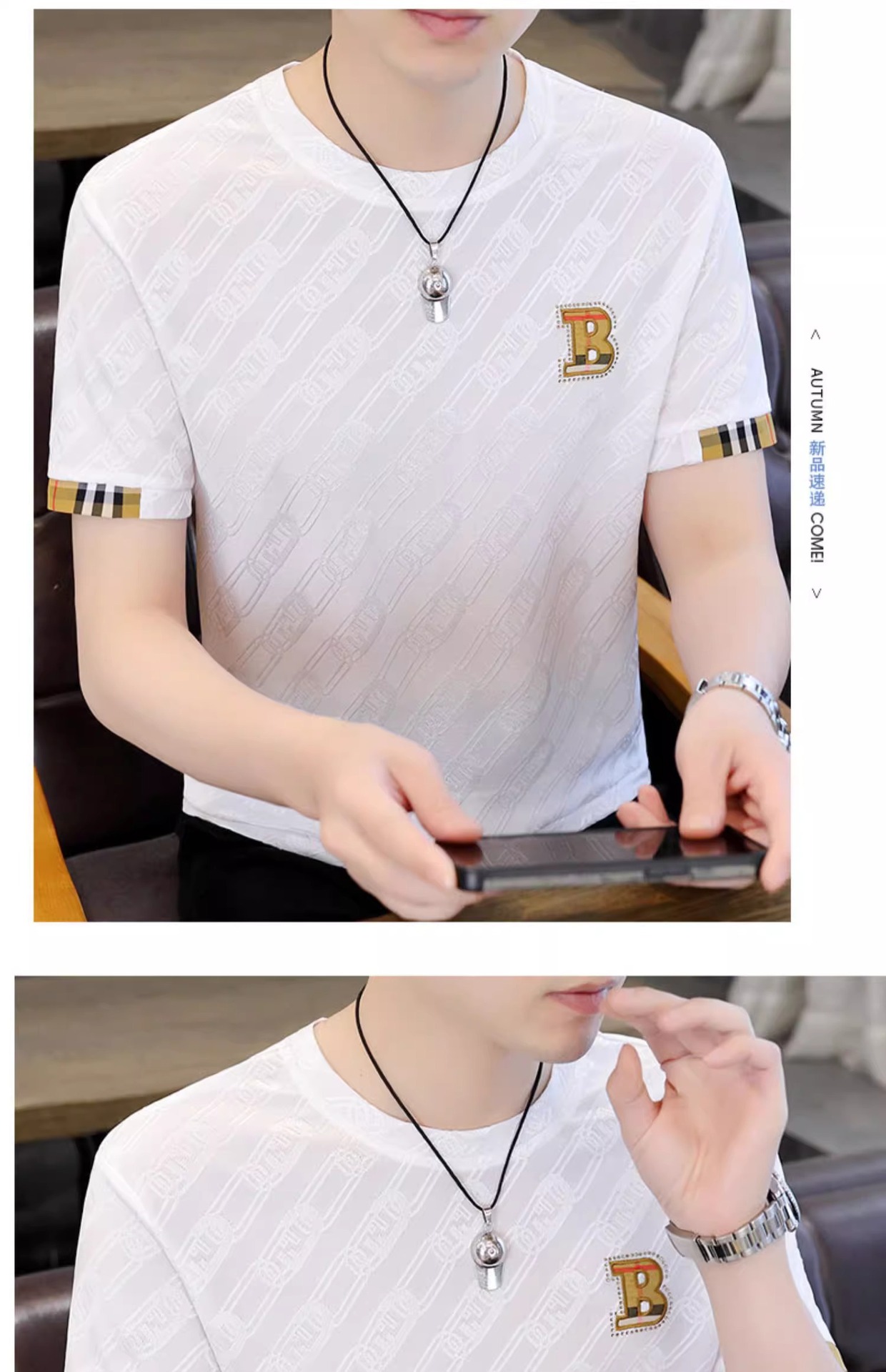 여름 남자 반팔 티셔츠 아이스 실크 얇은 유행 캐주얼 쿨 느낌 티셔츠 2024 새로운 유행 브랜드 남성용 탑스토어 가기