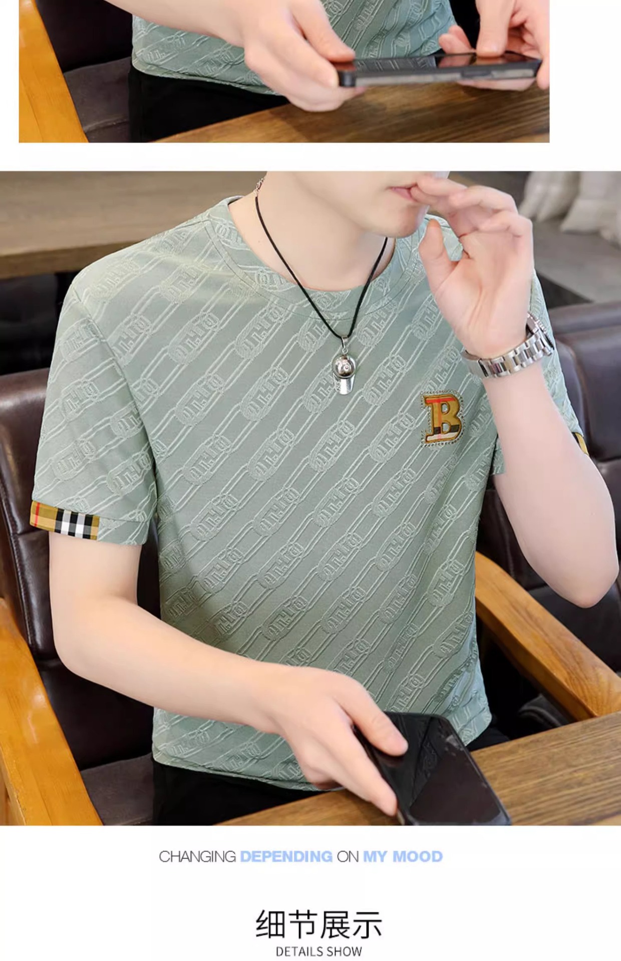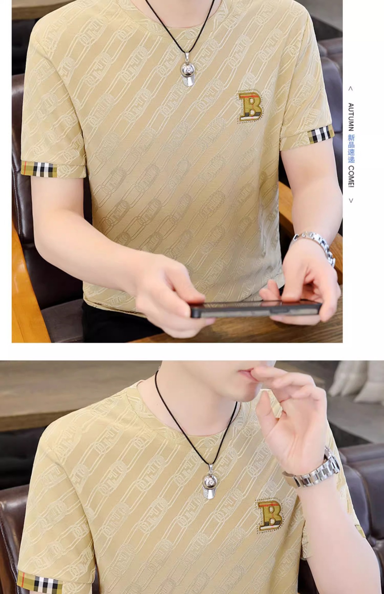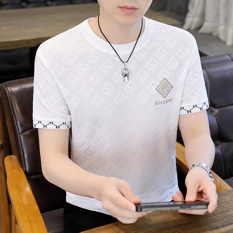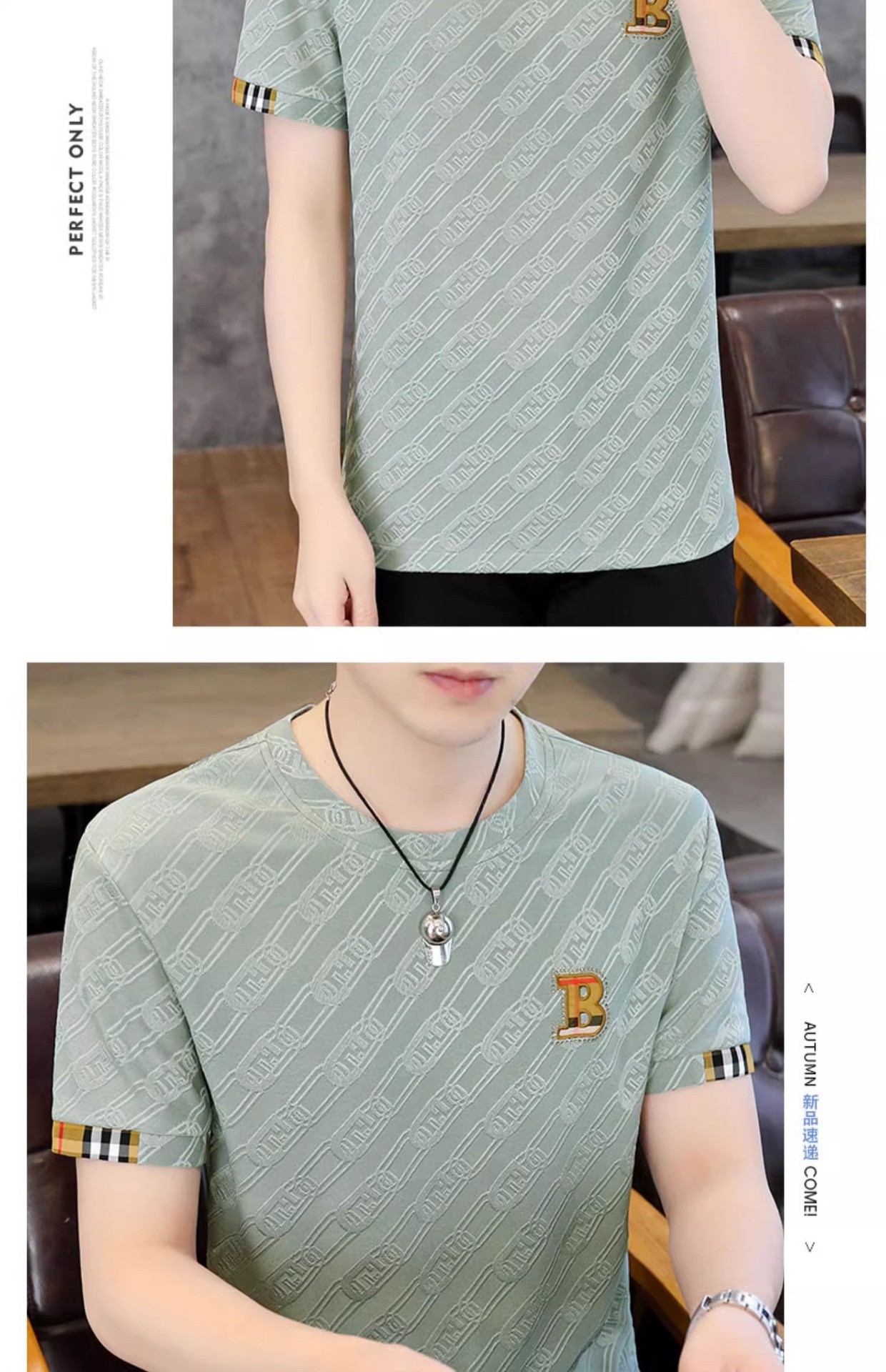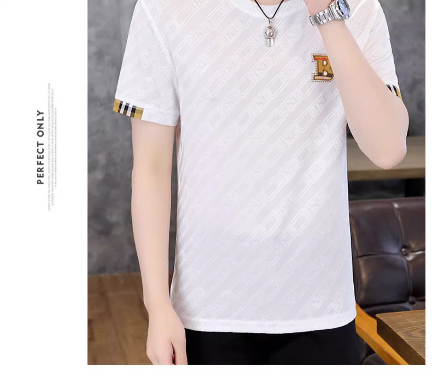 여름 남자 반팔 티셔츠 아이스 실크 얇은 유행 캐주얼 쿨 느낌 티셔츠 2024 새로운 유행 브랜드 남성용 탑스토어 가기