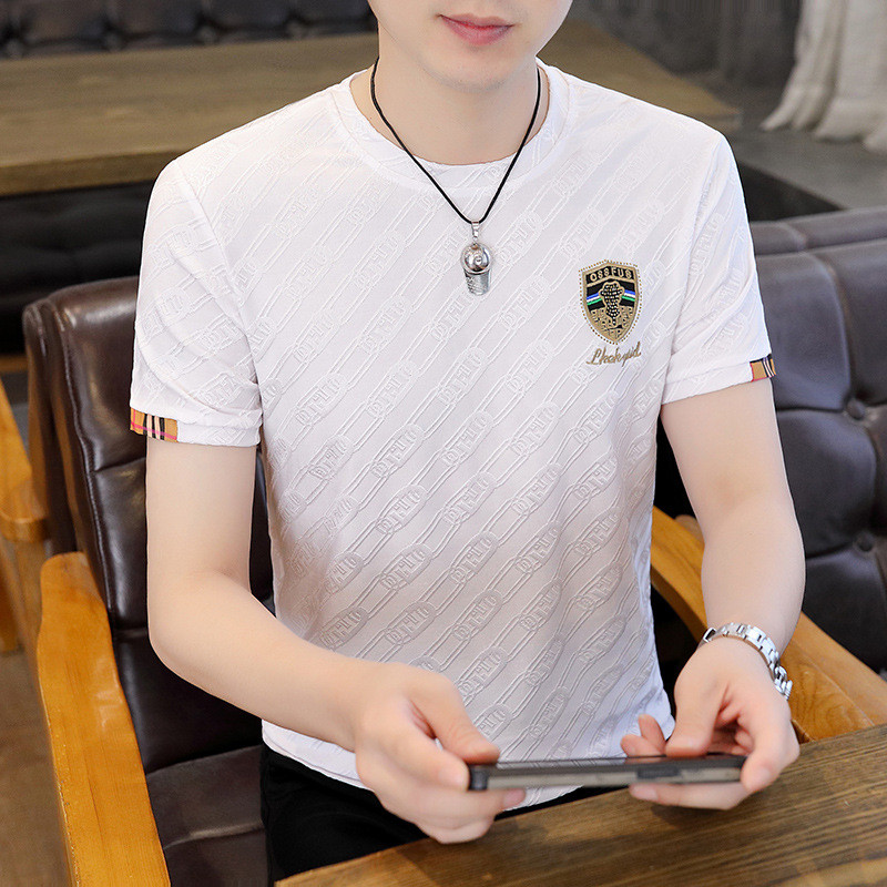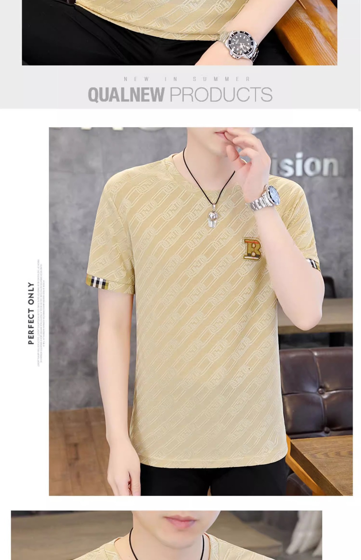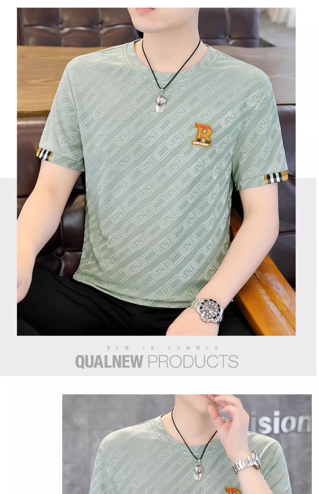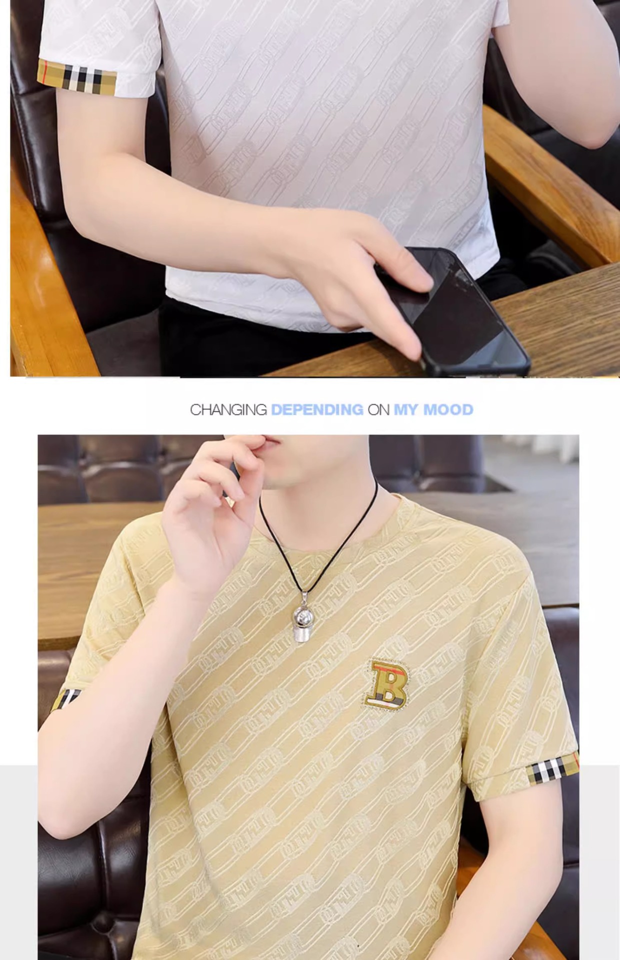 여름 남자 반팔 티셔츠 아이스 실크 얇은 유행 캐주얼 쿨 느낌 티셔츠 2024 새로운 유행 브랜드 남성용 탑스토어 가기