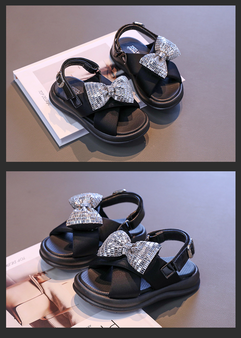 소녀 샌들 트렌디 한 브랜드 스퀸 비치 슈즈 2025 여름 어린이 서양 공주 신발 어린 소녀 크로스 스트랩 샌들
