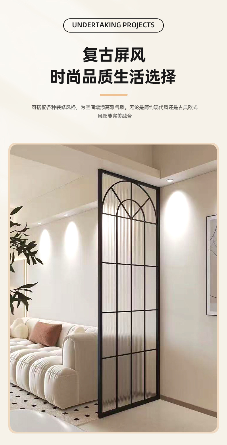 알루미늄 합금 스크린 프랑스 스타일 레트로 홈 스크린 파티션 욕실 건조하고 젖은 분리 입구 반 쉼터