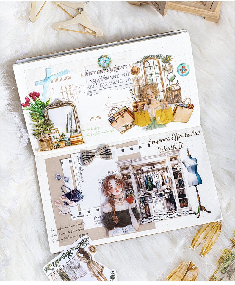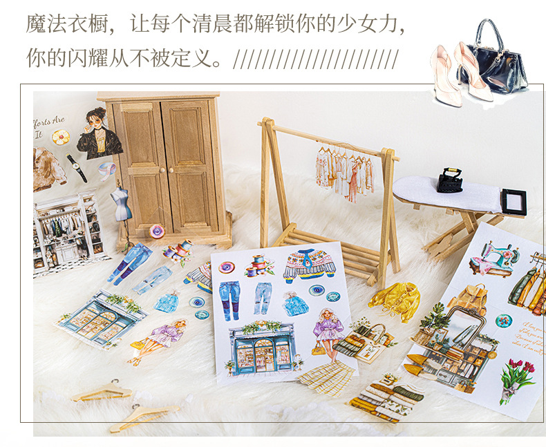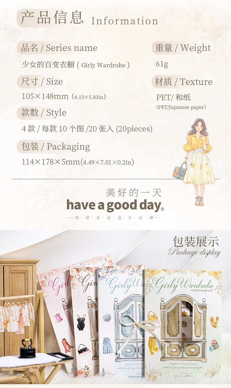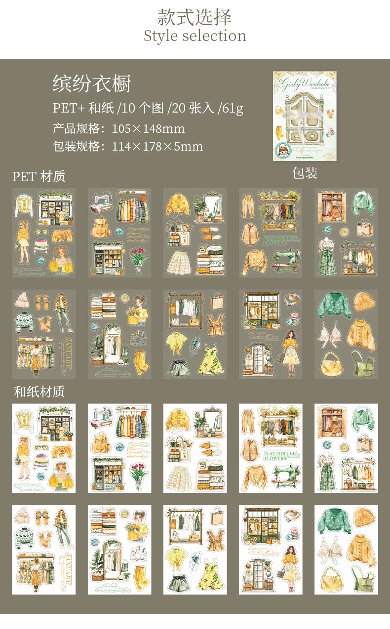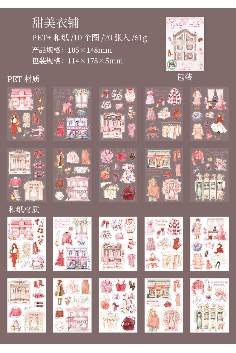 아름다운 날 옷장 테마 더블 소재 스티커 이 소녀의 다양한 옷장 시리즈 4 20스토어 가기