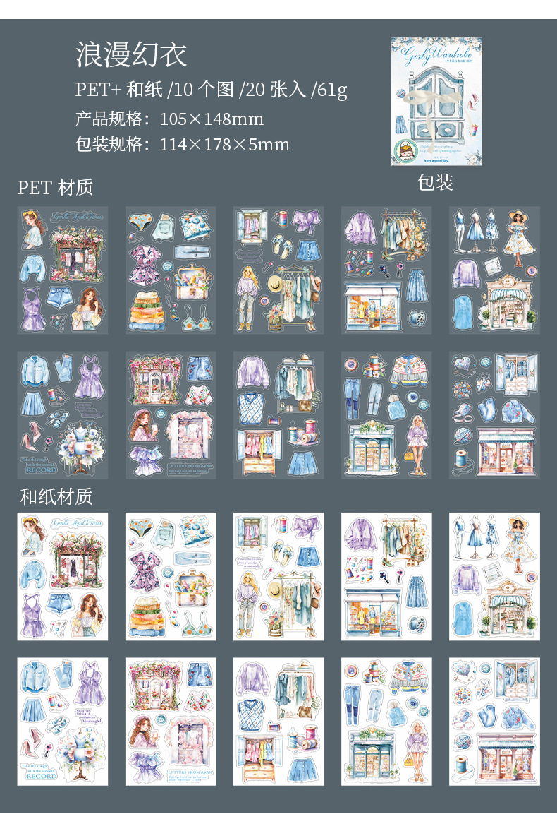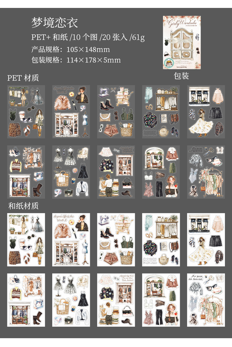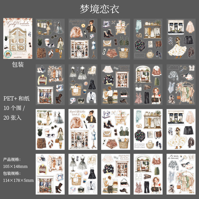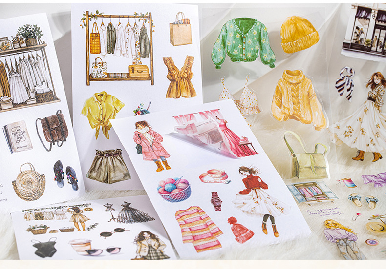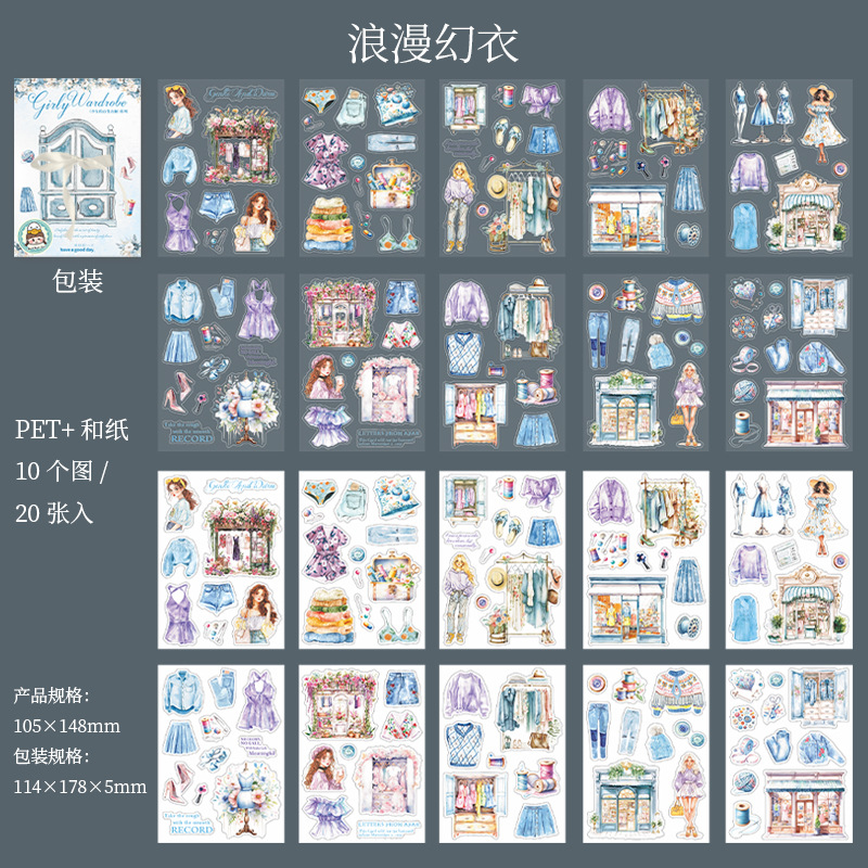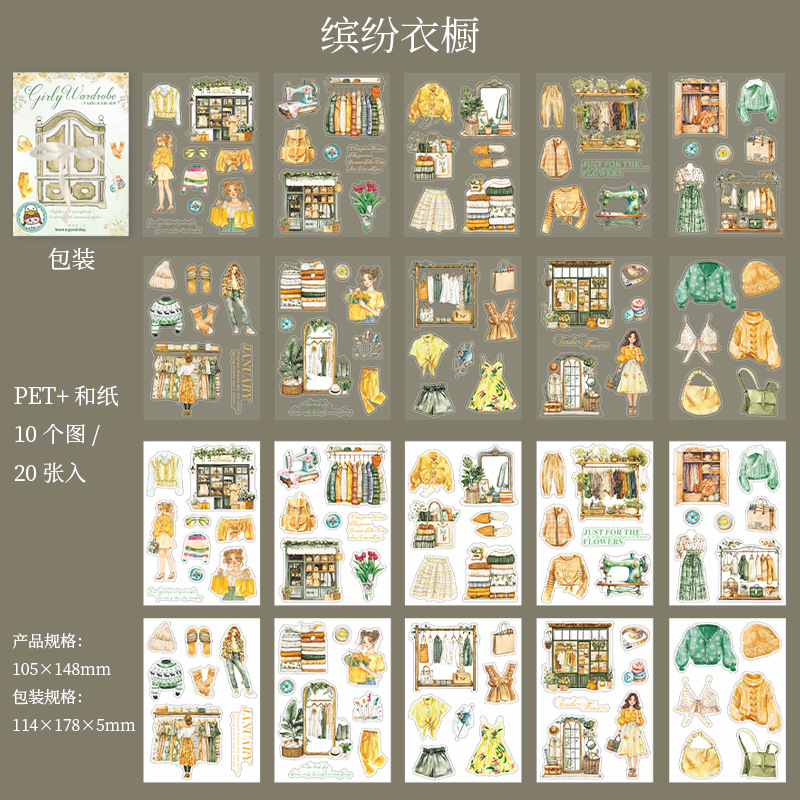 아름다운 날 옷장 테마 더블 소재 스티커 이 소녀의 다양한 옷장 시리즈 4 20