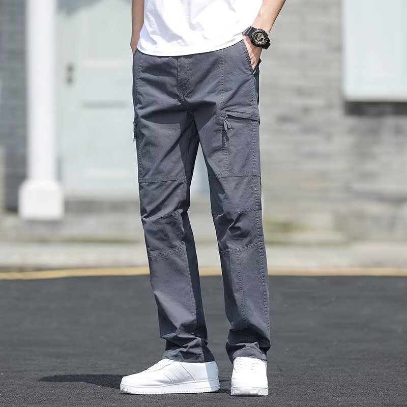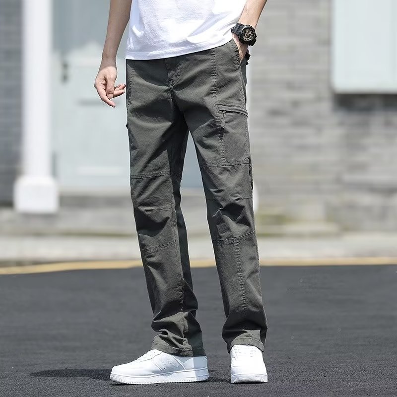 남성용 봄, 가을 작업복 플러스 사이즈 뚱뚱한 남자 루즈한 뚱뚱한 남자 캐주얼 바지 청소년 멀티 포켓 스트레이트 롱 팬츠