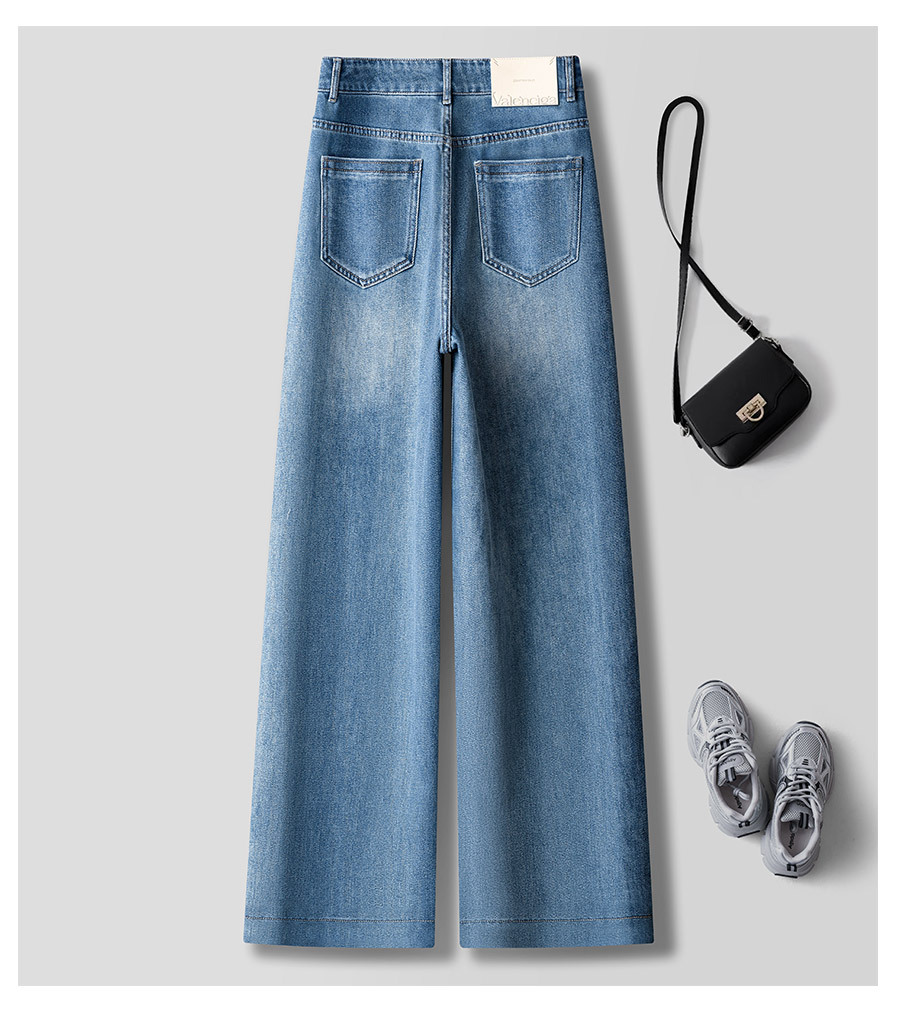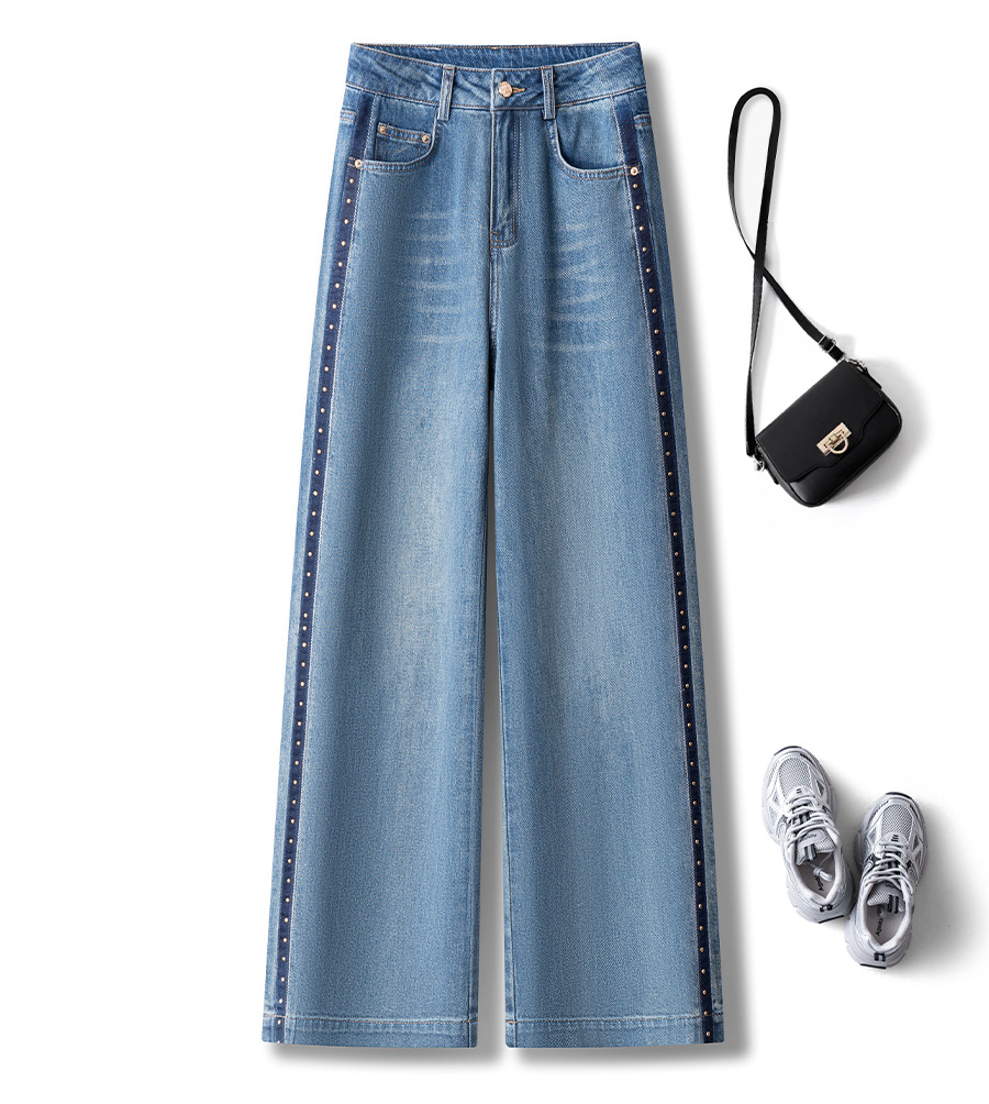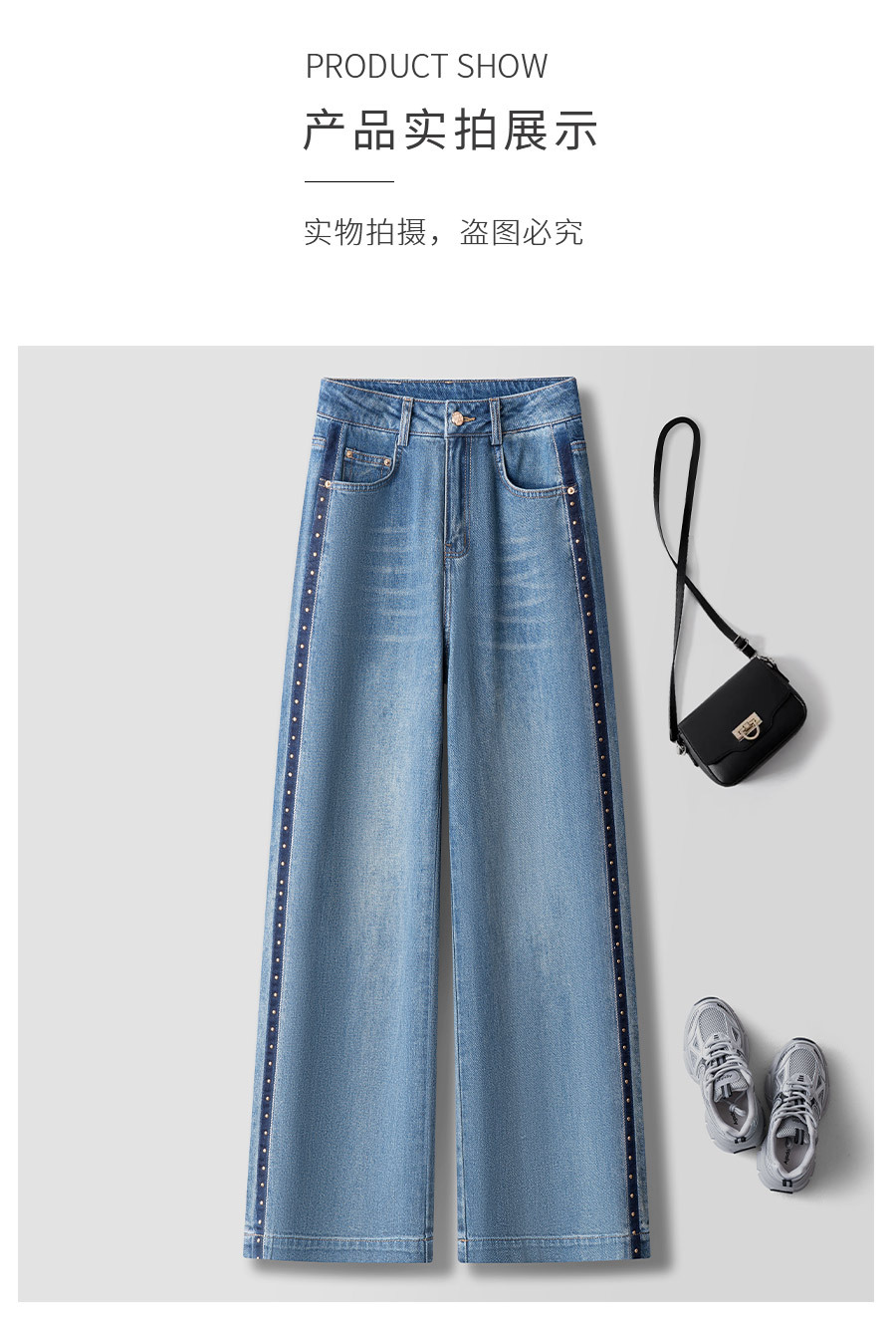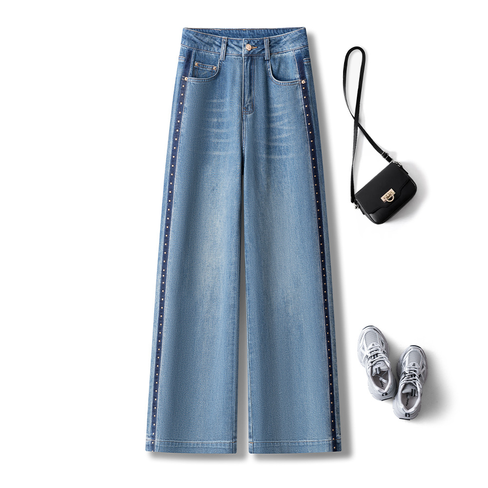 중공업 구슬 넓은 다리 청바지 여성 봄과 여름 2025 새로운 높은 허리 느슨한 스트레이트 바지 올매치 대비 컬러 바지스토어 가기