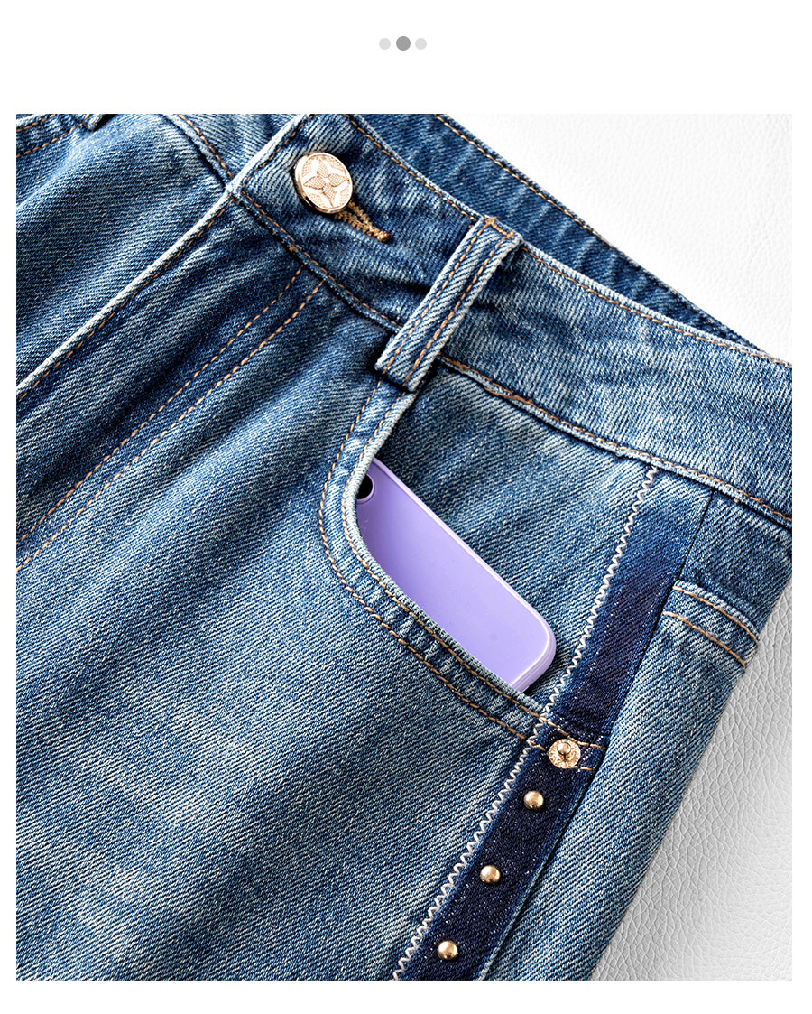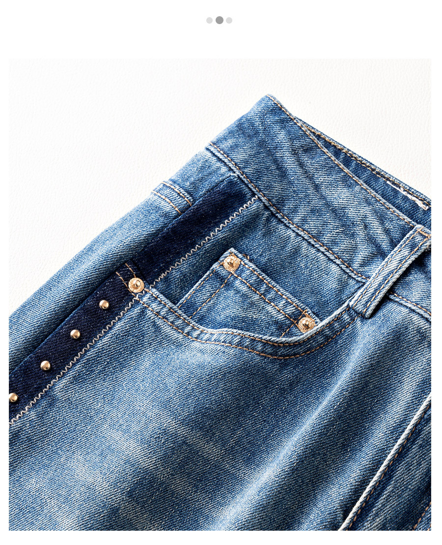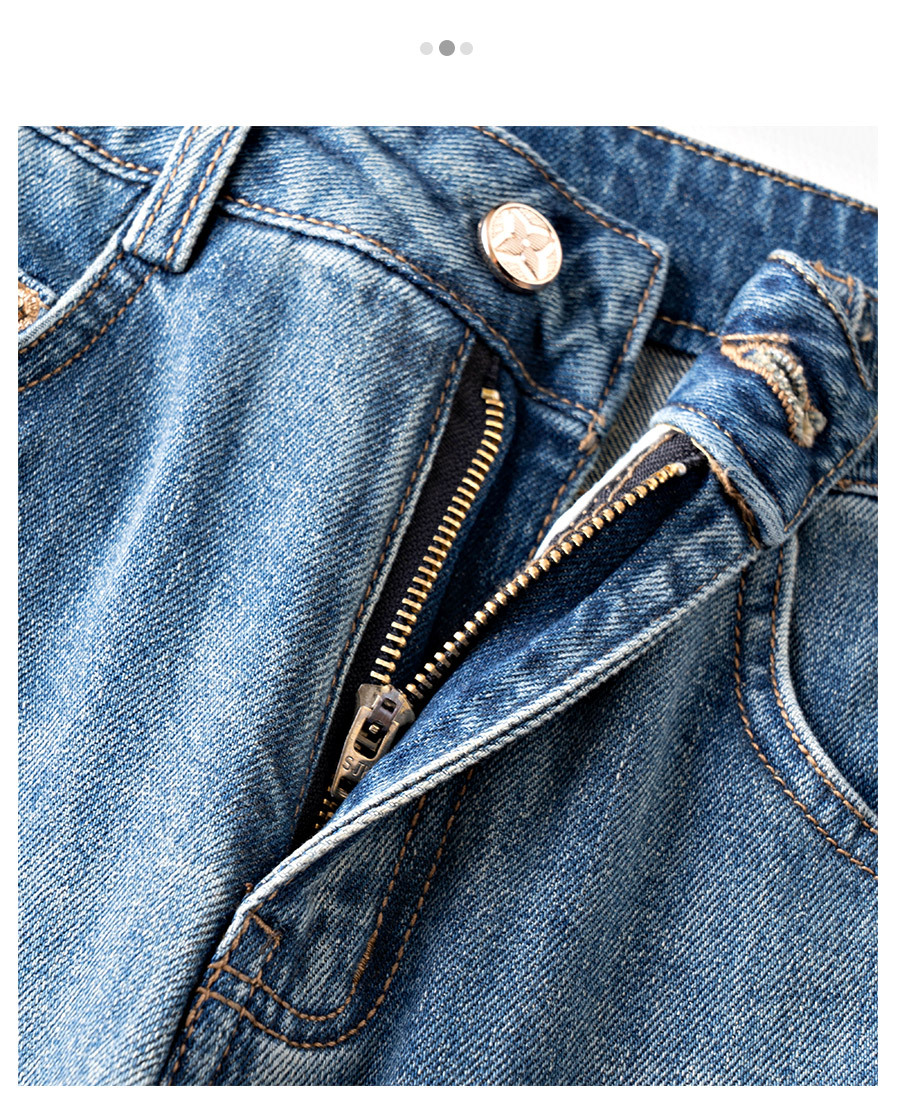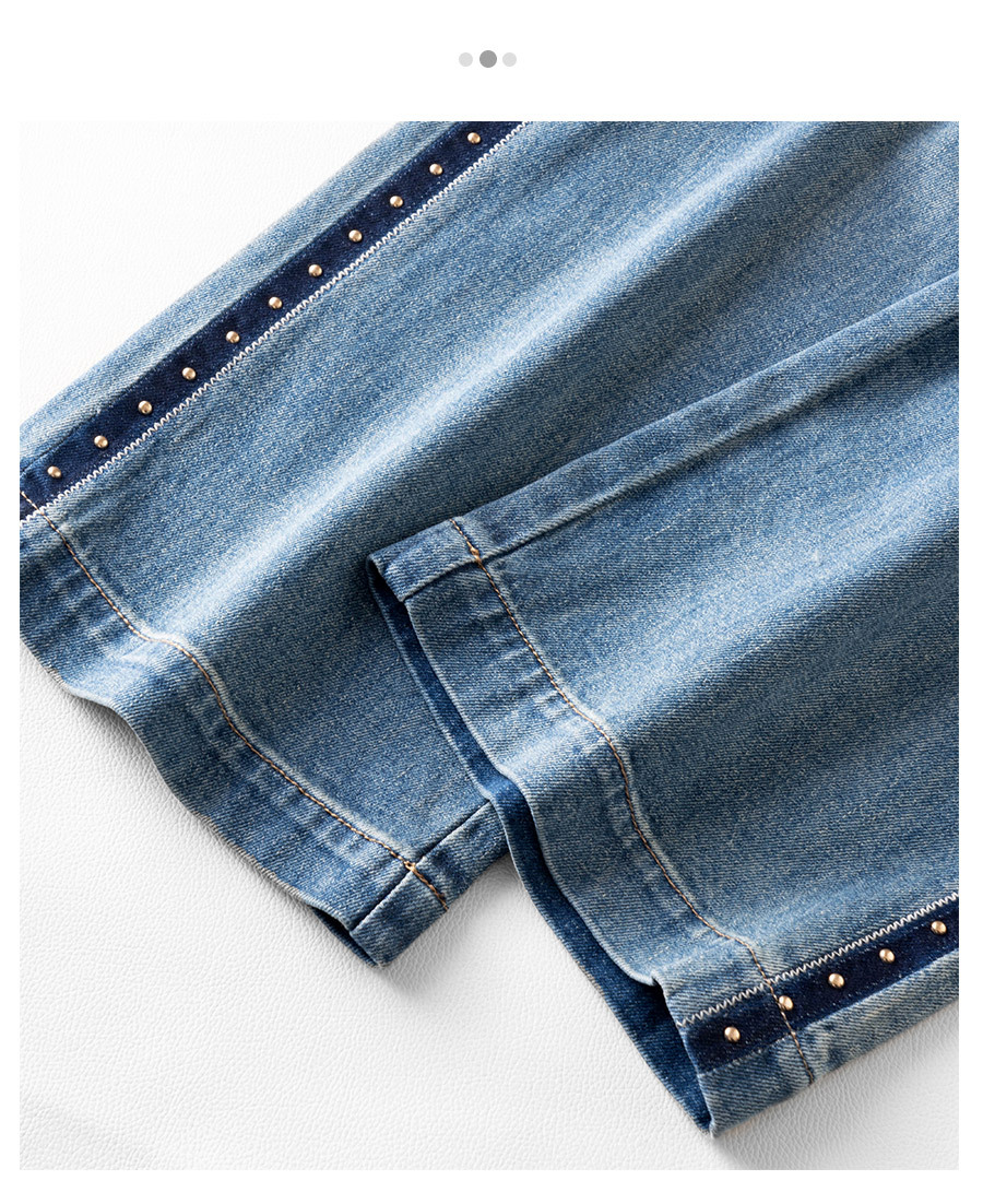 중공업 구슬 넓은 다리 청바지 여성 봄과 여름 2025 새로운 높은 허리 느슨한 스트레이트 바지 올매치 대비 컬러 바지스토어 가기