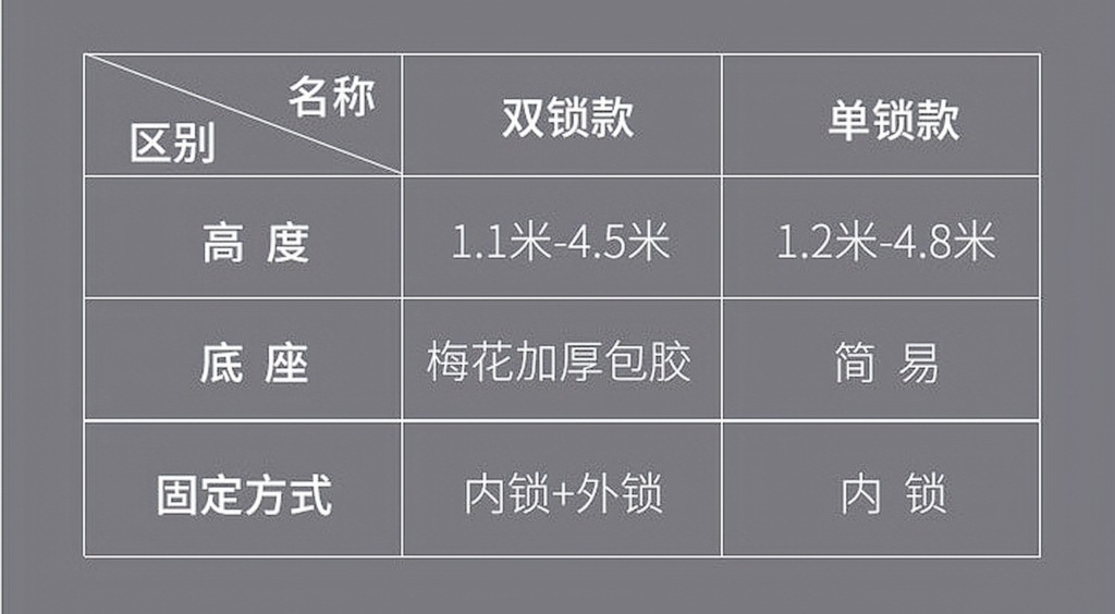 • 3.0m (단일 잠금 모델) + 일반 철제 헤드