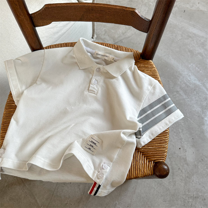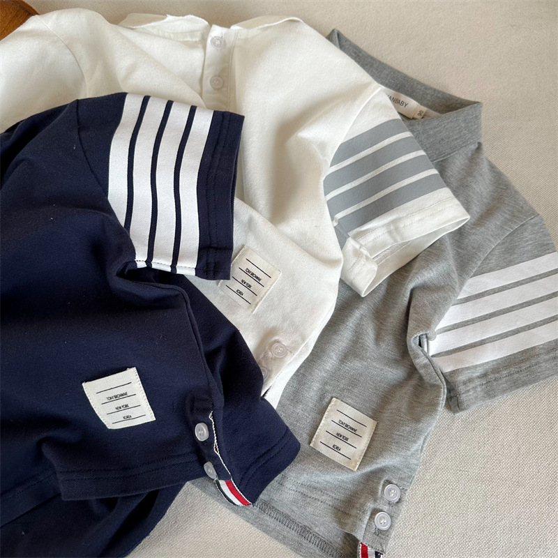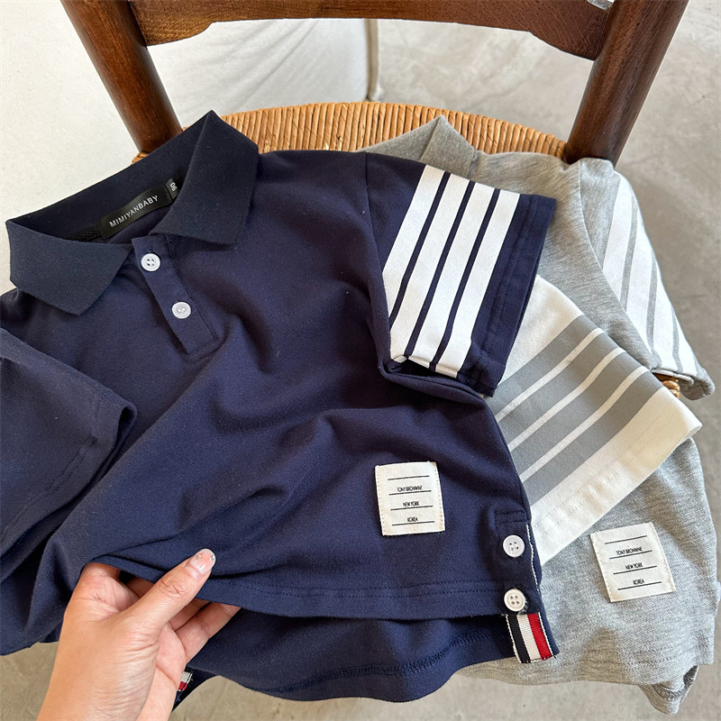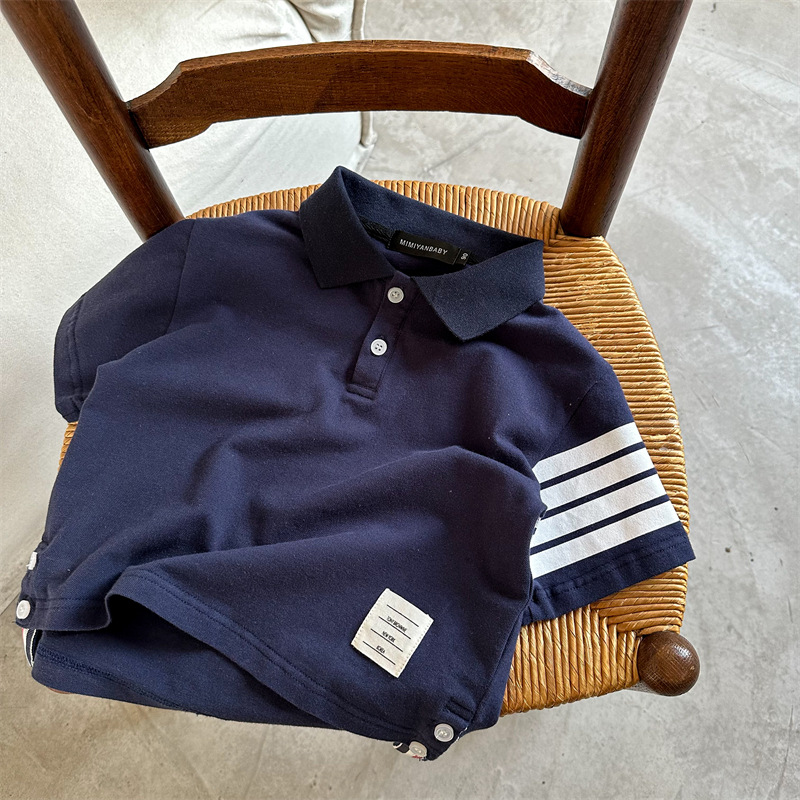 고품질 폴로 셔츠 반팔 2025 여름 소년과 소녀 인쇄 옷깃 티셔츠 아기 반팔 탑 도매 대리점