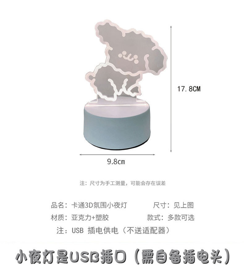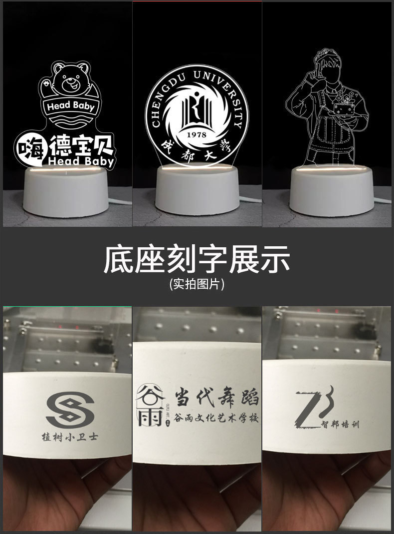 厂家直销 大量现货 需要更多卡通图案请联系旺旺客服 本工厂亚克力创意小台灯支持设计、DIY、来图案做定制、LOGO订做,如需要更多产品图案型号请联系客服,已经做过上万款图案,要的图案都有。