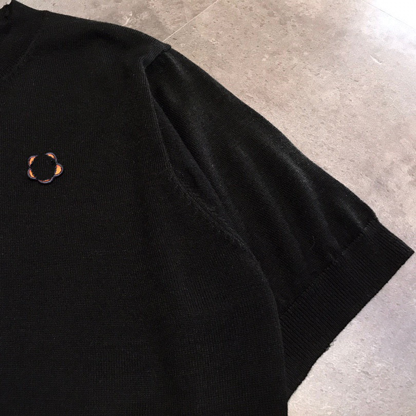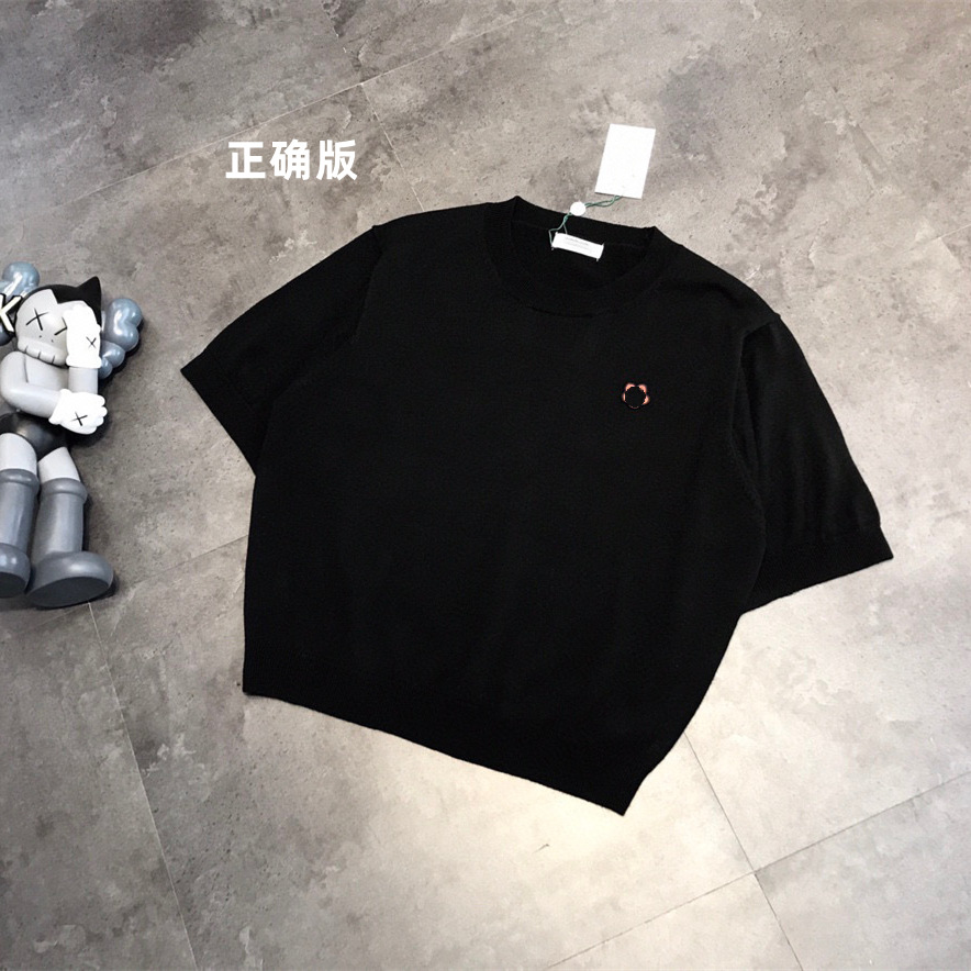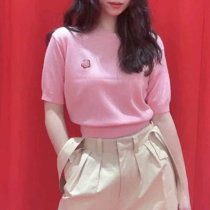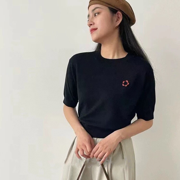 베고니아 꽃 니트 반팔 2025 여름 간단한 둥근 목 티셔츠 클래식 자수 작은 홍화 크로스 보더 헤어스토어 가기