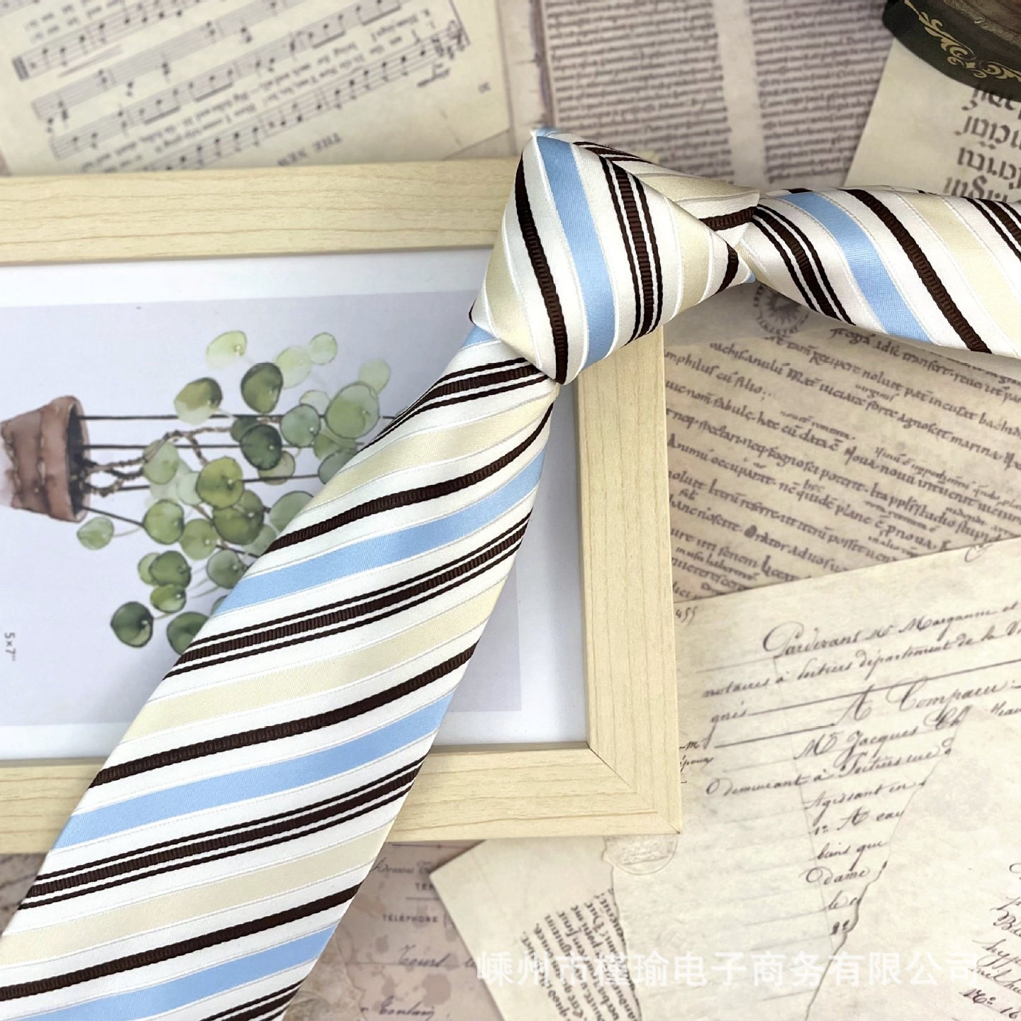 남성과 여성을 위한 복고풍 갈색 진한 파란색 줄무늬 넥타이 8CM 공식적인 전문 비즈니스 캐주얼 다목적 한국식 작업복 녹색스토어 가기
