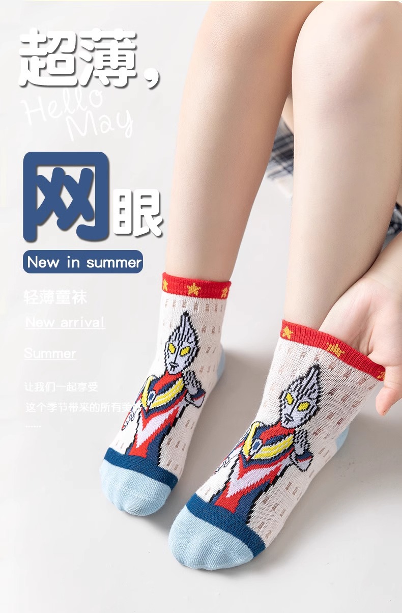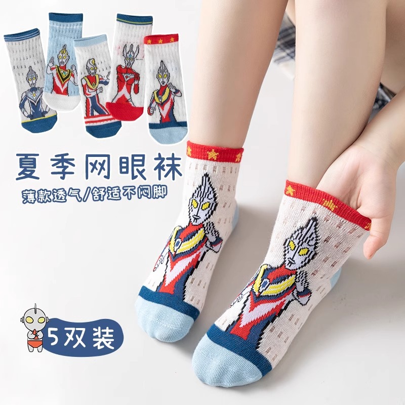 어린이 양말 여름 초박형 소년 울트라 맨 아이스 실크 만화 소년 스파이더 맨 아기 여름 카스 보트 양말