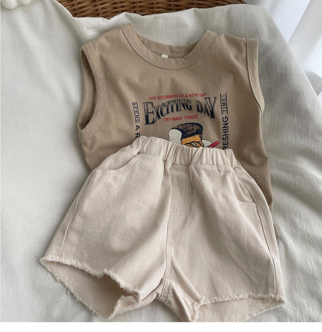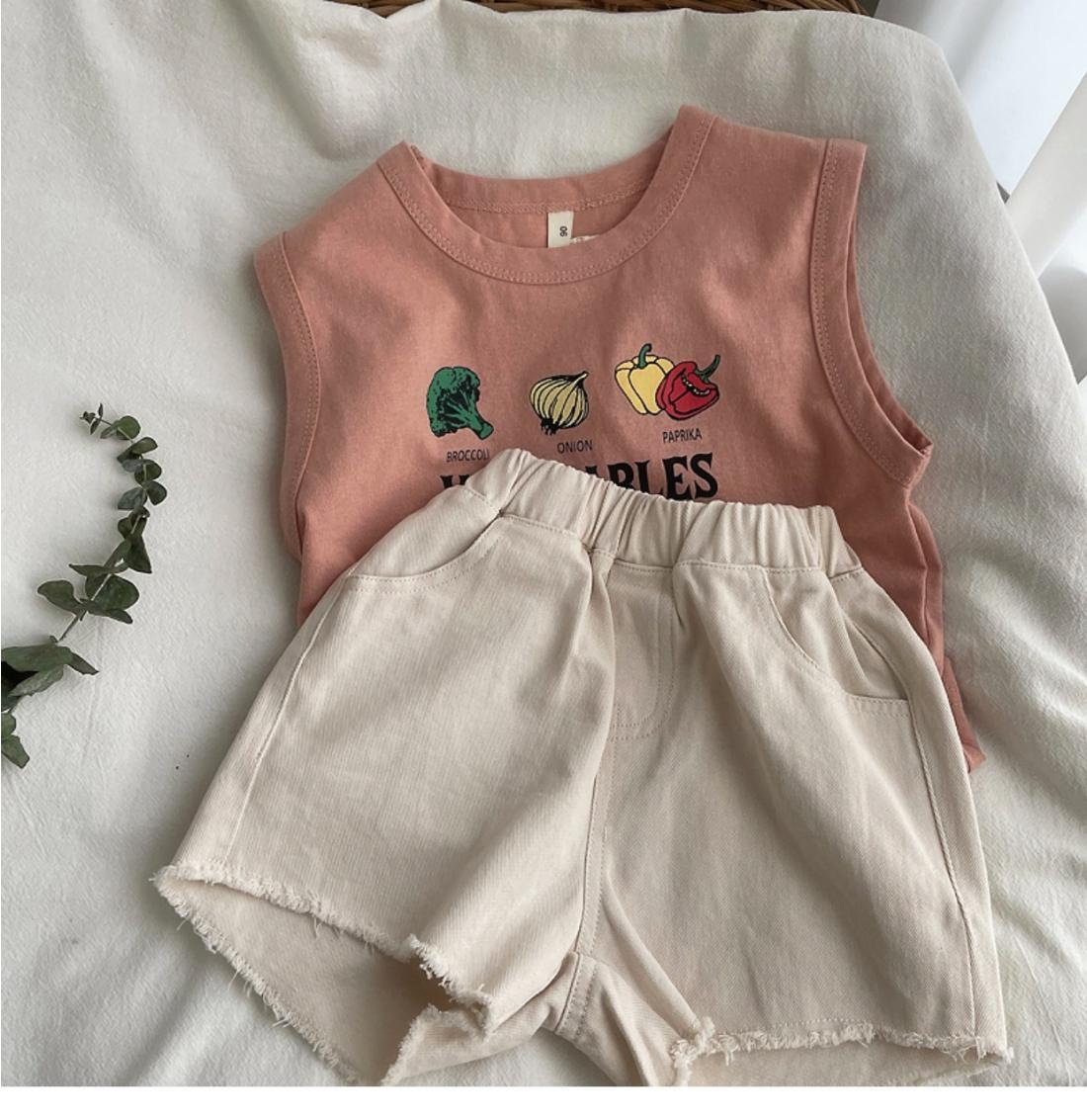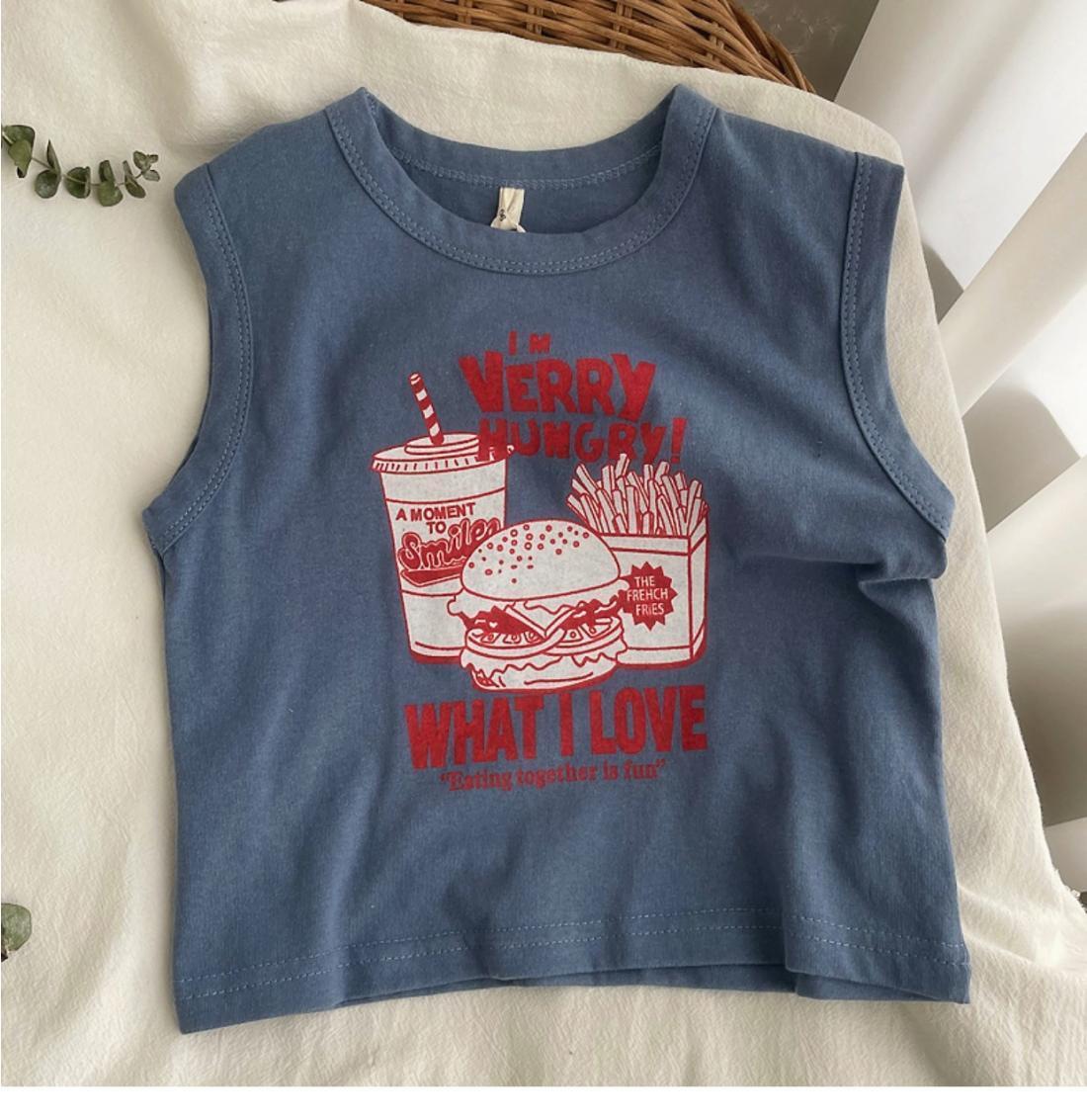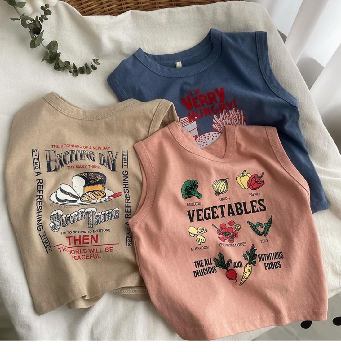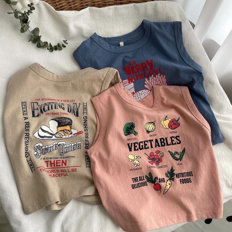 소년 소녀 여름 조끼 아기의 서양식 어린이 성격 유행 브랜드 대외 무역 INS 편지 인쇄 민소매 티셔츠 탑스토어 가기