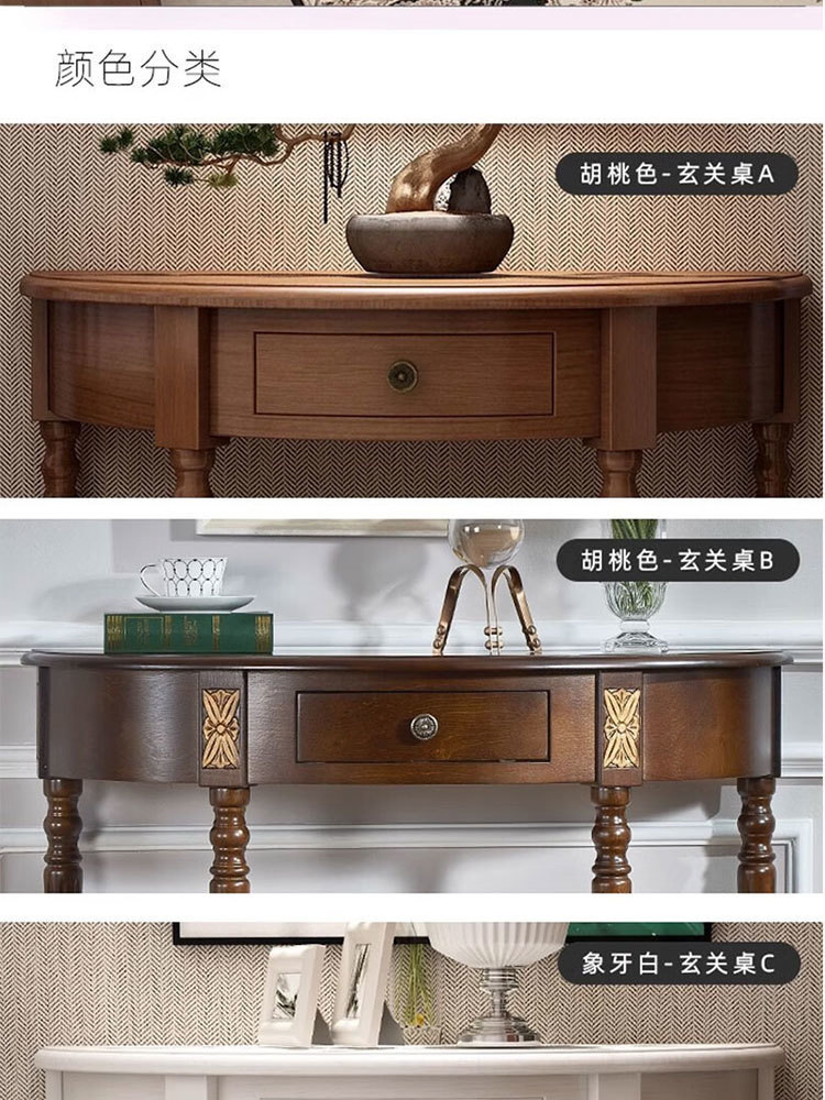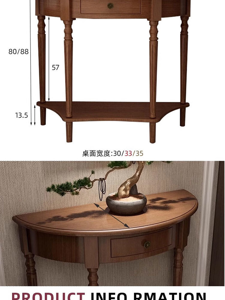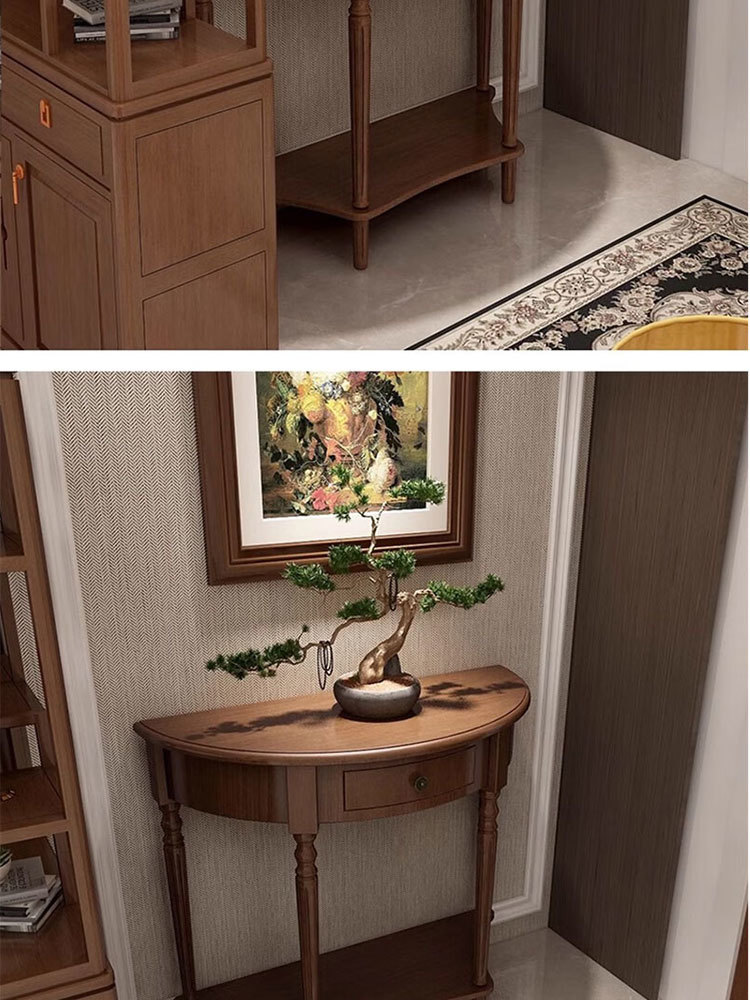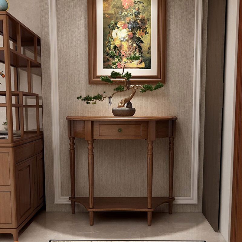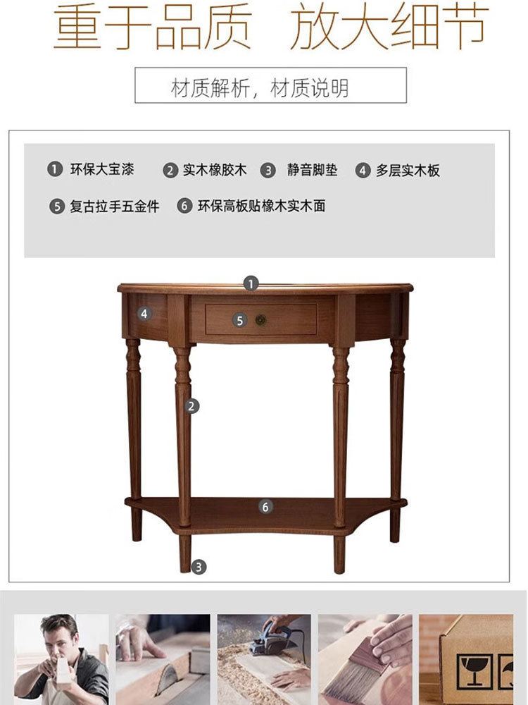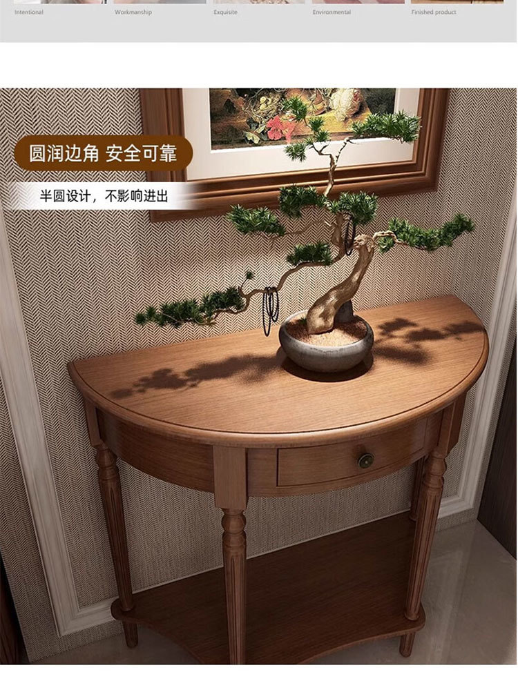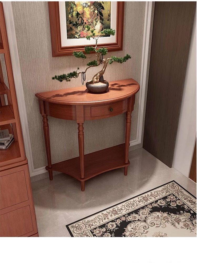 미국식 반원형 콘솔 테이블, 원목 복도 콘솔 테이블, 거실 장식 캐비닛, 현관 좁은 콘솔 테이블, 벽걸이형 수납 테이블