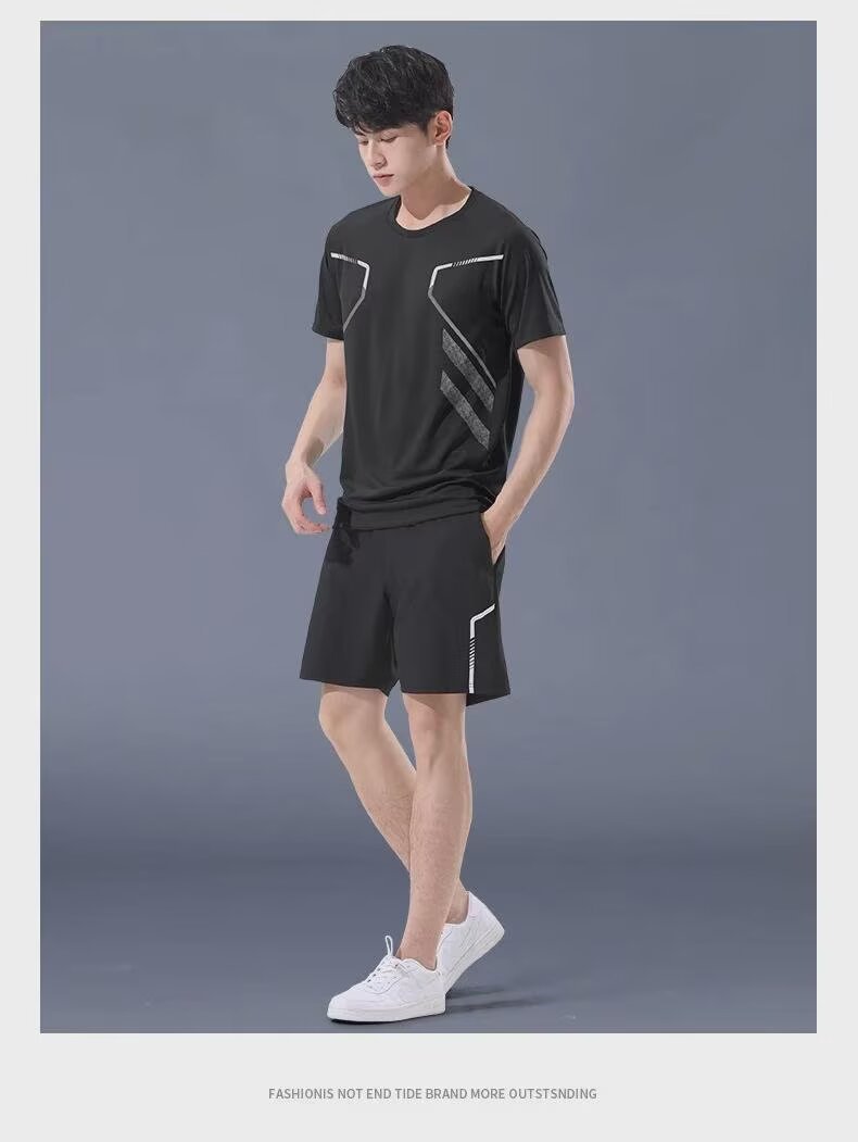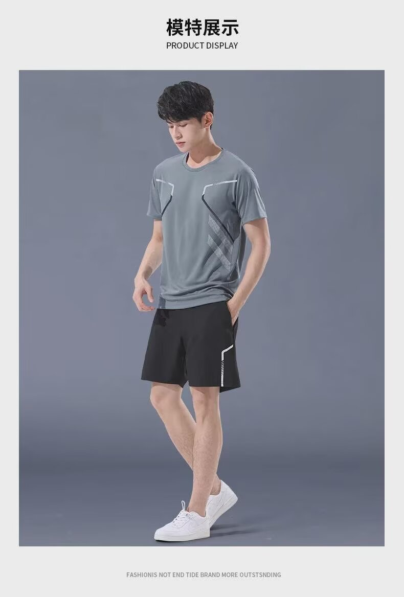[세트] 운동복 정장 남성 여름 반팔 티셔츠 농구 저지 캐주얼 반바지 투피스 한국 스타일 트렌드