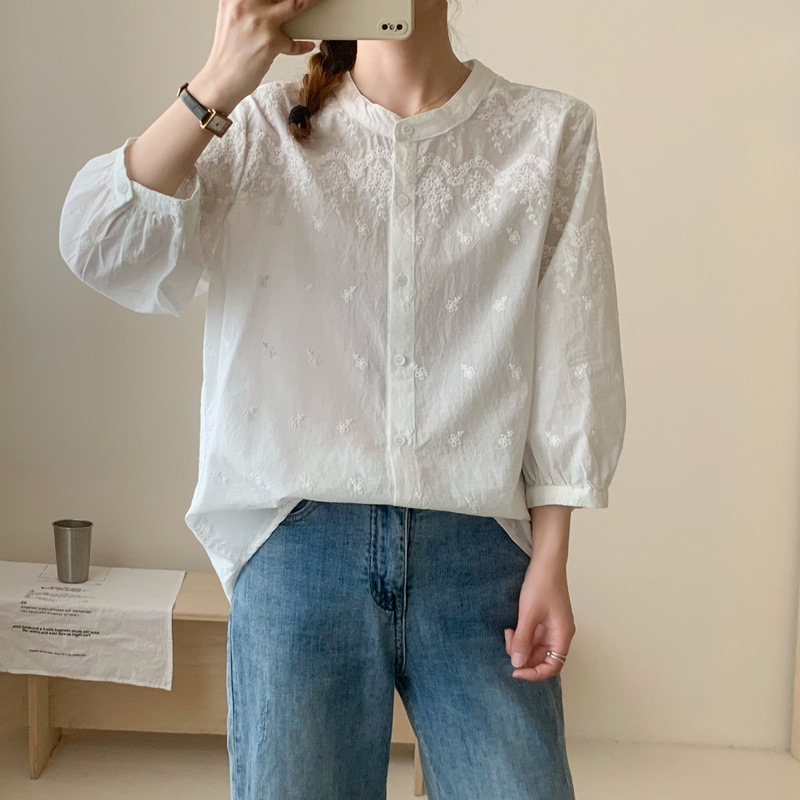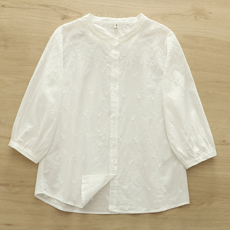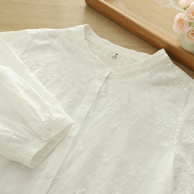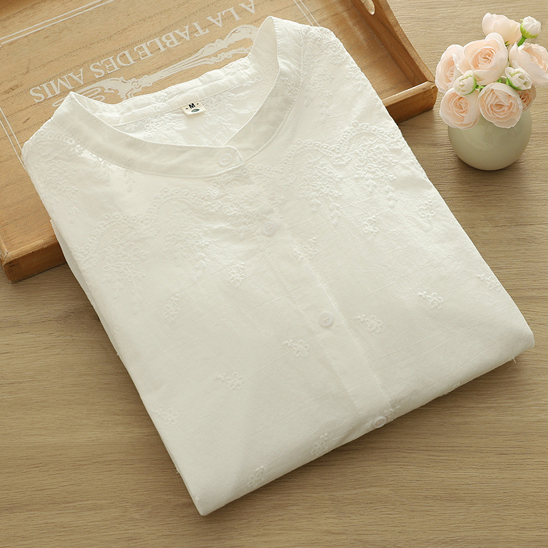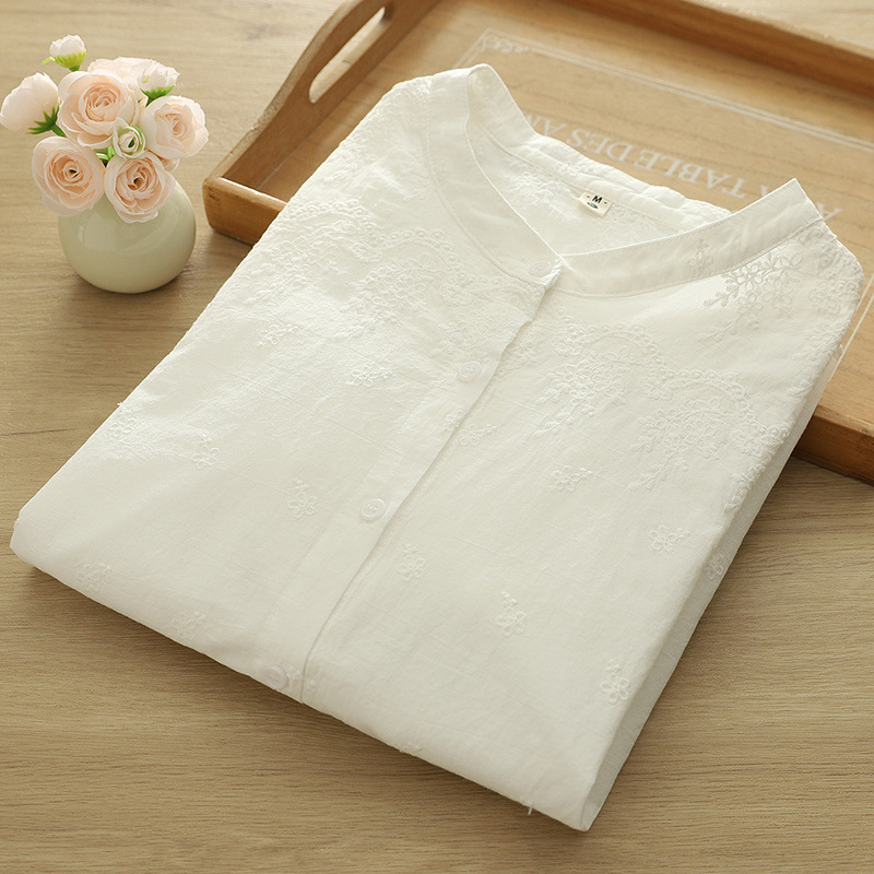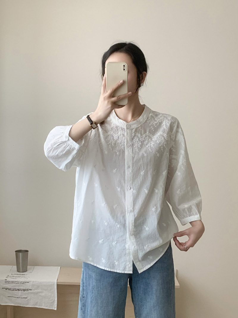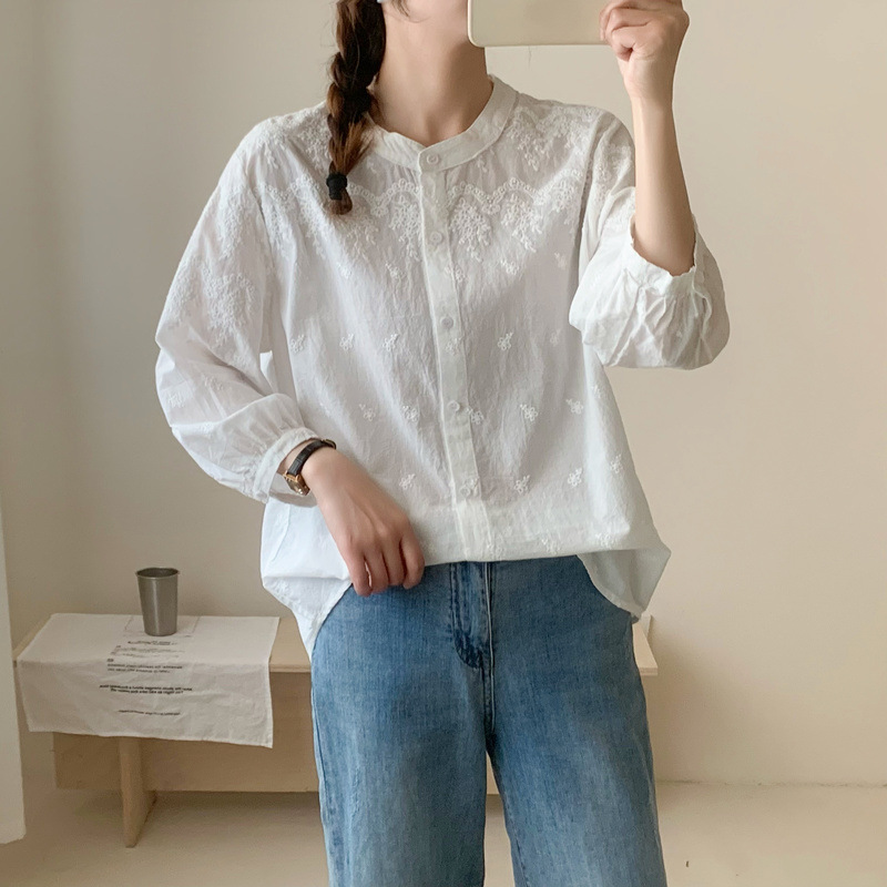 일본 모리 여성 중공업 자수 단색 느슨한 숙녀 카디건 소매 셔츠 도매 조수스토어 가기