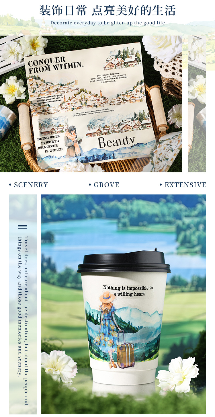 Yuezhen 소프트 아일랜드 조경 테이프 손 계정 테이프 국경 간 풍경 스티커 테이프 애완 동물 장식 손 계정 테이프