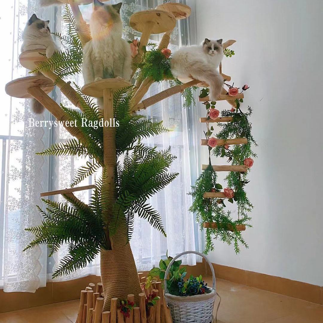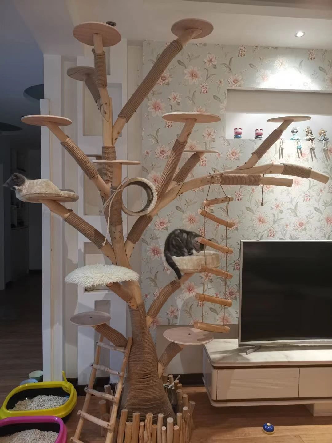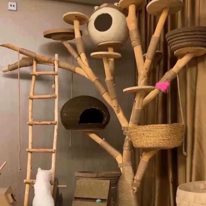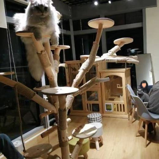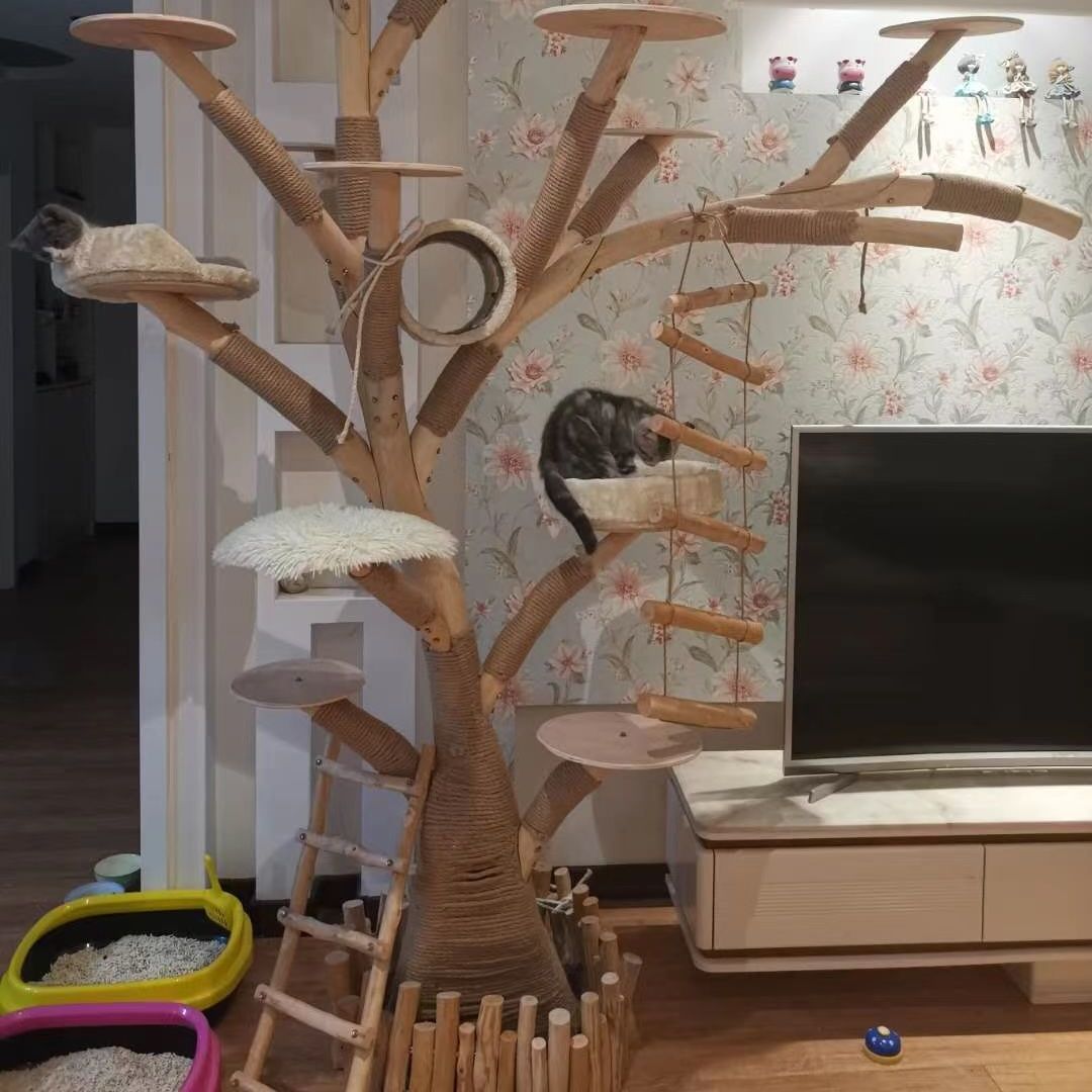 끈적 끈적한 머리 고양이 랙 단단한 나무 고양이 등반 나무 등반 큰 DIY 내구성 풀 세트 고양이 등반 랙 액세서리 강한 럭셔리스토어 가기