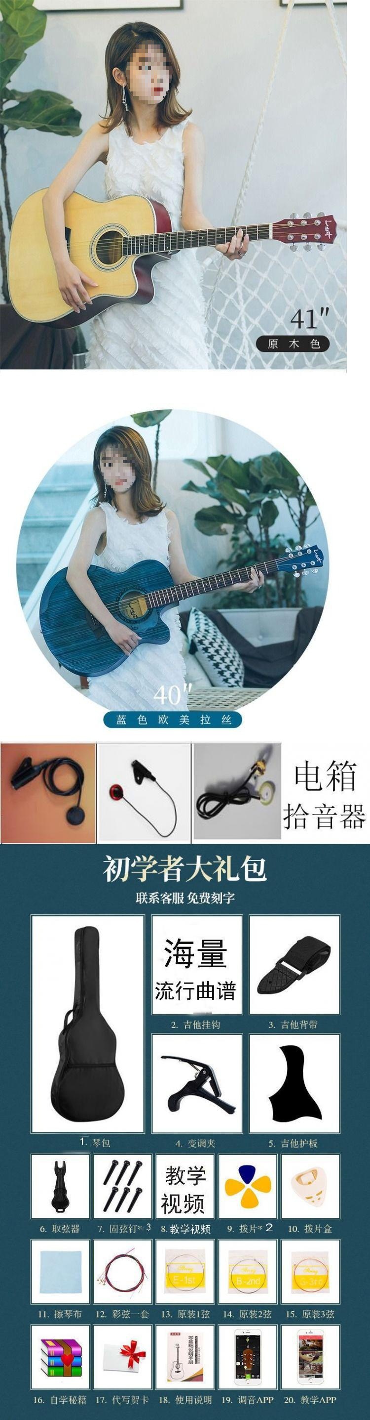 초보자를 위한 어쿠스틱 기타 38inch 41inch 남성과 여성 학생을 위한 민속 베니어 초보자 초급 연습 성인 기타 악기스토어 가기