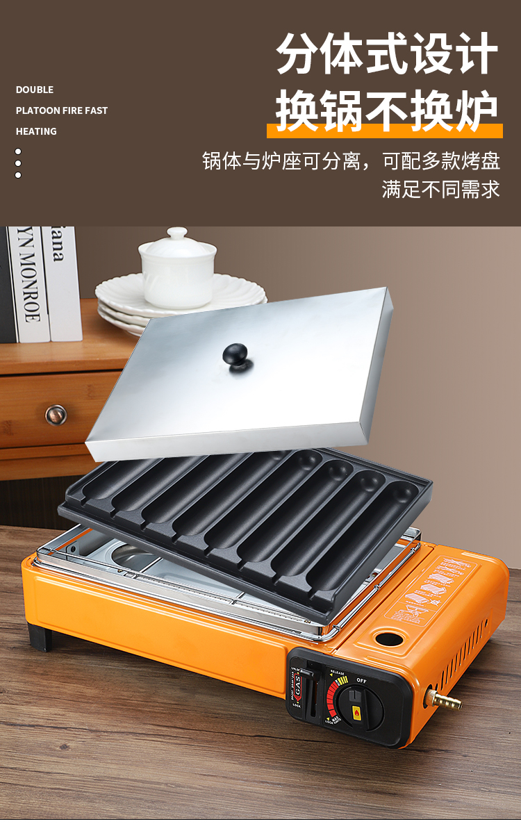 • 8개의 소시지 몰드가 포함된 이중 가스 카세트 스토브