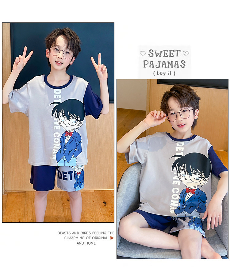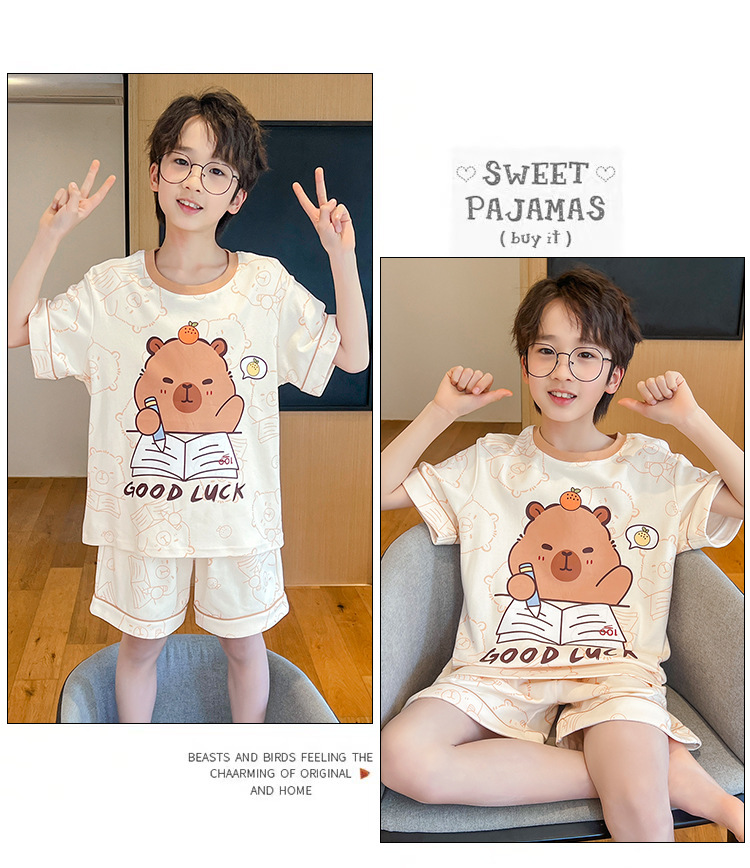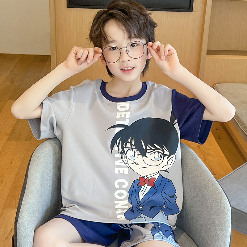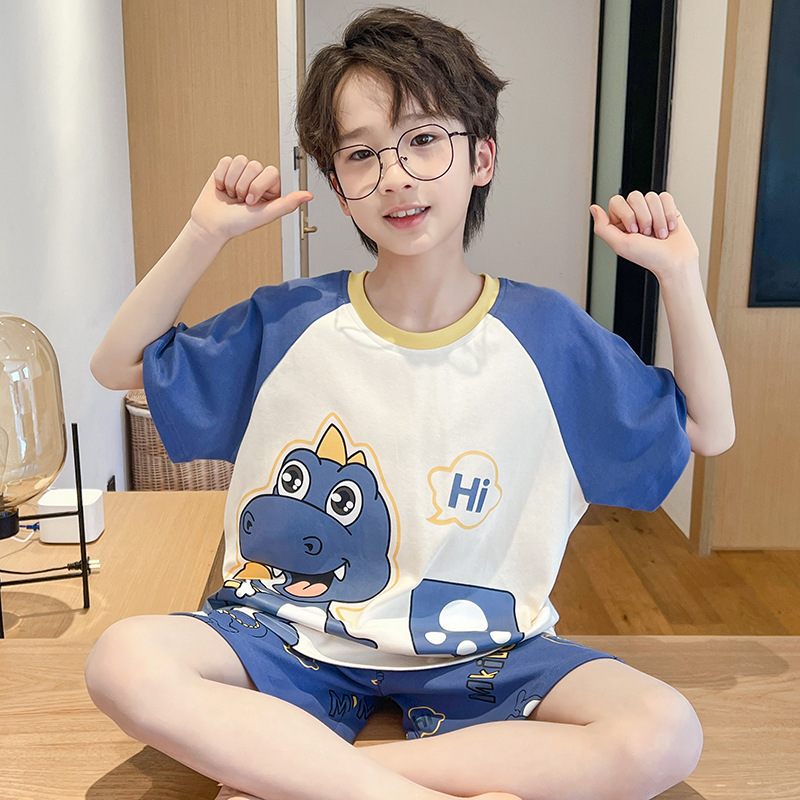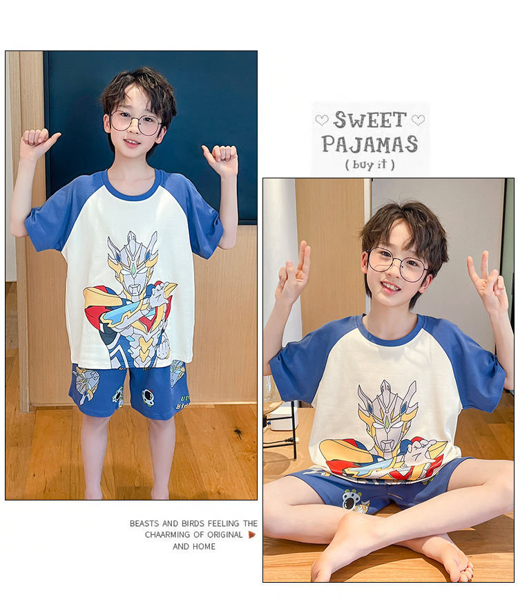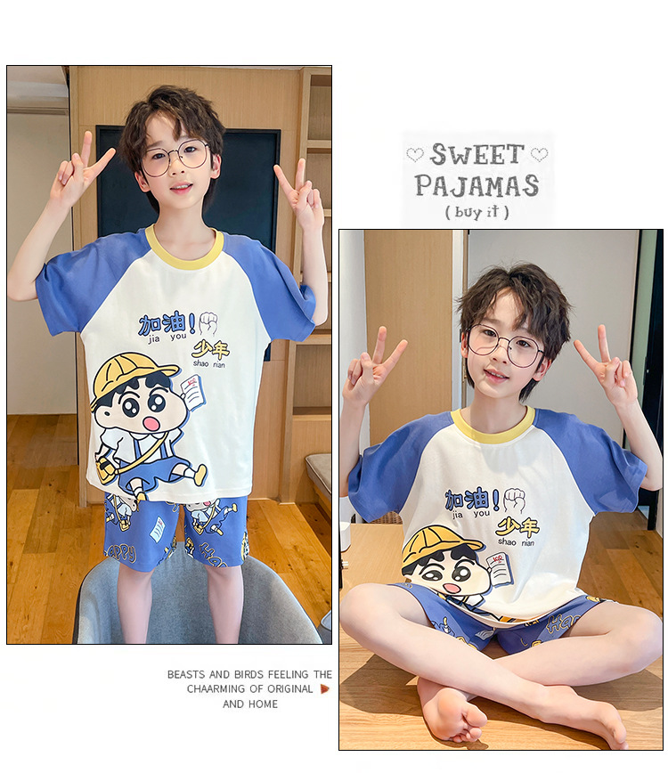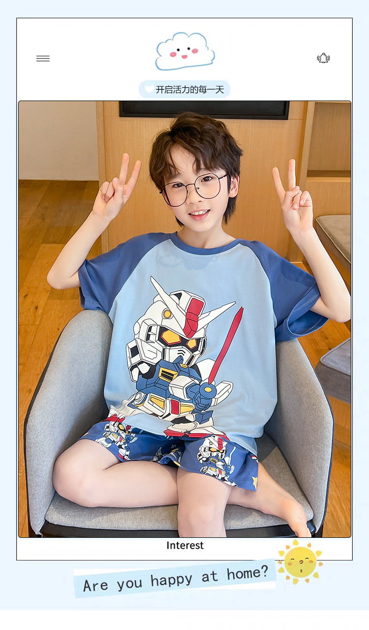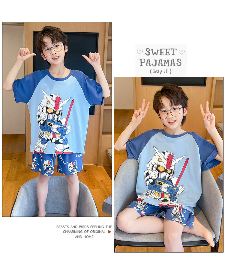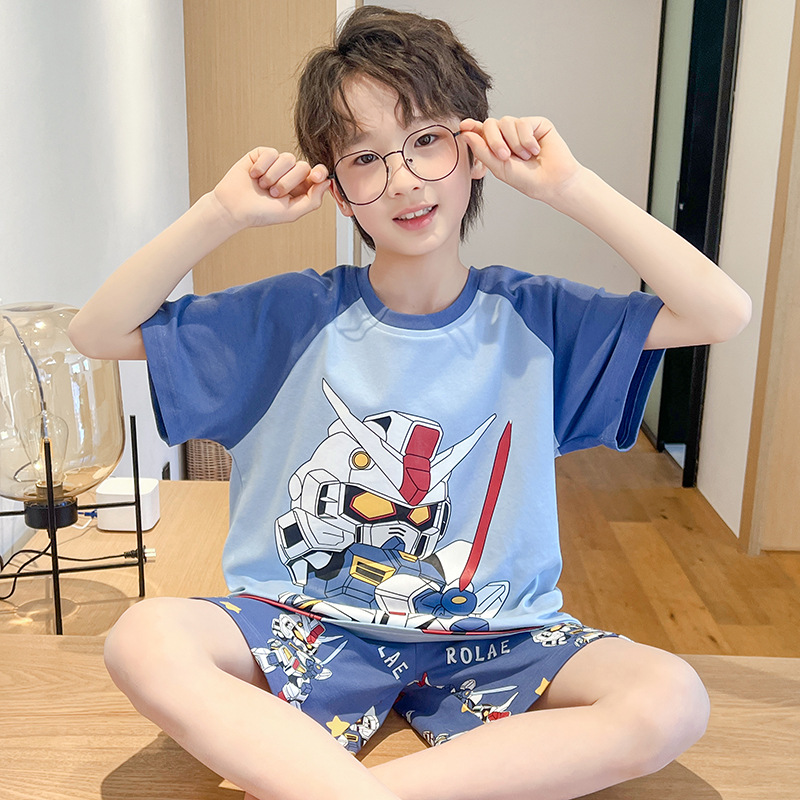 소년 잠옷 여름 얇은 반팔 2025 새로운 여름 어린이 소년 만화 큰 어린이 가정 의류 세트