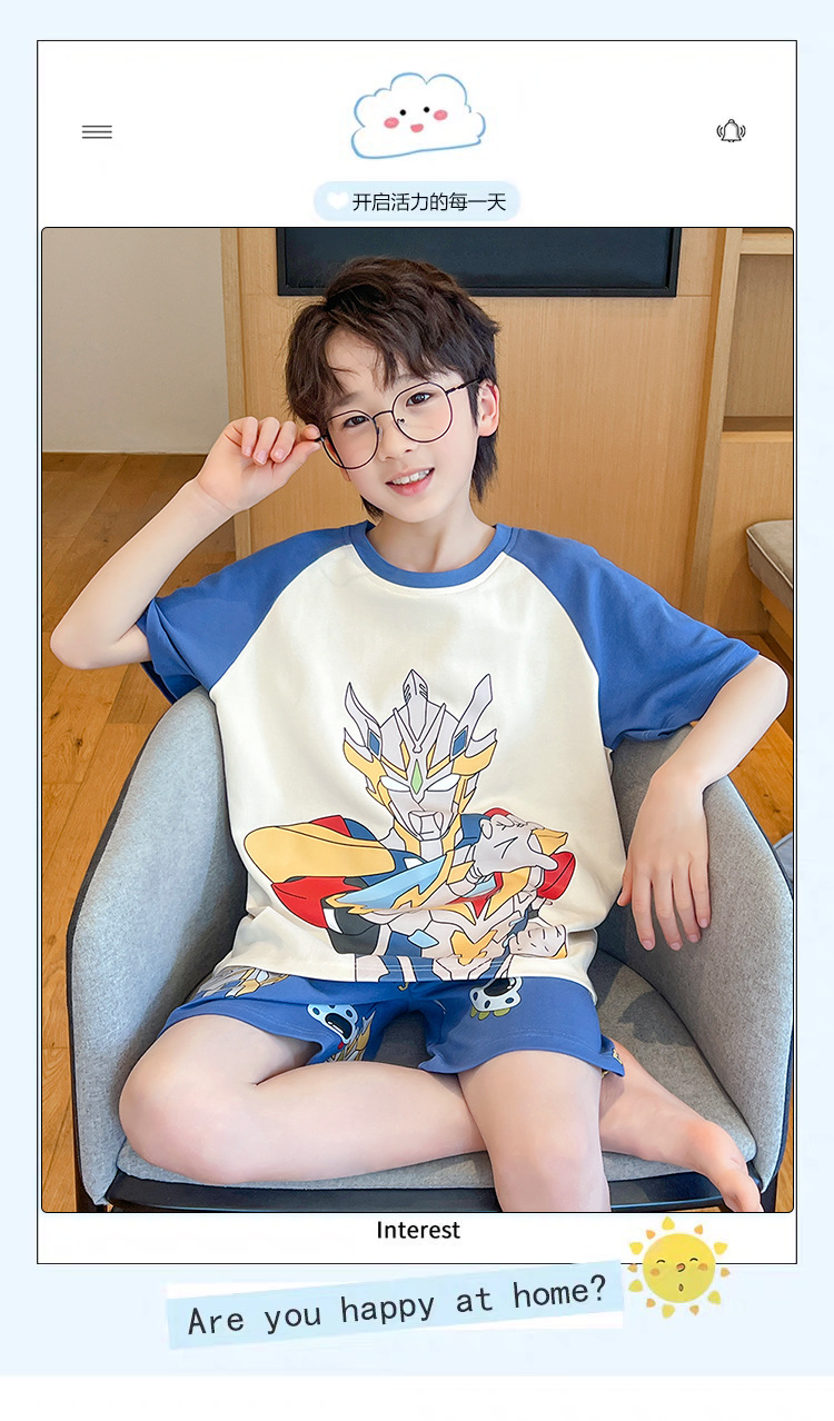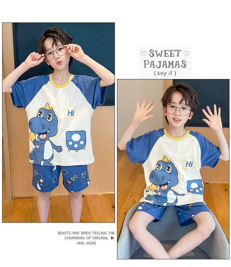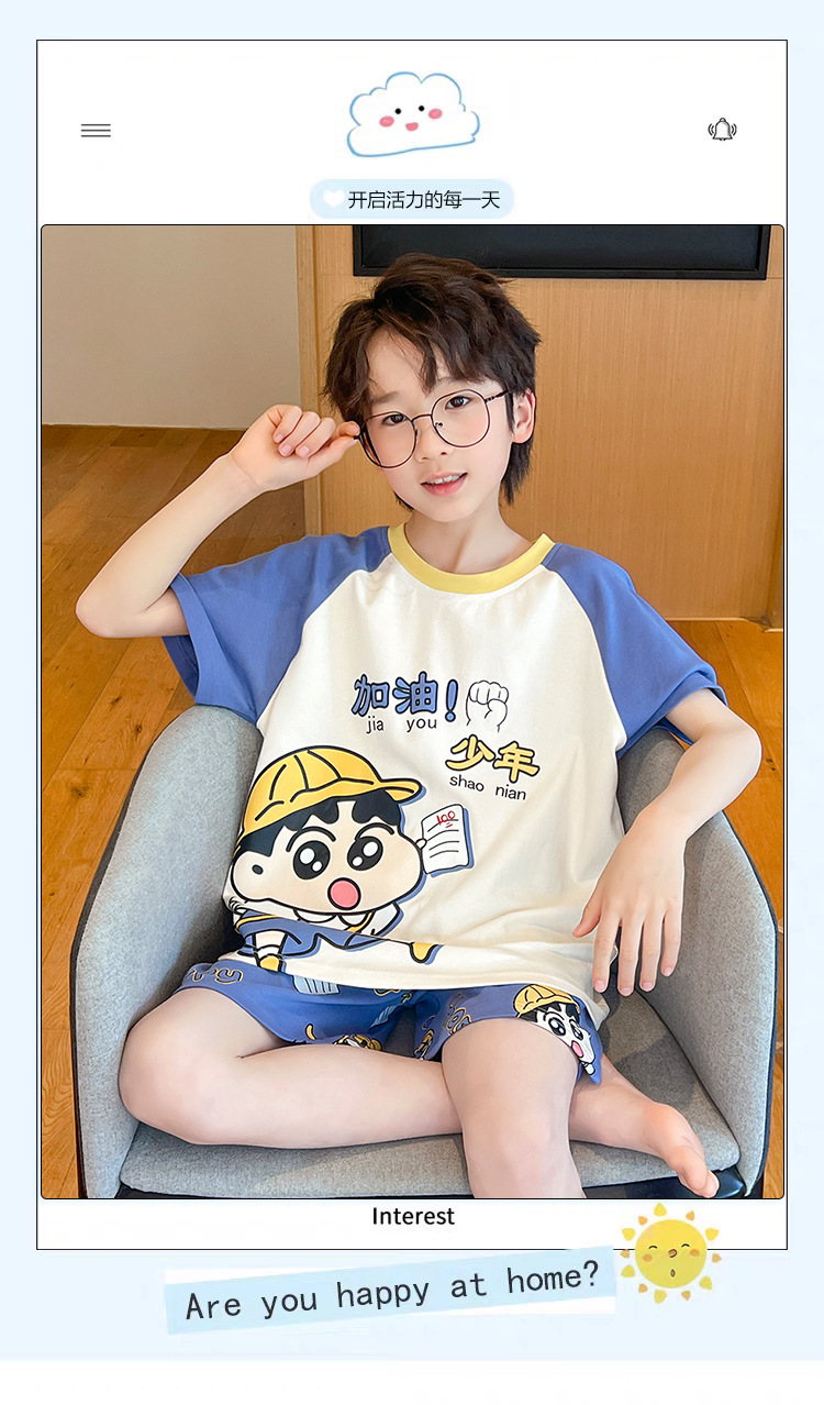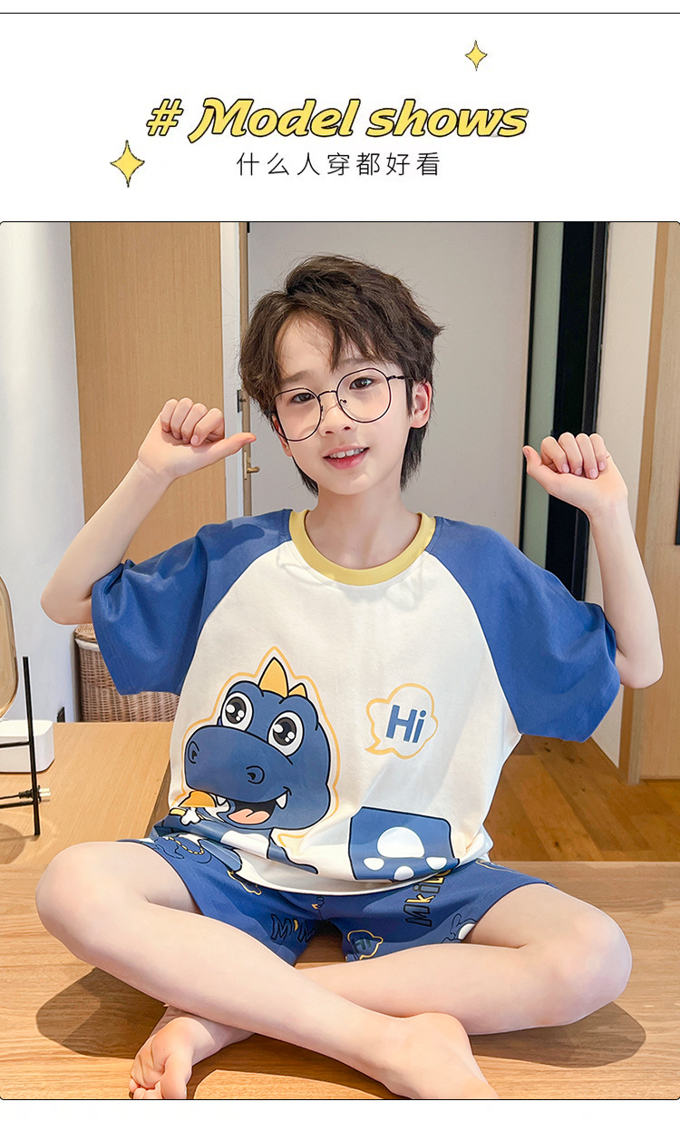 소년 잠옷 여름 얇은 반팔 2025 새로운 여름 어린이 소년 만화 큰 어린이 가정 의류 세트스토어 가기