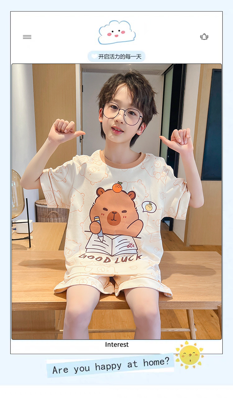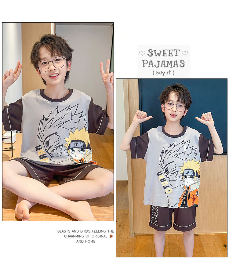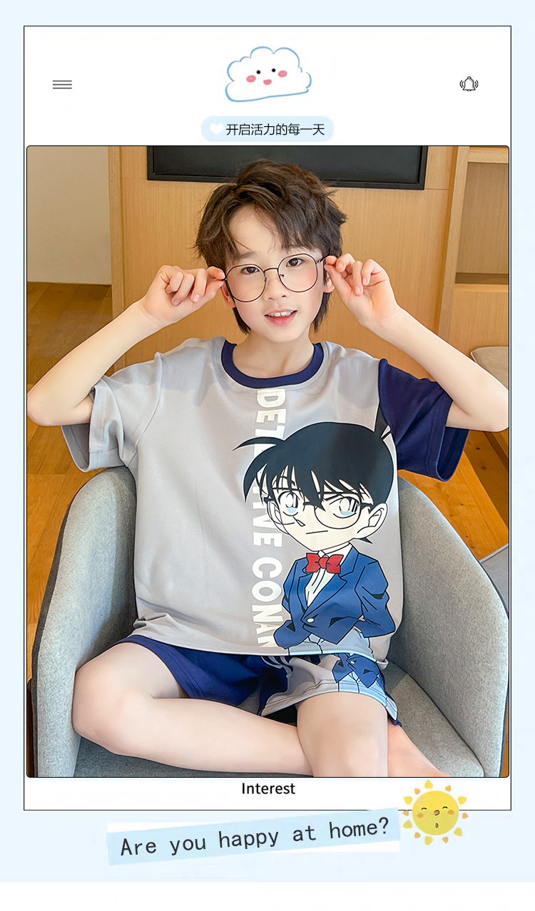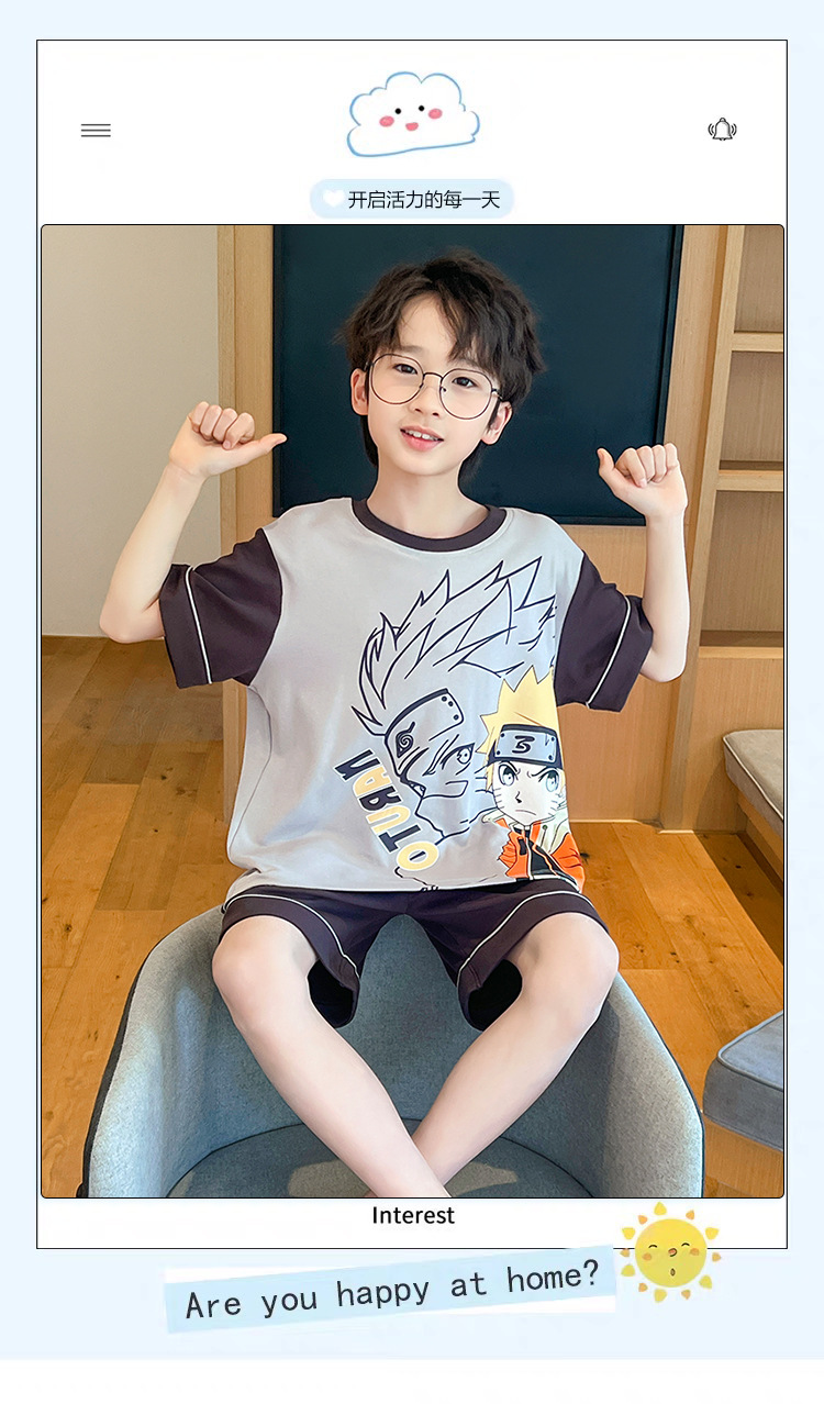 소년 잠옷 여름 얇은 반팔 2025 새로운 여름 어린이 소년 만화 큰 어린이 가정 의류 세트스토어 가기