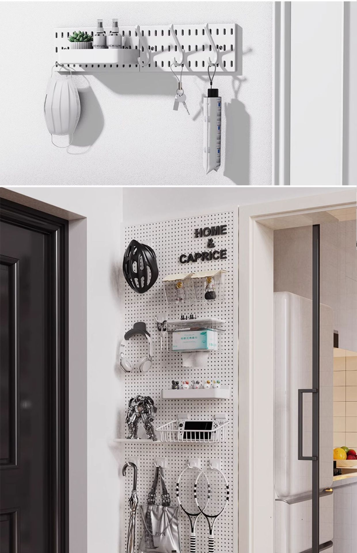 범용 홀 보드 액세서리, 못 없음, 구멍 없음, 바구니 걸이 후크, 그리드 벽걸이형 선반 부품 보관함스토어 가기
