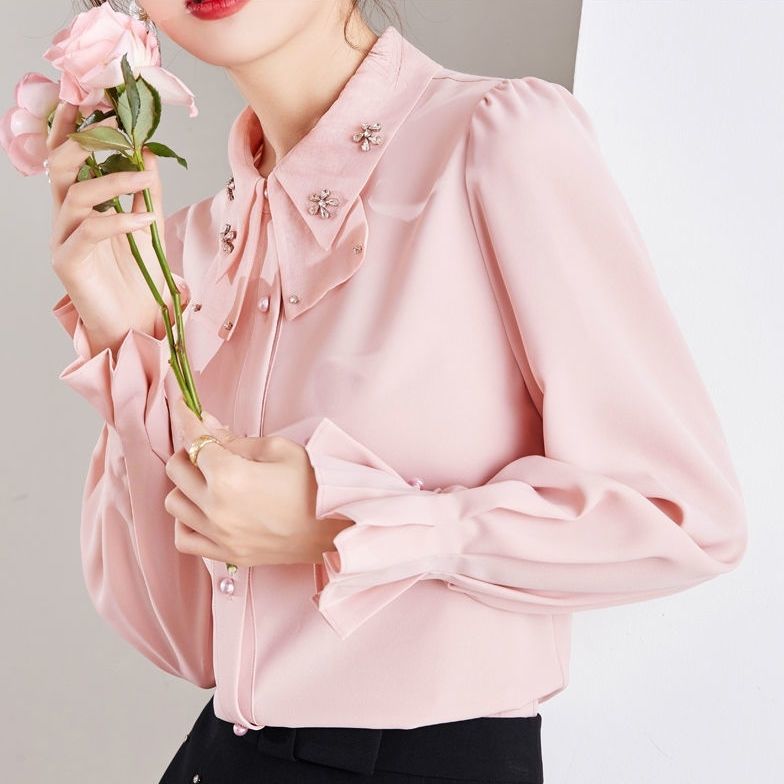 인형 칼라 쉬폰 셔츠 여성 긴팔 봄, 가을 새로운 프렌치 보우 탑 외국 스타일 이너 셔츠 한국스토어 가기