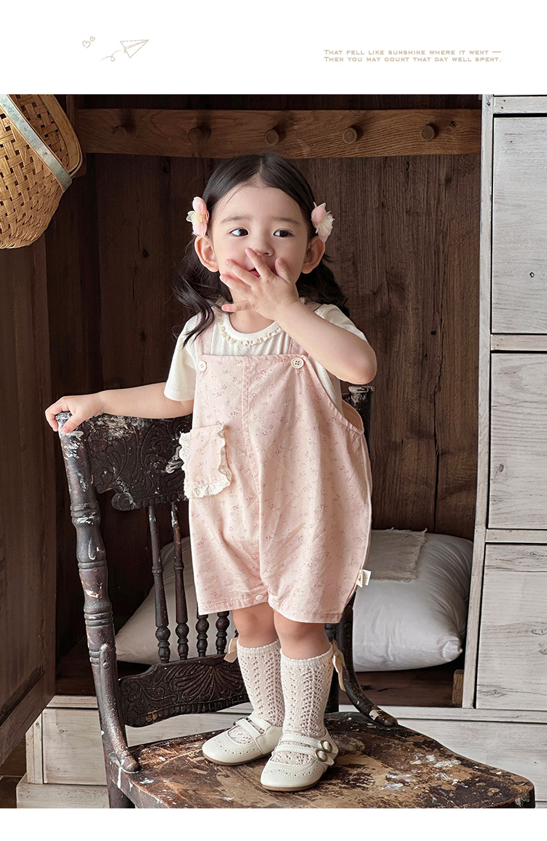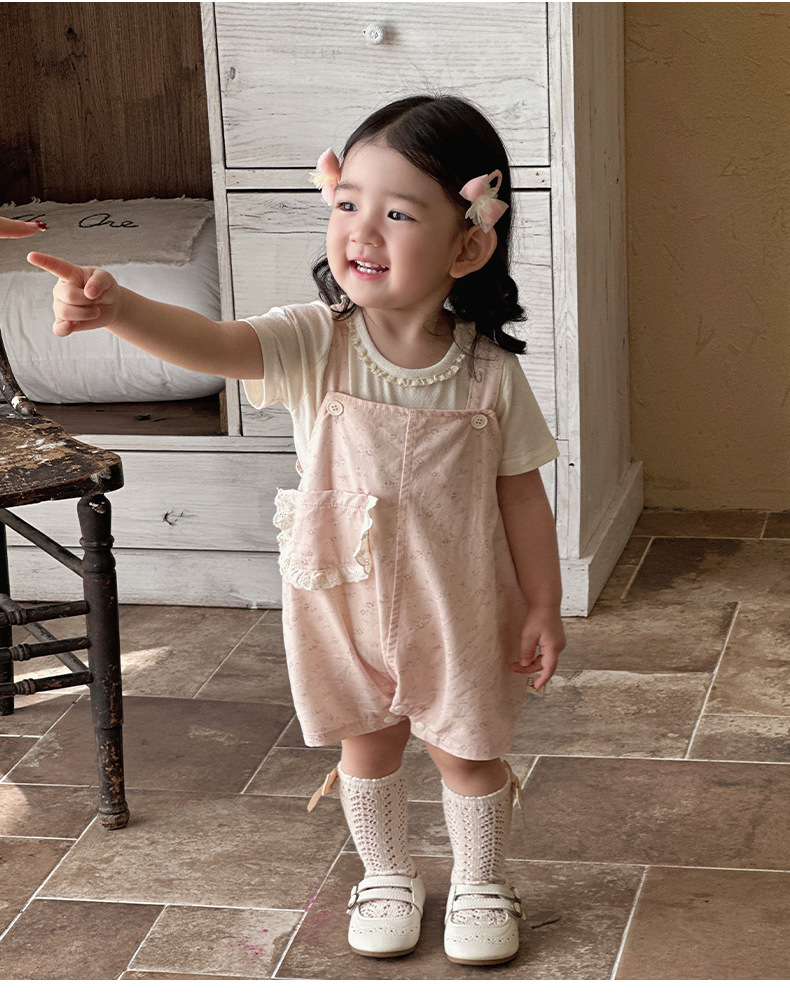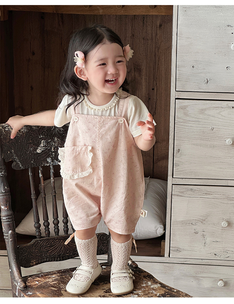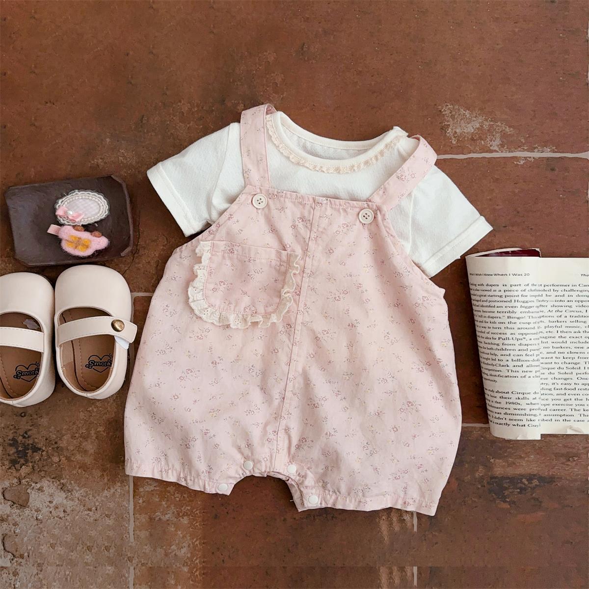 작은 달 된 외국 스타일 세트 여름 새로운 소녀 세트 꽃 멜빵 아기 달콤한 귀여운 여름 투피스 세트