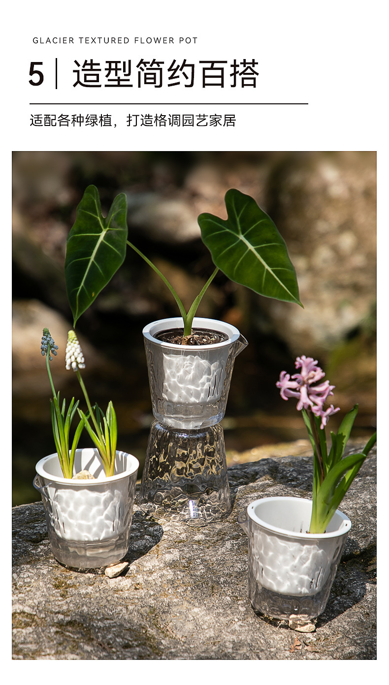 플라스틱 식물 유리 유리 꽃 빙하 투명 급수 무료 자체 패턴 흡수 배양 물 꽃 요정 꽃 게으른 물스토어 가기