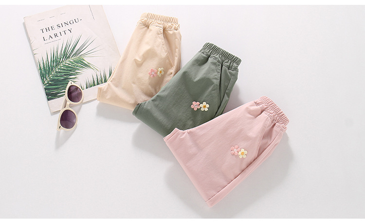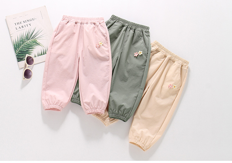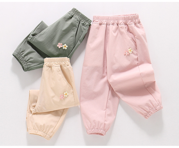 여름 소녀 빠른 건조 바지 얇은 느슨한 서양식 올 매치 아기 발목 바지 어린이 스트레치 허리 유행 바지스토어 가기